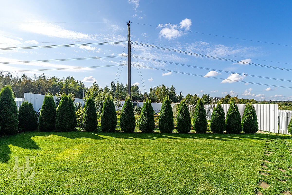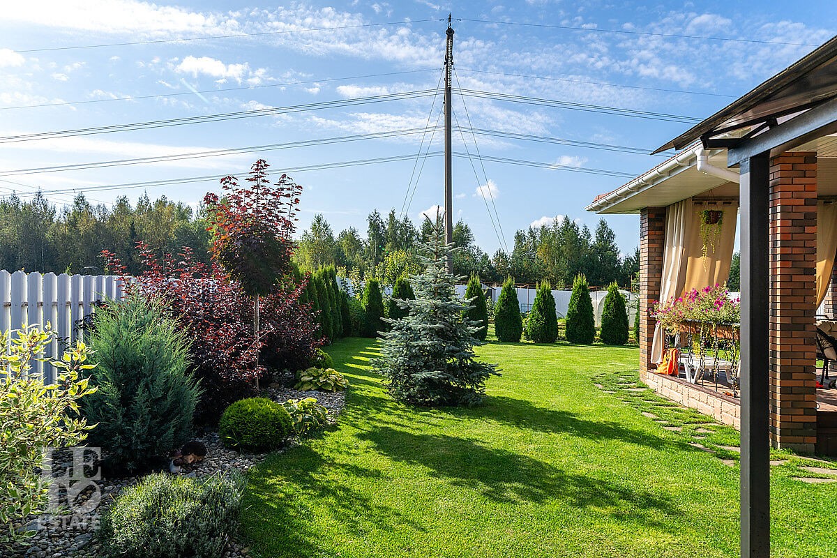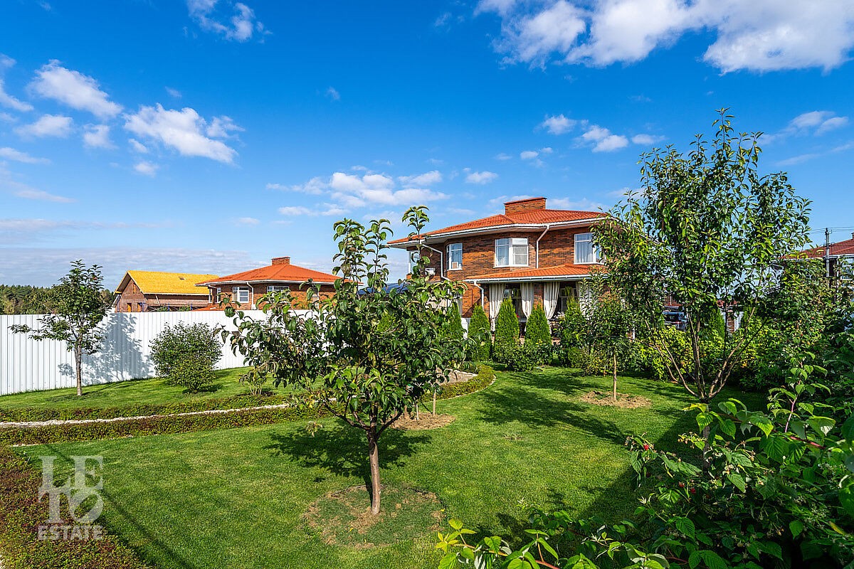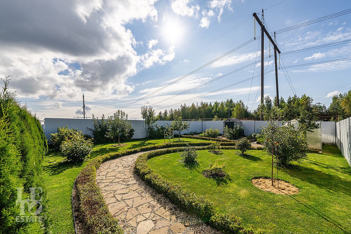 Участок правильной формы. Выполнен дорогой ландшафтный дизайн. Посажено большое количество декоративных, плодовых деревьев, а также кустарники (черешня черно-желтая, жимолость, голубика, слива желто-черная, яблоня карликовая, ранет красный, малина, смородина красная-черная, сперея и многое другое). Дорожки вымощены натуральным камнем. На участке организованы грядки и установлена теплица.