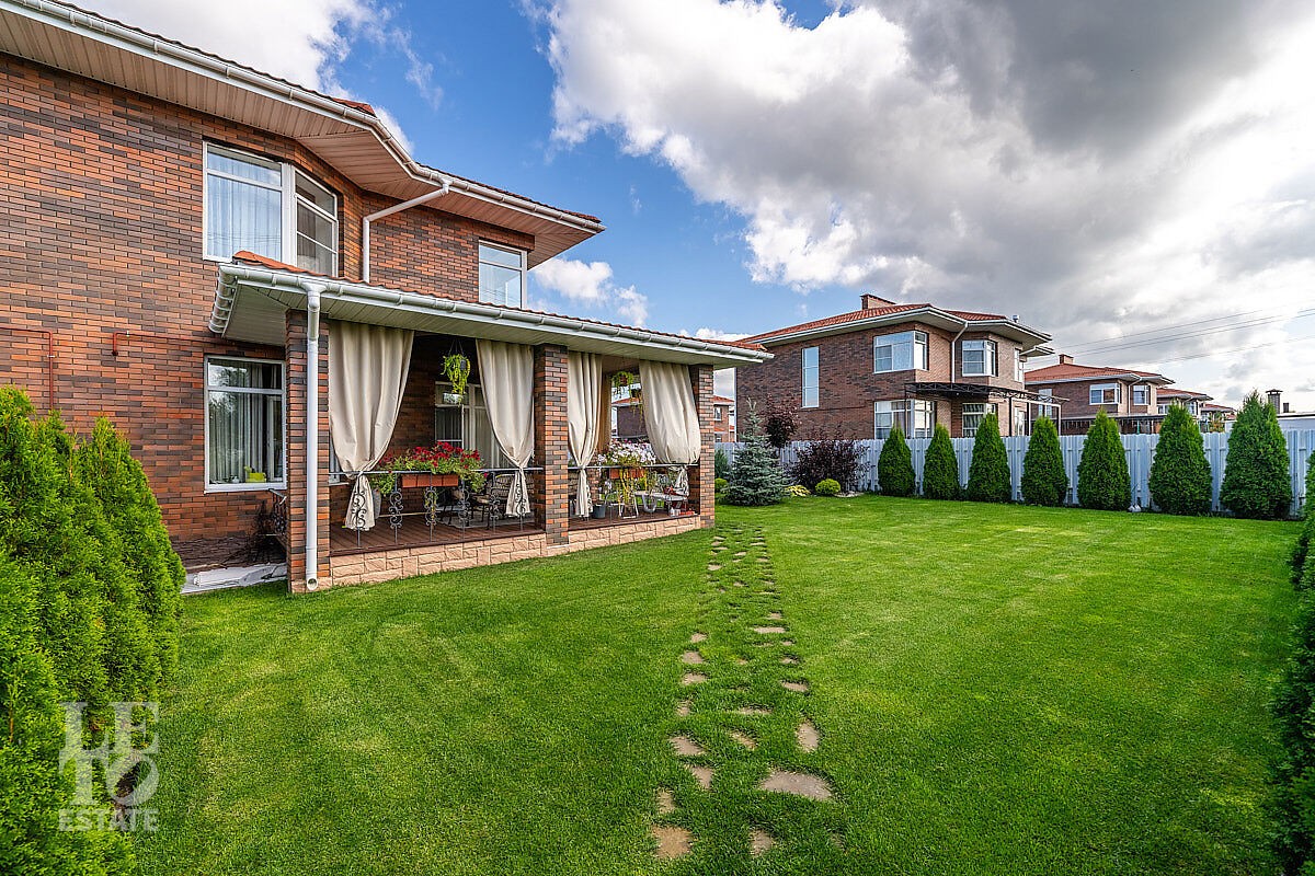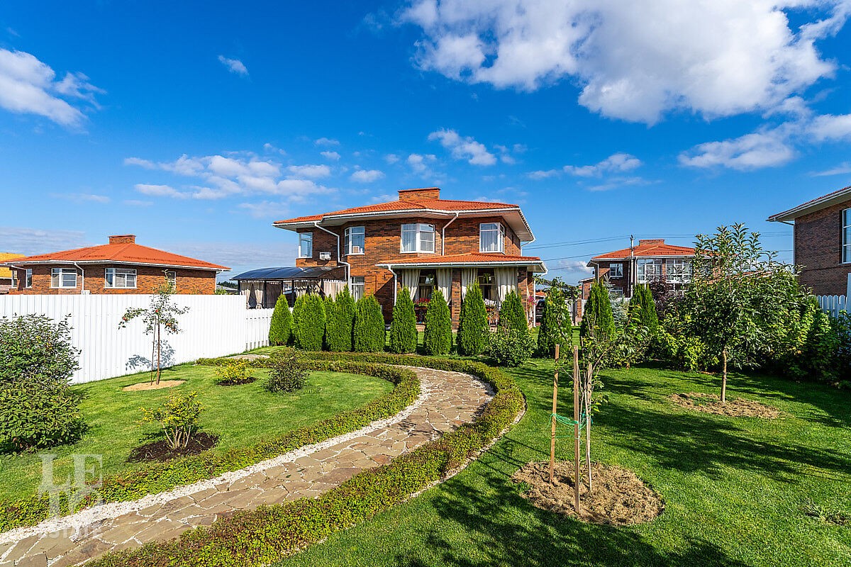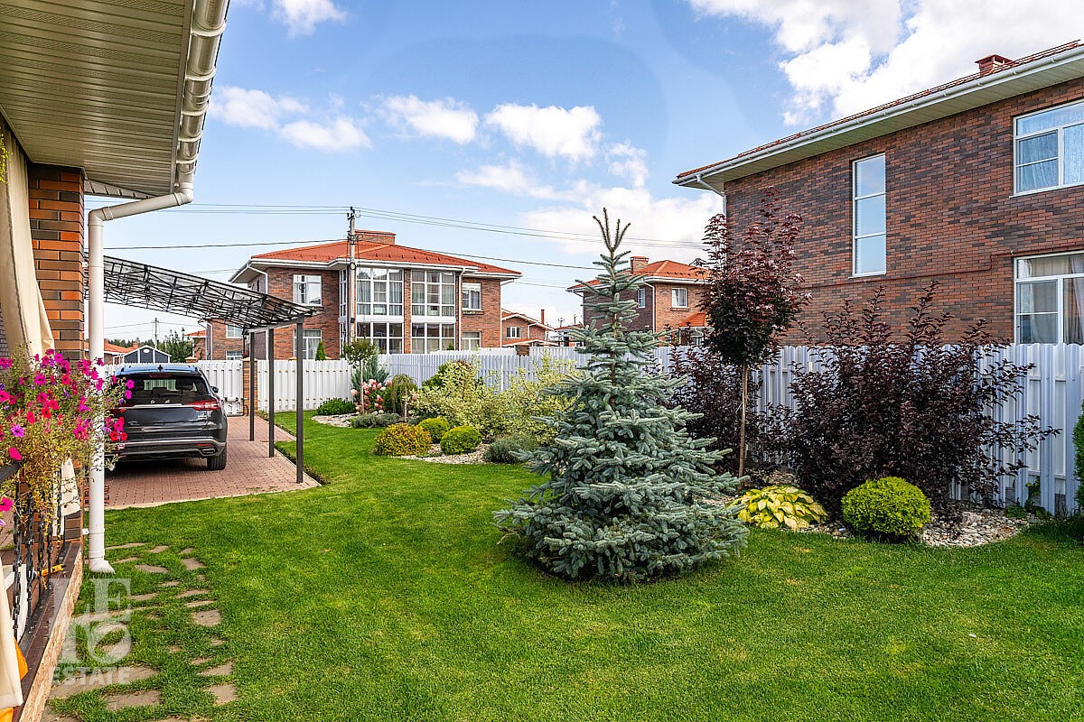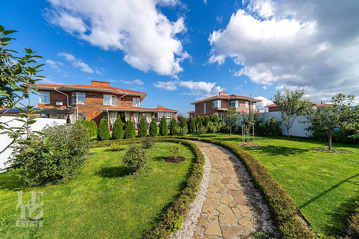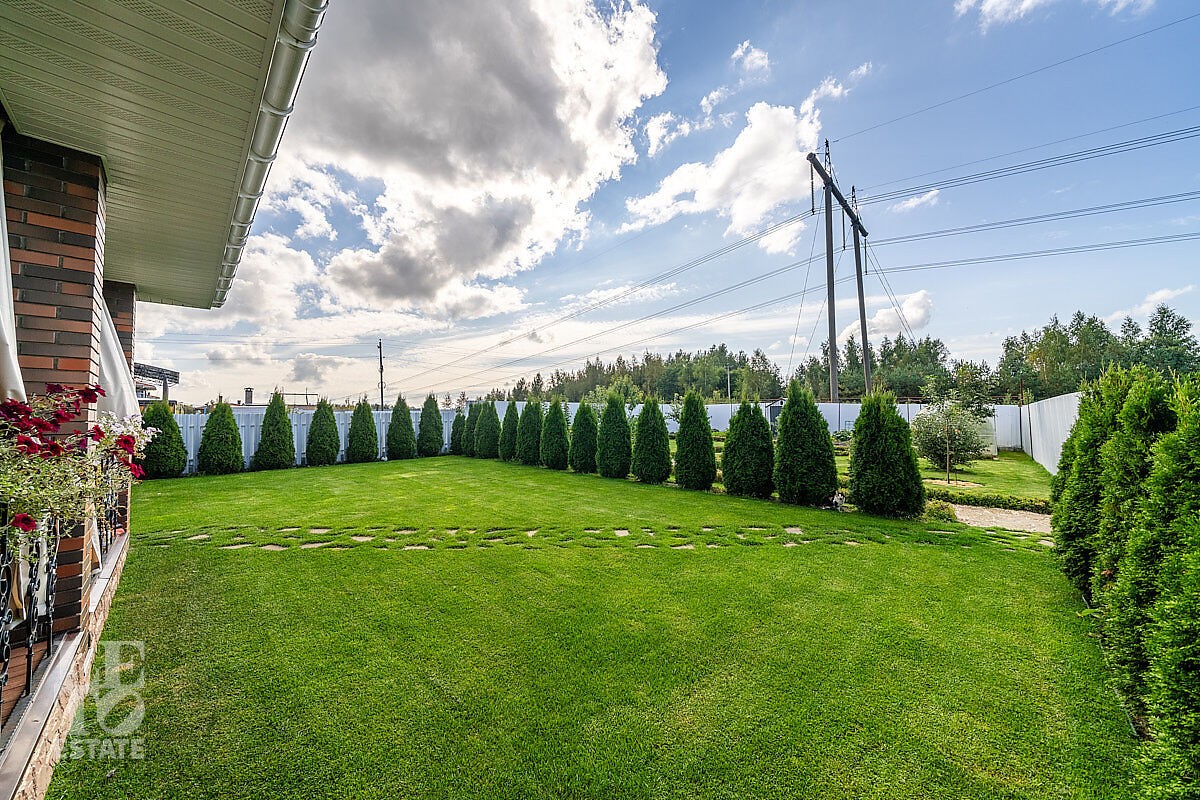 Участок правильной формы. Выполнен дорогой ландшафтный дизайн. Посажено большое количество декоративных, плодовых деревьев, а также кустарники (черешня черно-желтая, жимолость, голубика, слива желто-черная, яблоня карликовая, ранет красный, малина, смородина красная-черная, сперея и многое другое). Дорожки вымощены натуральным камнем. На участке организованы грядки и установлена теплица.
