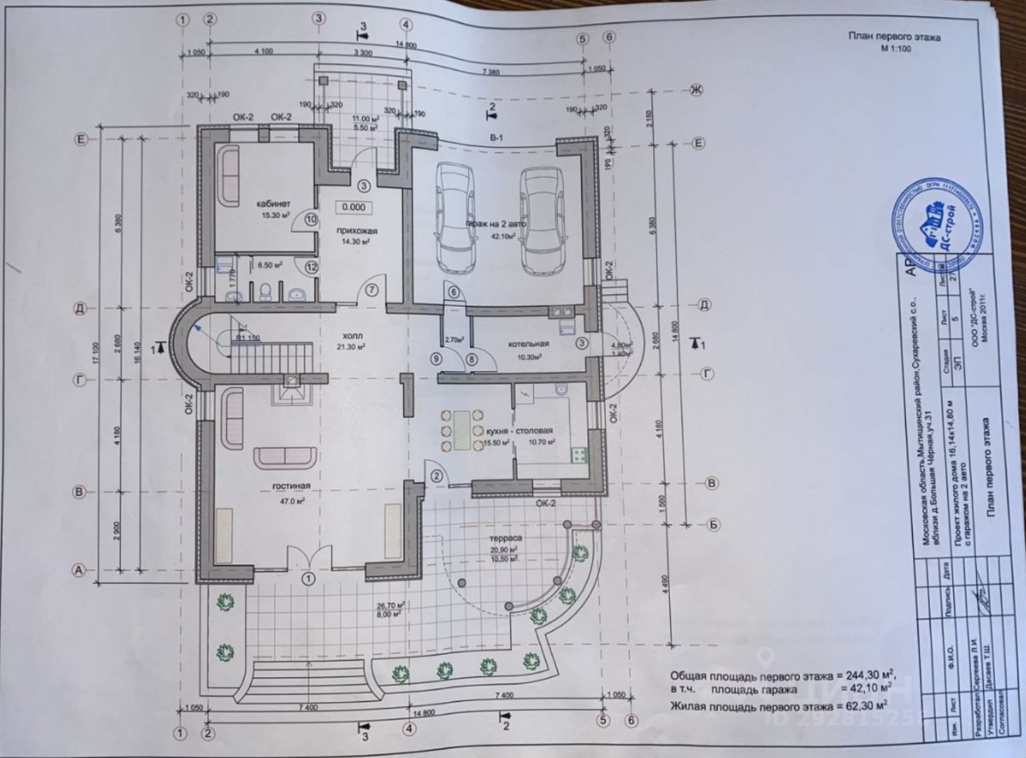-Гараж на 2 машины (часть основного дома) – 42,1 м2.