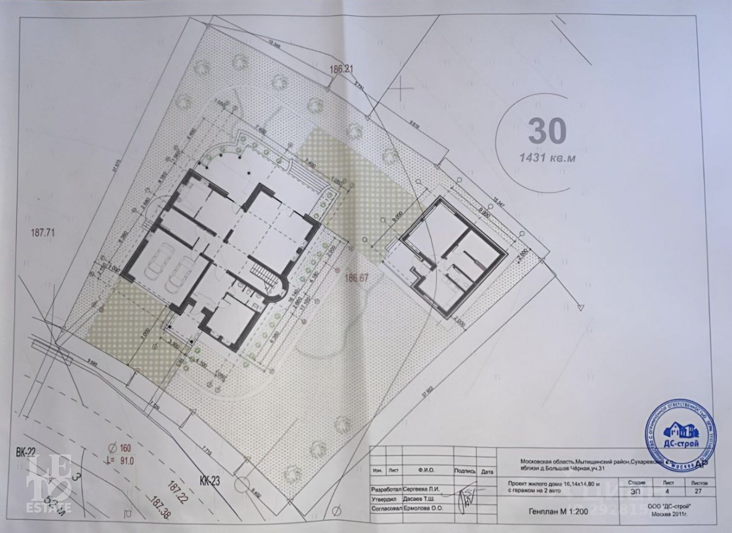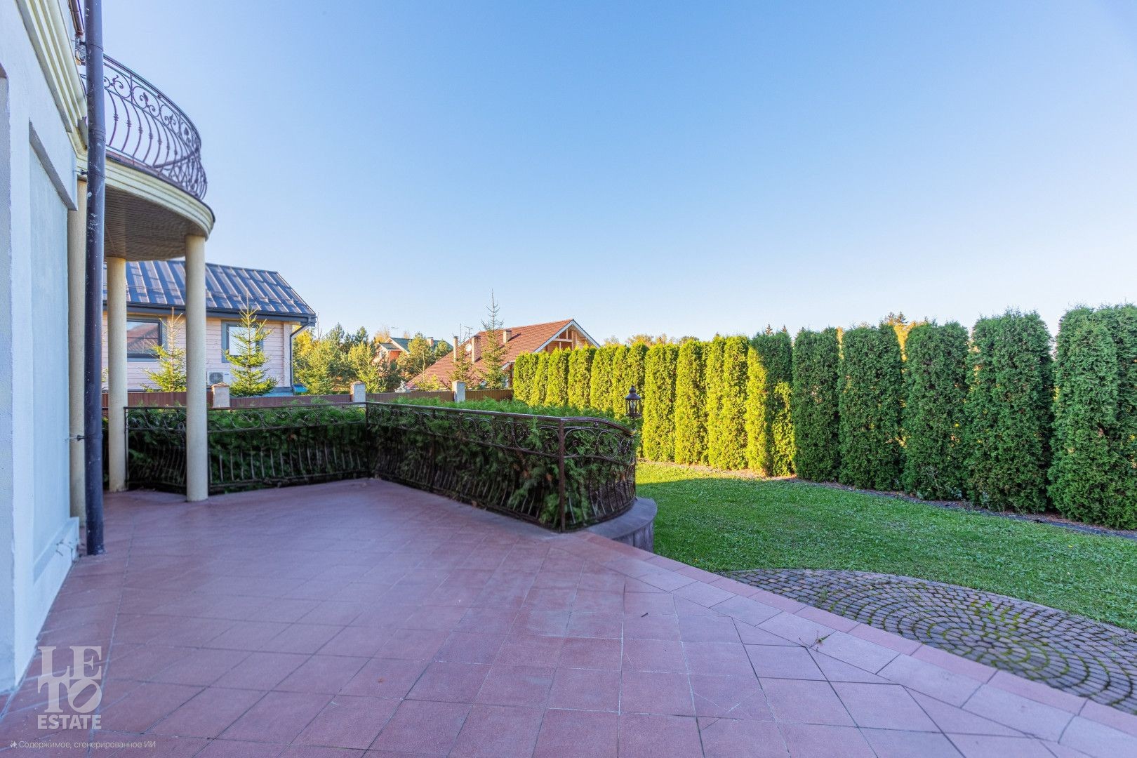- Земельный участок под видеонаблюдением, с дренажем и ландшафтным дизайном, взрослыми деревьями по границе забора и искусственным освещением;