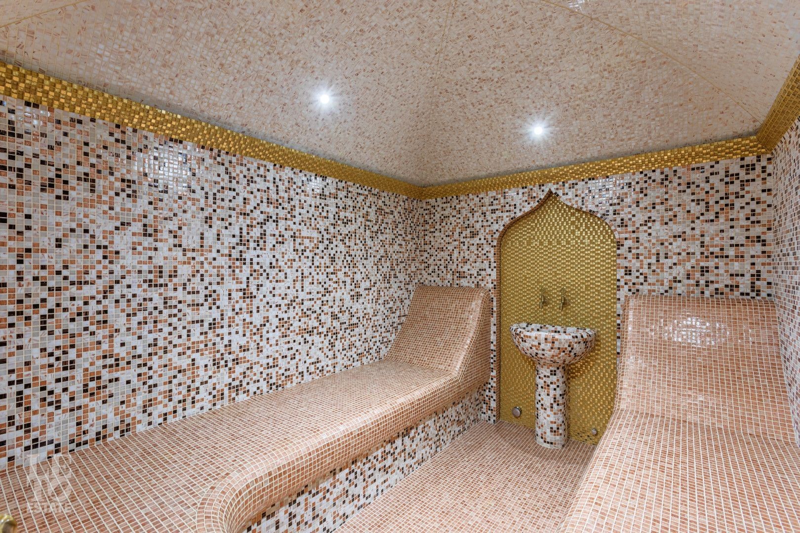 Первый этаж: комната отдыха, помывочная зона, хамам, русская парная с гималайской солью, бассейн с гидромассажем глубиной до 2 метров, купель, санузел, душ;