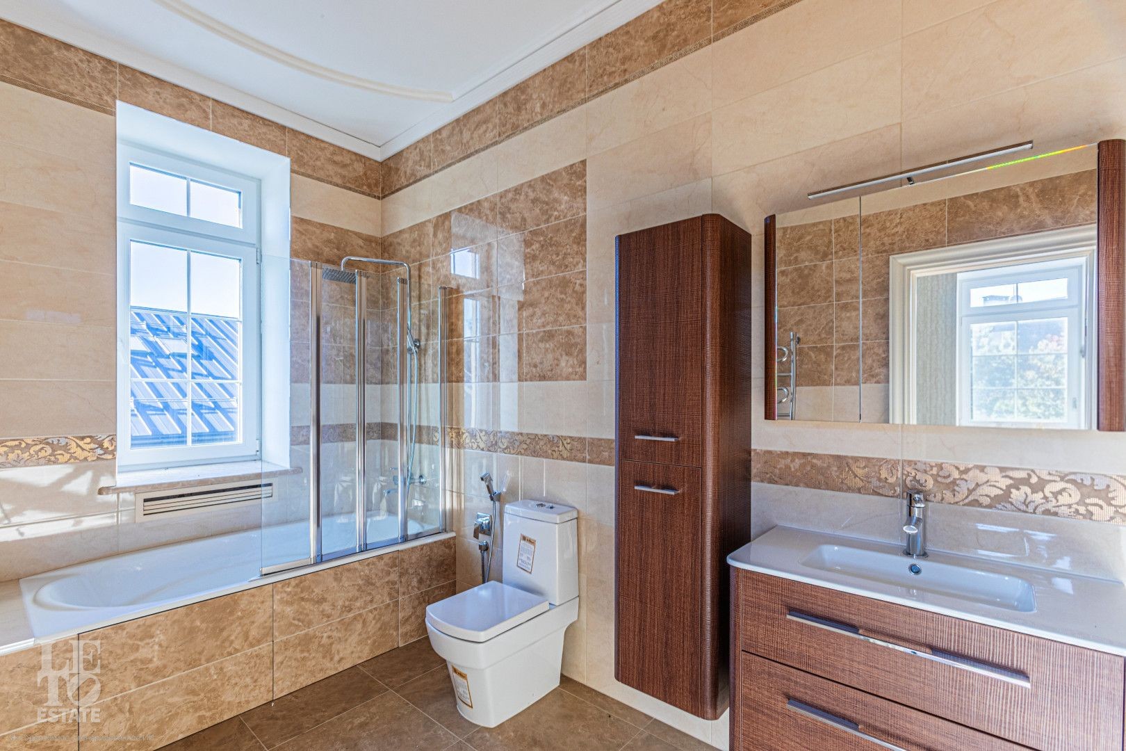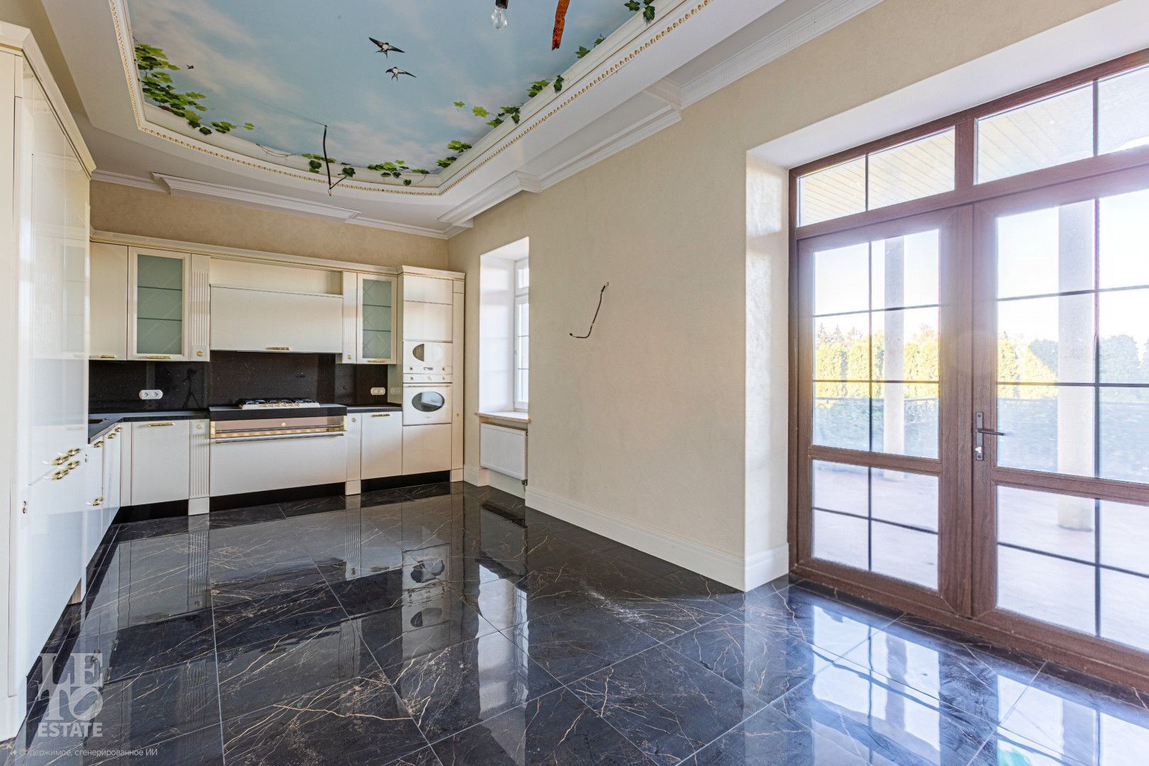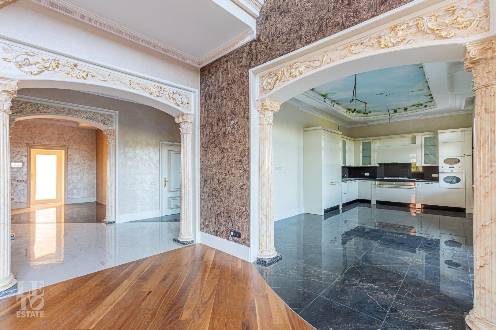 Полы: Изысканный итальянский керамогранит Valentino и Versace на первом этаже с системой «тёплый пол». На втором этаже — благородный деревянный паркет;