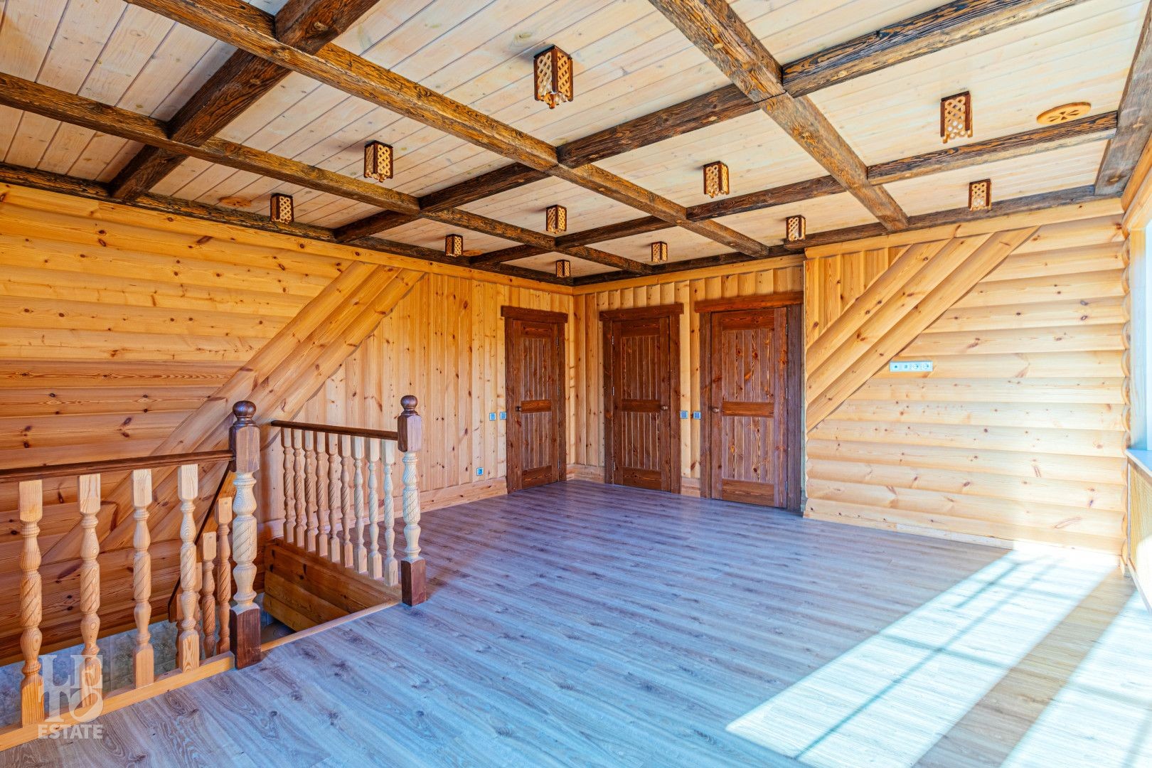 Второй этаж: три мастер-спальни с собственными санузлами в полной комплектации, и гардеробными комнатами, с выходами на балконы.