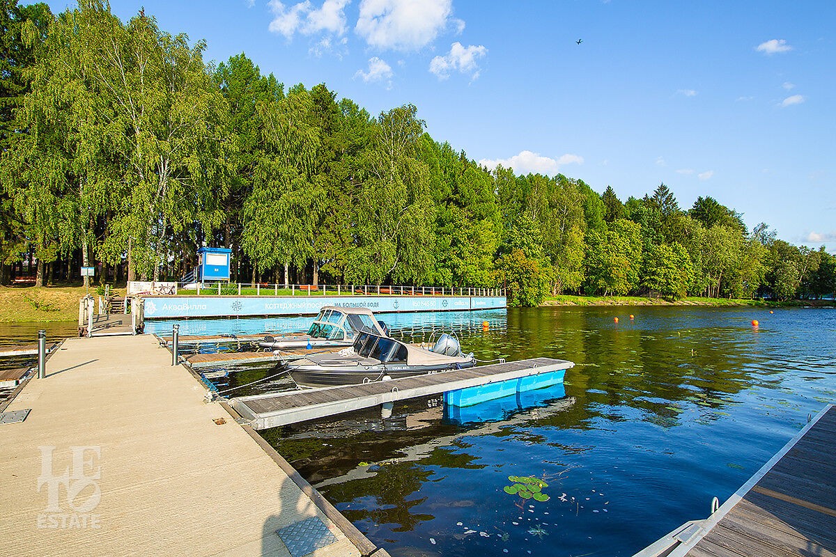 Участок находится в 40 км от МКАД по Дмитровскому шоссе в коттеджном посёлке Аква Вилла. Участок 45.6 соток правильной формы расположен на второй береговой линии в 100 метрах от выхода на воду. Участок огорожен, организовано два заезда с воротами, по границе участка подземным способом проложены коммуникации: газ, электричество, водопровод и канализация. В 3 минутах пешком находится причал для катеров и оборудованный пляж на берегу Икшинского водохранилища. На территории поселка оборудованы детские и спортивные площадки, в двух минутах от поселка -большой лесной массив, теплое торфяное озеро с чистой водой. Премиальные активности в округе: знаменитая Лисья Нора и конный клуб Славино, горнолыжные курорты в 15 минутах езды, ресторан и SPA -в турбазе Солонцово .