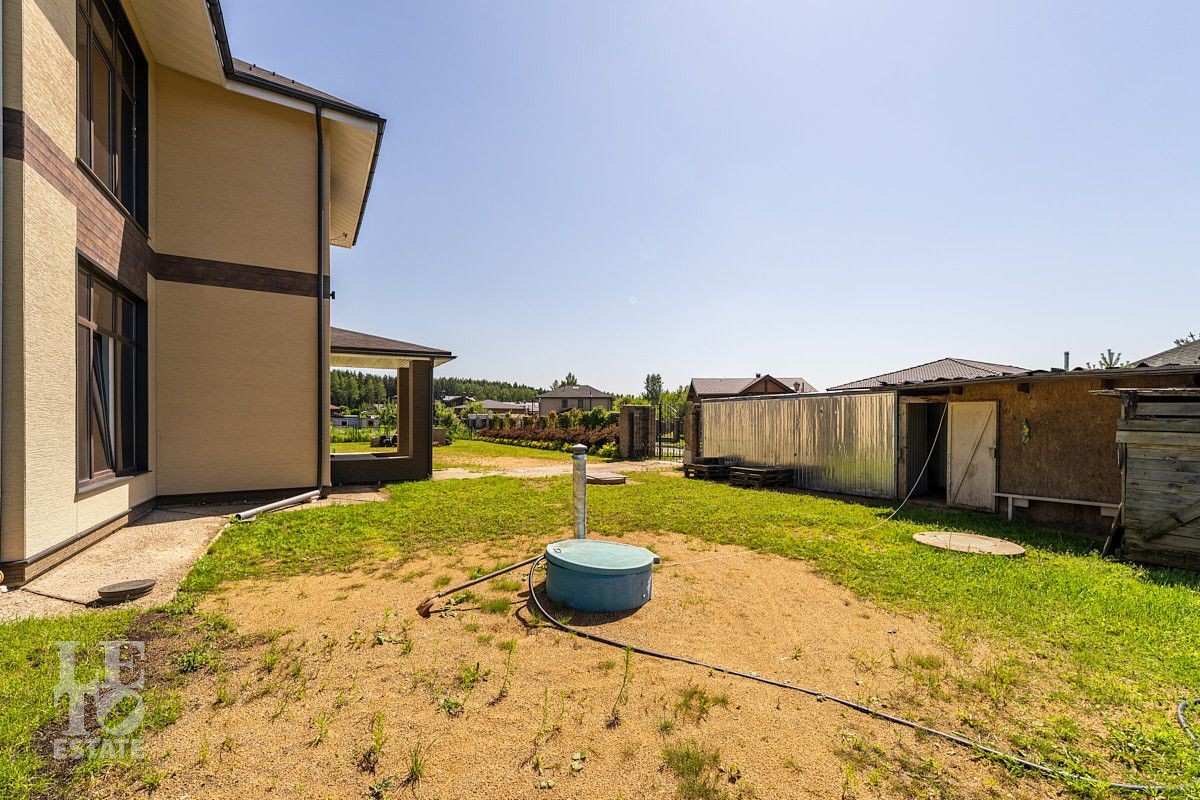 На участке помимо основного дома продуманы места для размещения доп построек - бани, гаража и выведены необходимые коммуникации под них. По периметру здания выполнена отмостка и дренаж.