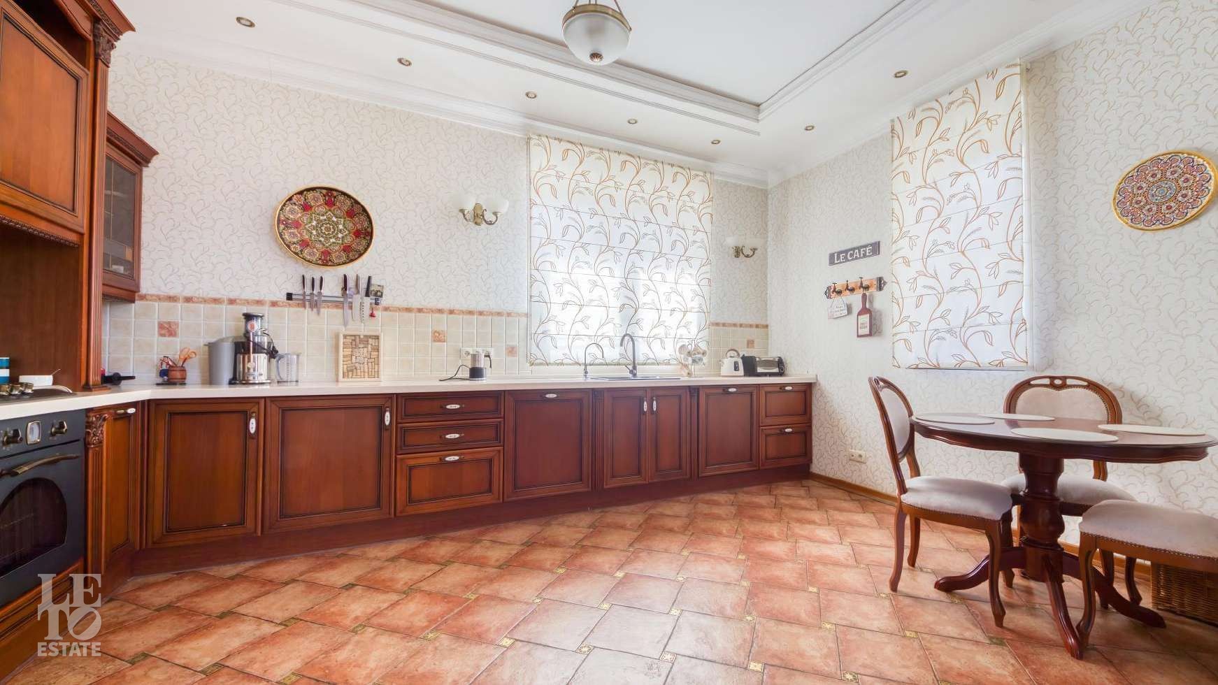 В доме высокие потолки и много света, просторная итальянская кухня с большой рабочей зоной. Есть теплый гараж на 2 автомобиля.