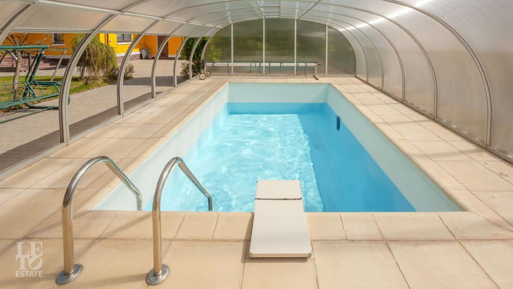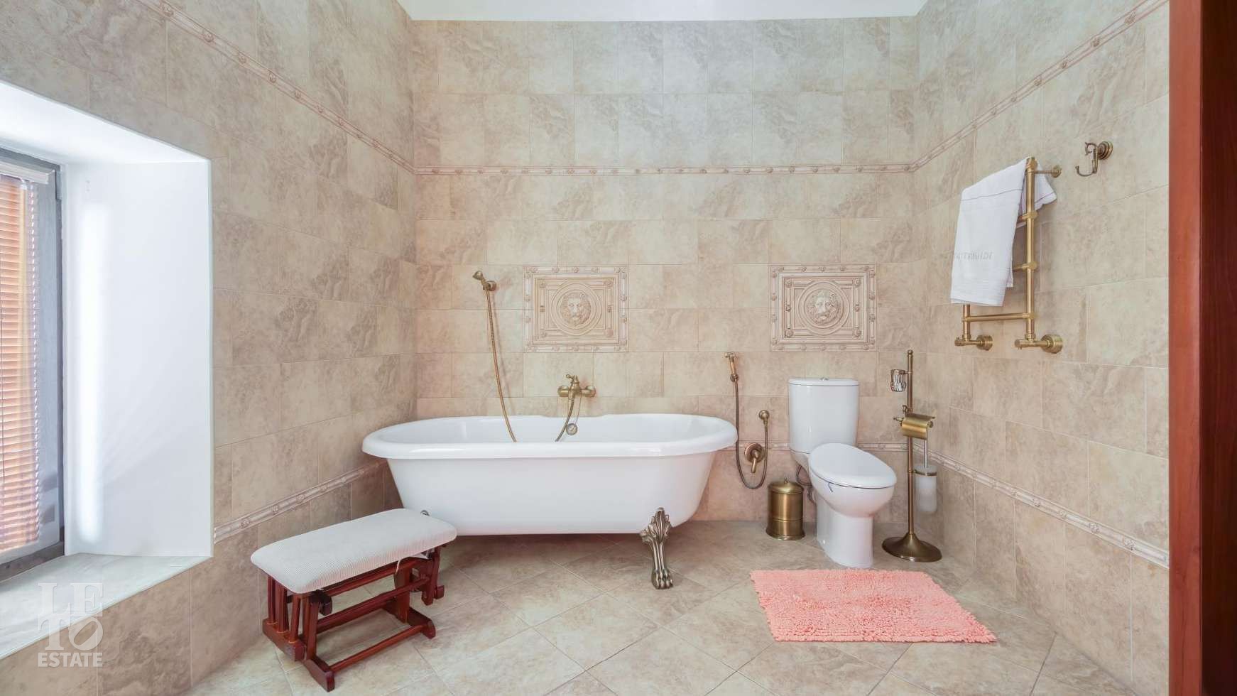 Дом строился качественно, для себя. В бассейне установлен противоток. Дом полностью меблирован и готов к проживанию. Установлен дровяной камин, кондиционеры и теплые полы. Есть большие места хранения с гардеробными и подсобными помещениями.