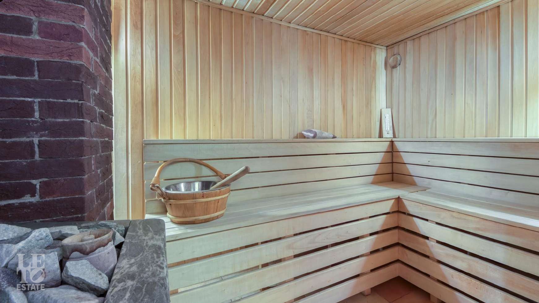 Благодаря большому количеству взрослых деревьев участок совершенно приватный, соседей не видно. Построена дровяная баня из бревна с гостевыми комнатами, бассейн с выходом на участок и беседка с мангальной зоной. Установлено парковое освещение и автоматические ворота. Все дорожки вымощены брусчаткой. Сделан дренаж.