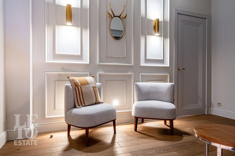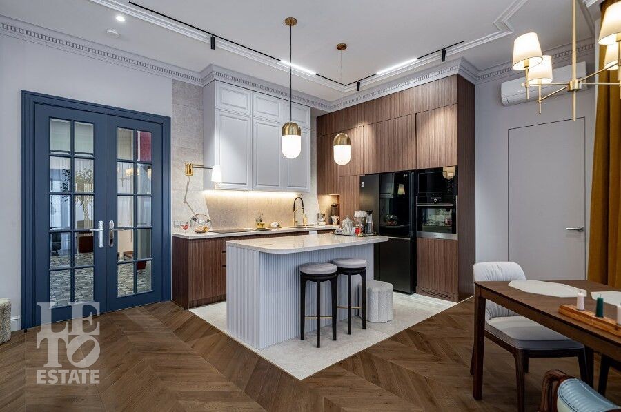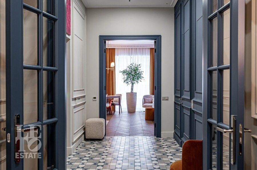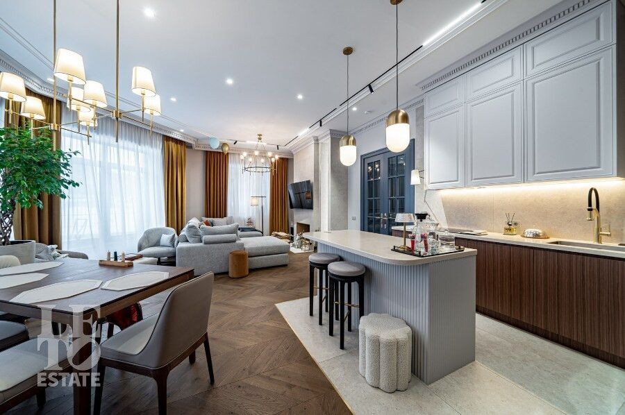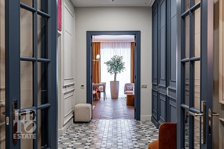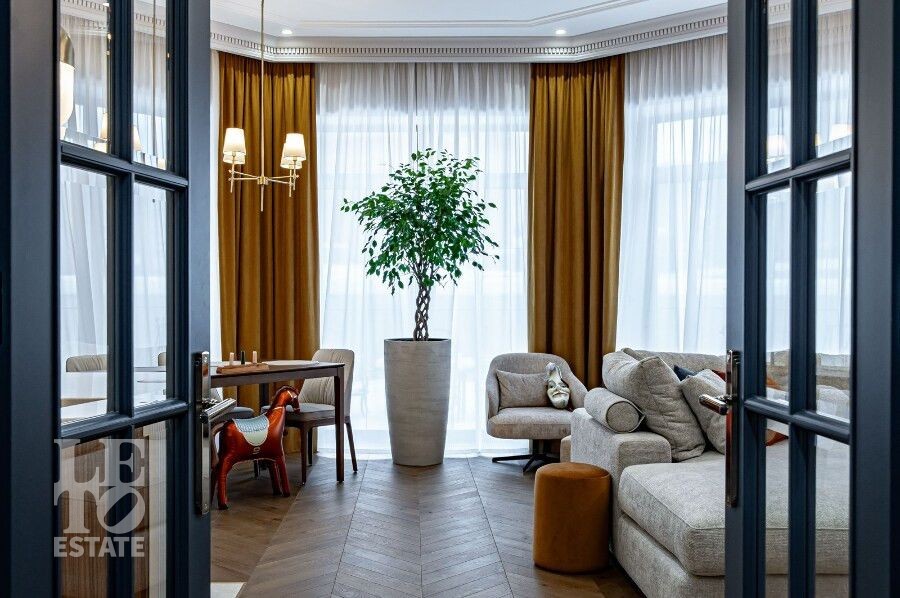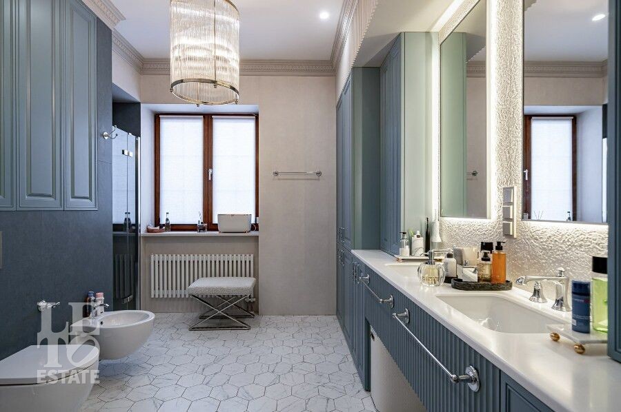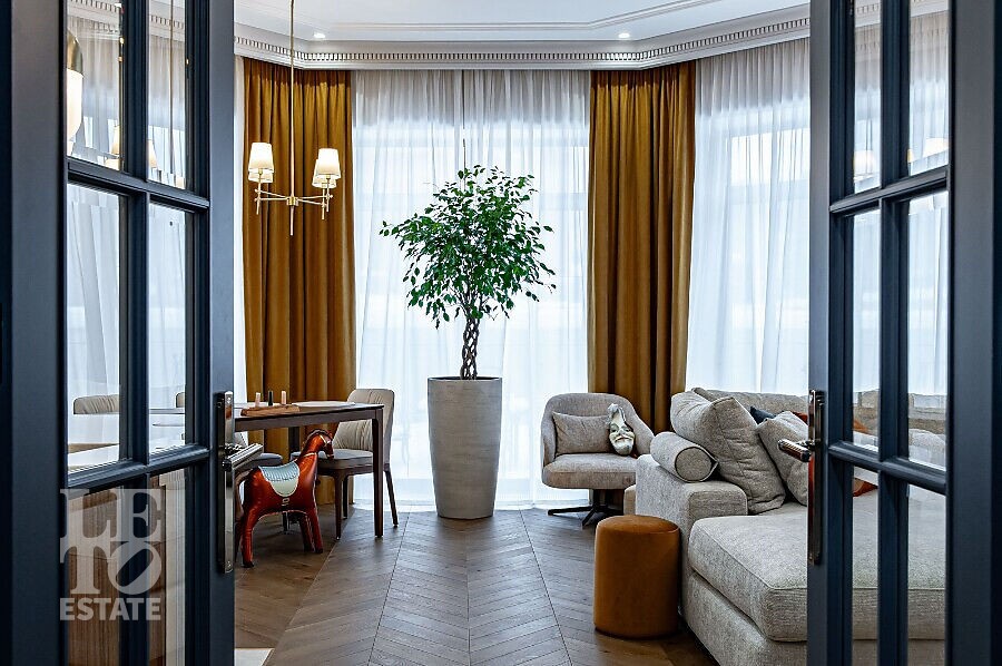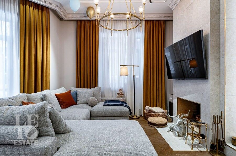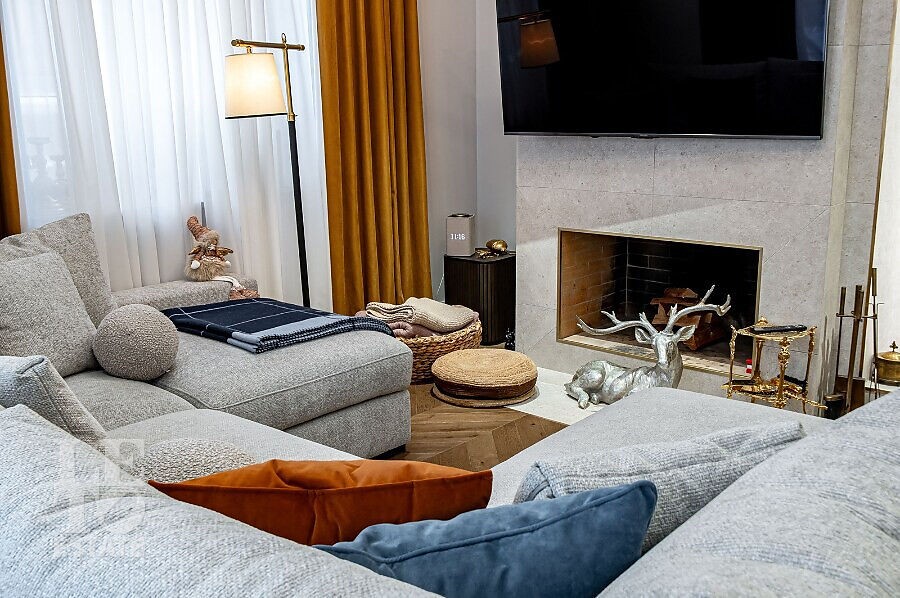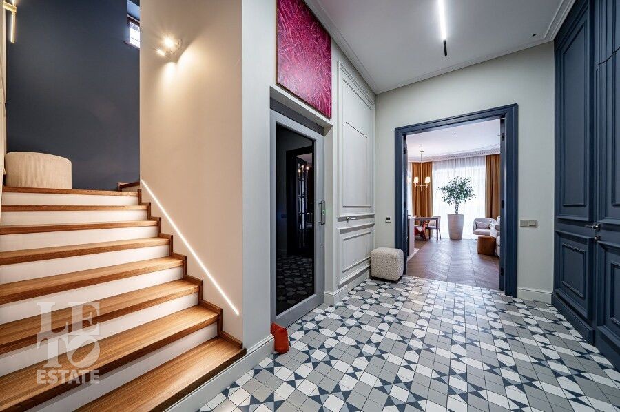 Просторная гостиная с камином становится сердцем дома — идеальное пространство для семейных вечеров и приёма гостей. Для максимального удобства предусмотрены лифт, гараж и продуманная планировка, где каждая деталь работает на комфорт и эстетику повседневной жизни. Качественные материалы отделки, свет: Visual Comfort, Gramarcy, Dantone, сантехника: Grohe (Германия), Burlington (Англия), мебель выполнена на заказ, техника: LG, ASCO.