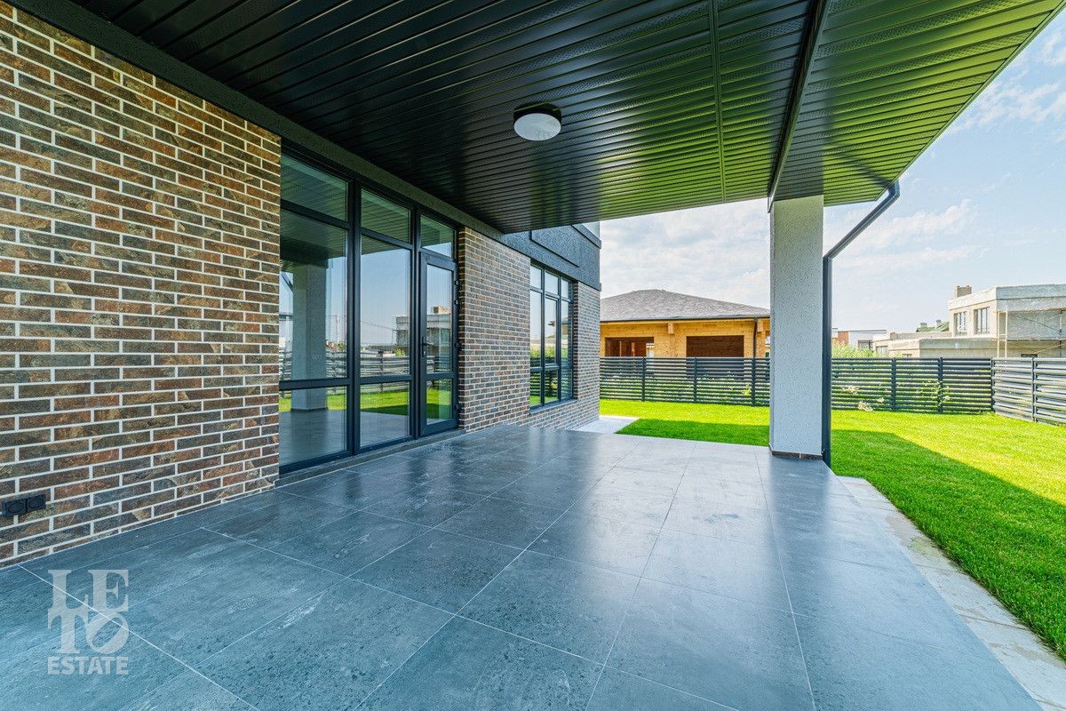 Дом построен из блоков, фундамент - плита, крыша - мягкая кровля. Выполнена отделка "под ключ", установлена встроенная техника необходимая для постоянного проживания. Окна - Rehau. В гостиной установлен кондиционер. В доме 4 спальни, одна из них расположена на первом этаже. Из кухни-гостиной есть выход на террасу. В санузле на первом этаже сделана электрическая сауна. Разведен теплый пол на первом и втором этаже. Установлена система, которая позволяет регулировать домашнее и фасадное освещение. Организована котельная, установлено оборудование. Дополнительно дому пристроено помещение для хранения хозяйственных вещей и навес на два автомобиля.