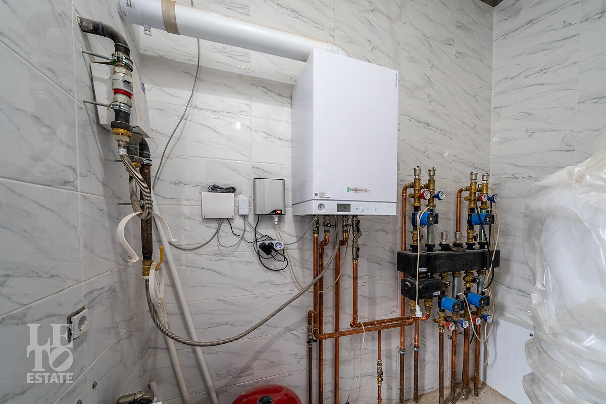 Выполнена внутренняя отделка "White Box" - выровнены и отштукатурены стены под финишное покрытие. Заведены и разведены теплые полы согласно проекту. Установлены алюминевые окна Kaleva. Сделаны выводы под кондиционирование. Выведены мокрые точки и установлены инсталяции.