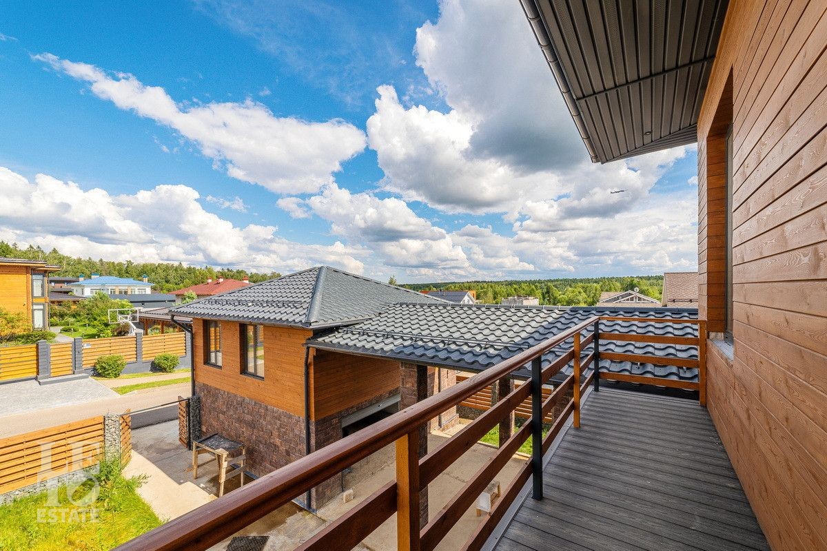 Второй этаж: мастер-спальня с санузлом, гардеробной и балконом, детская игровая с балконом, спальня с террасой, кабинет, санузел.