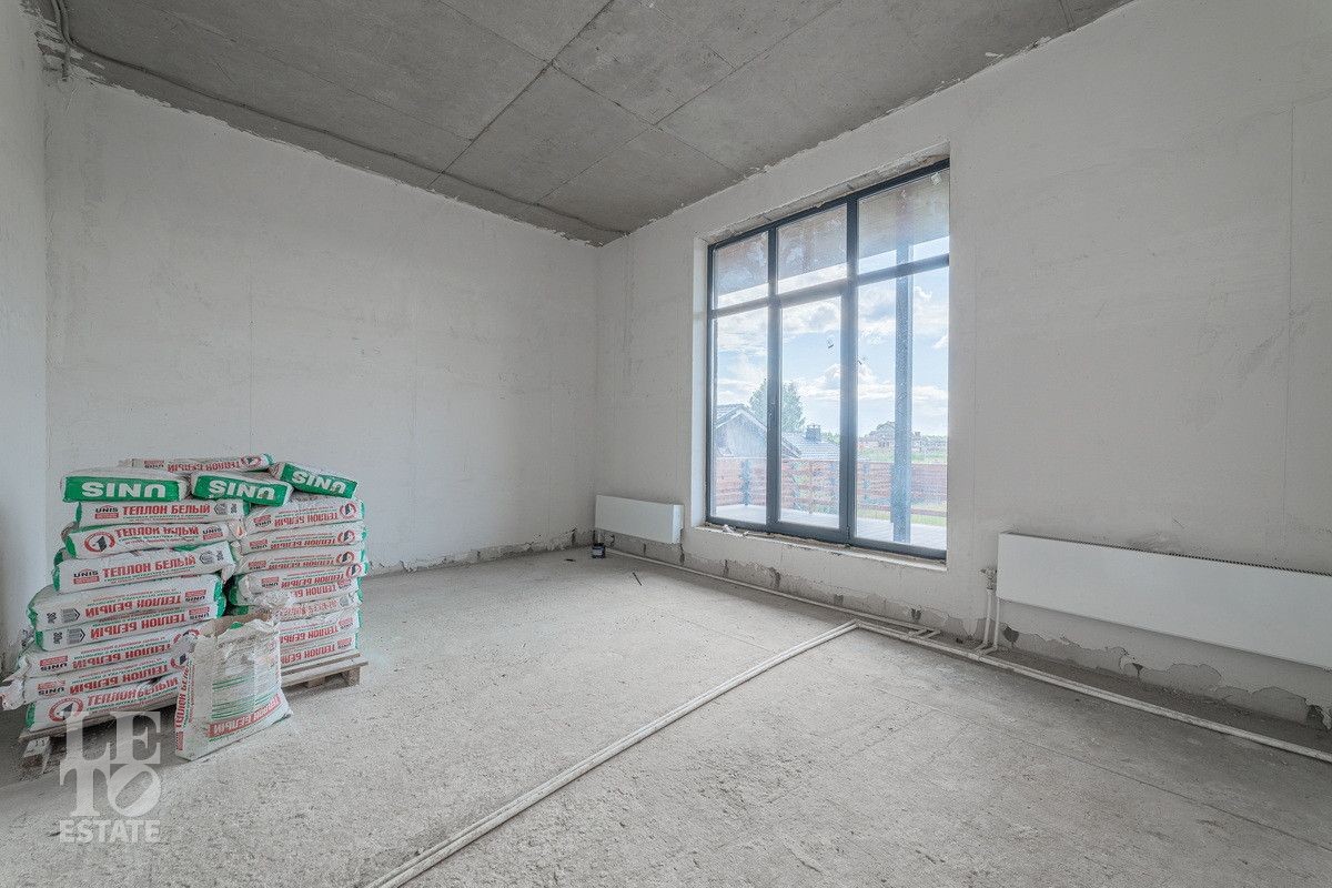 Внутренняя отделка дома доведена до чистовой: подключена электрика и отопление, отштукатурены стены.