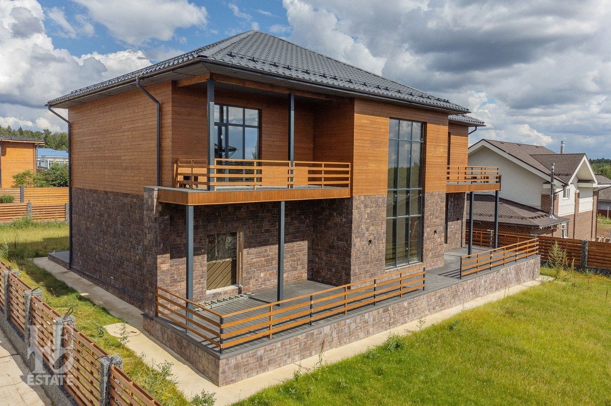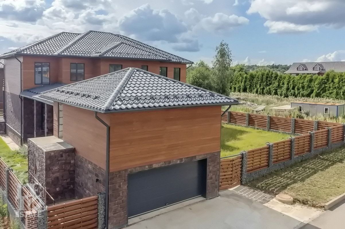 При строительстве использовались материалы высокого качества: фундамент свайно-ростверковый с монолитной плитой (бетон марки М350), плиты перекрытия также монолитные. Стены дома возведены из газобетонных блоков марки Bonolit D500. Крыша выполнена из металлочерепицы Grandline, окна из алюминиевого профиля Alutech, утеплитель кровли - технониколь 250 мм, фасадный утеплитель - технониколь 100 мм.