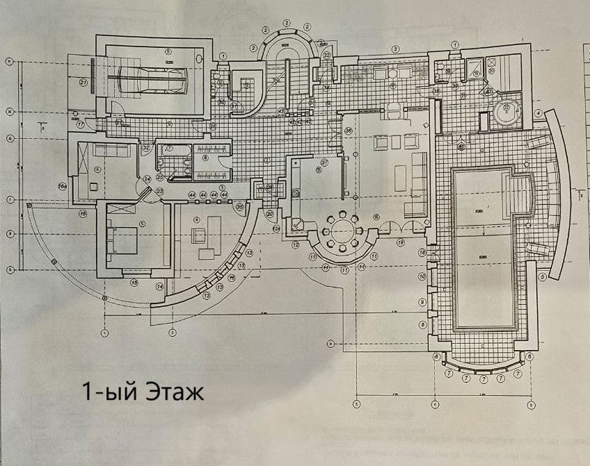 Цокольный этаж: холл, постирочная, кладовые, котельная, помещение под кинотеатр, помещение под спортзал, техническое помещение для оборудования бассейна;