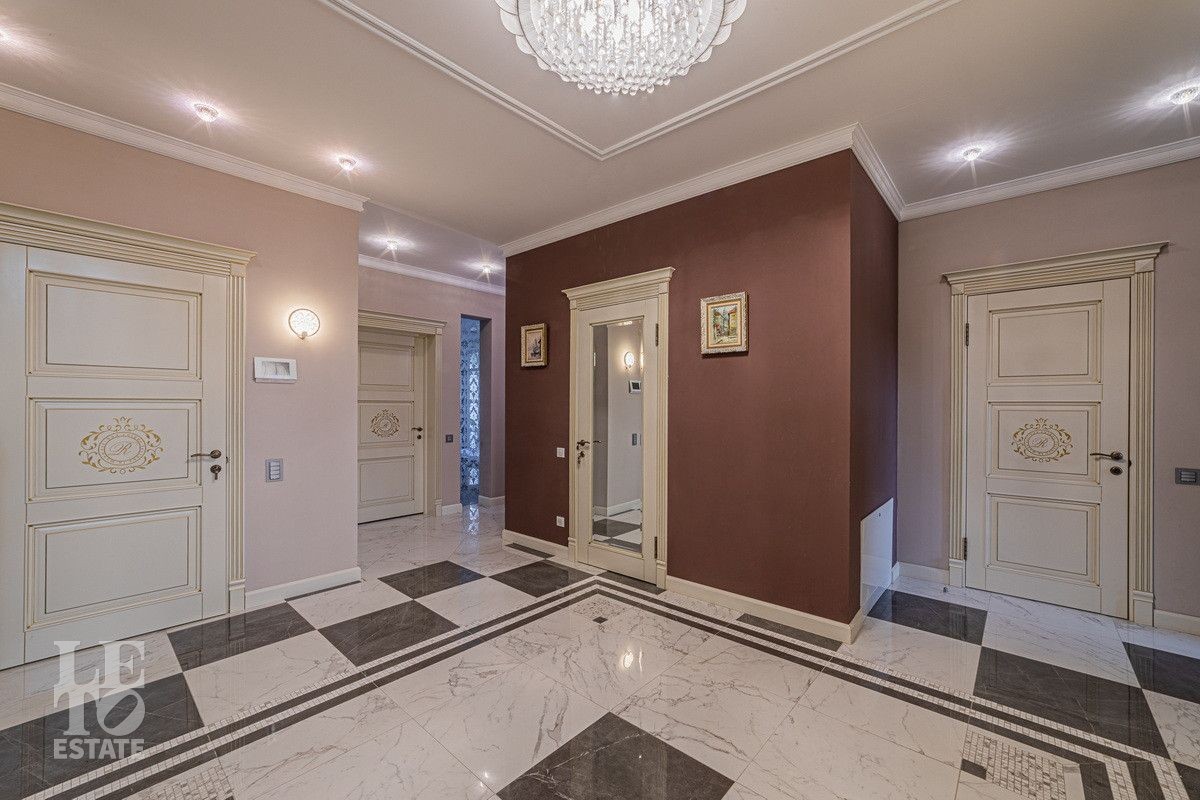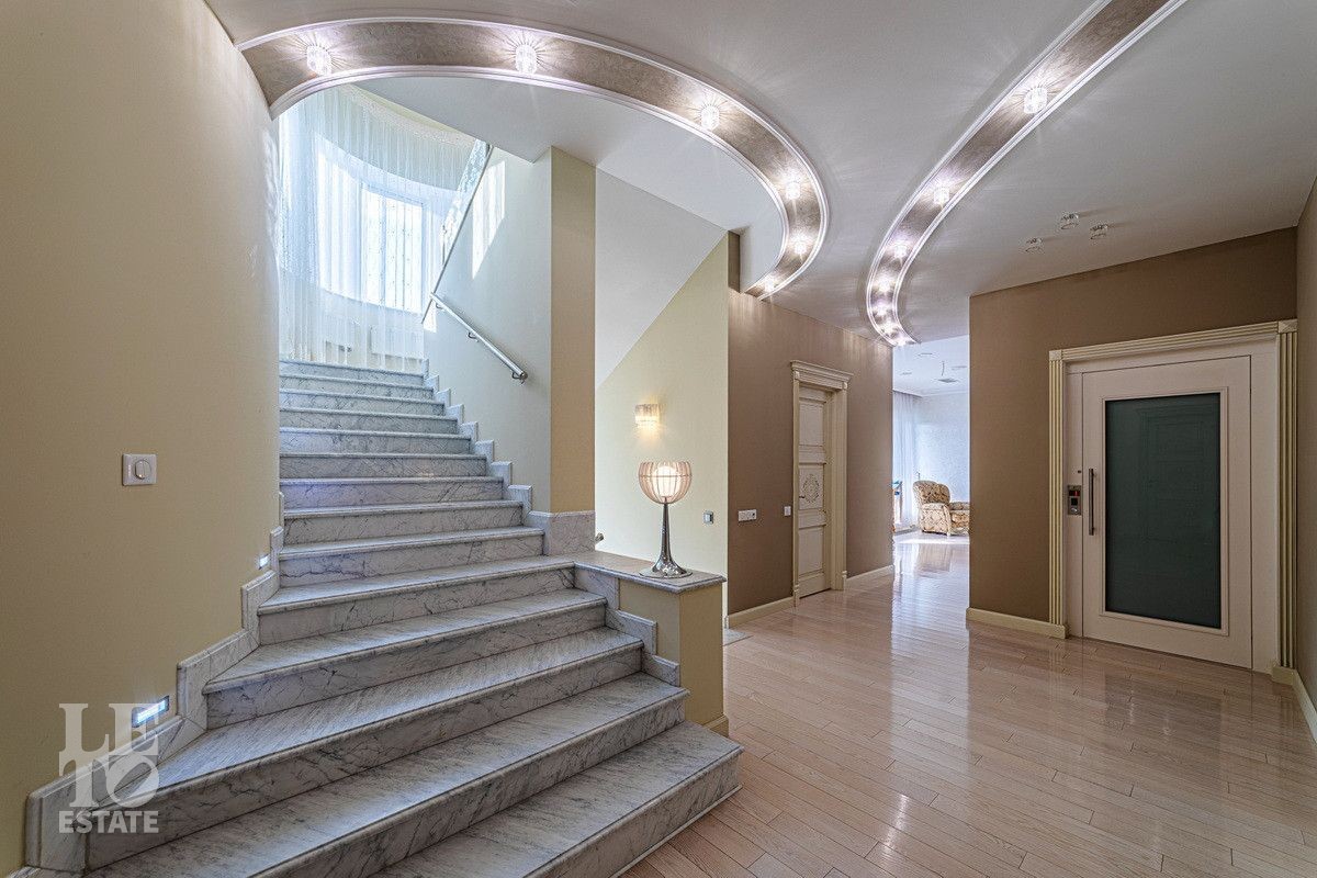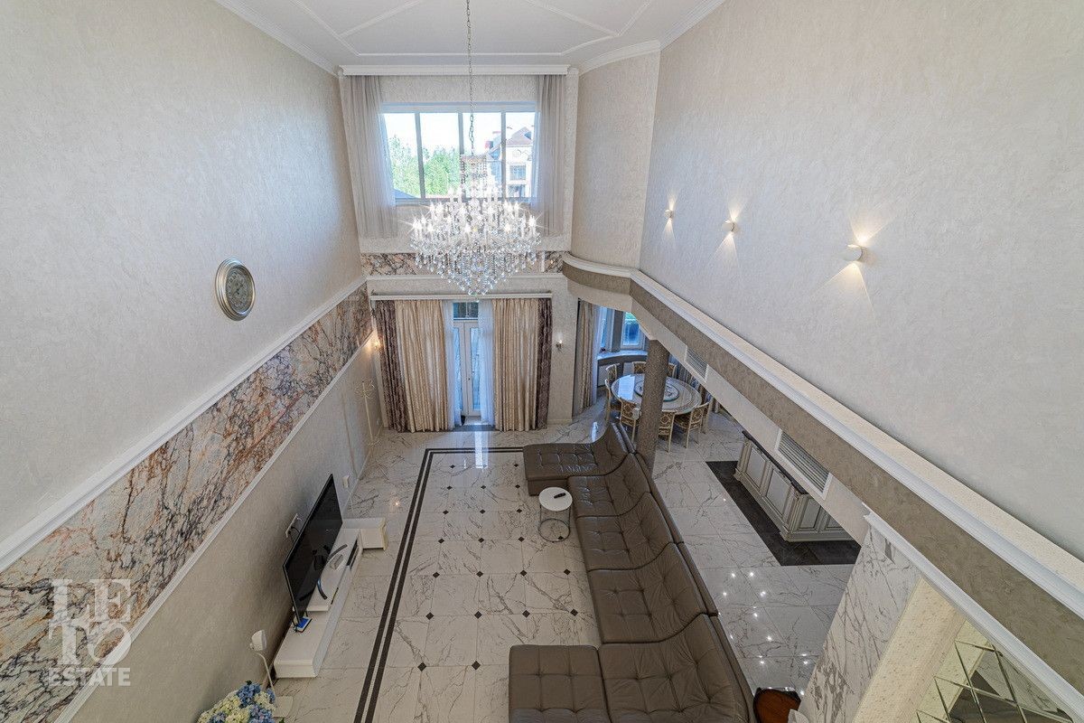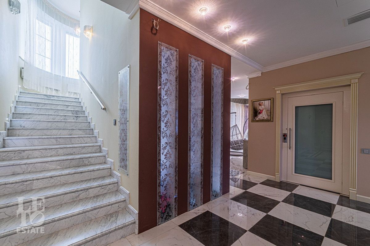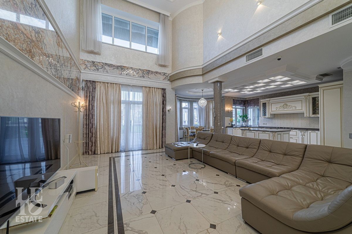 Внутренний интерьер выполнен по авторскому дизайнерскому проекту, с применением современных и дорогостоящих материалов и технологий. Просторные помещения, высокие потолки, большие окна, заполняющие пространство светом и воздухом, дают прекрасную инсоляцию этой загородной резиденции. Натуральные материалы мрамор, камень, дерево умело использованы для создания атмосферы великолепного дома, наполненного жизнью и энергией. В доме 7 спален, 8 санузлов, множество шкафов и гардеробных. Вся мебель и сантехника от лучших производителей Италии и Германии. Премиальная кухня, укомплектована полным набором техники. Центр притяжения дома, - светлая гостиная (со вторым светом, высоким потолком 8 м и панорамными окнами), в которой имеется несколько уютных зон для всех членов семьи.