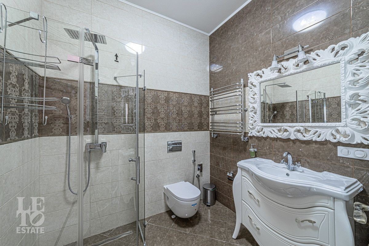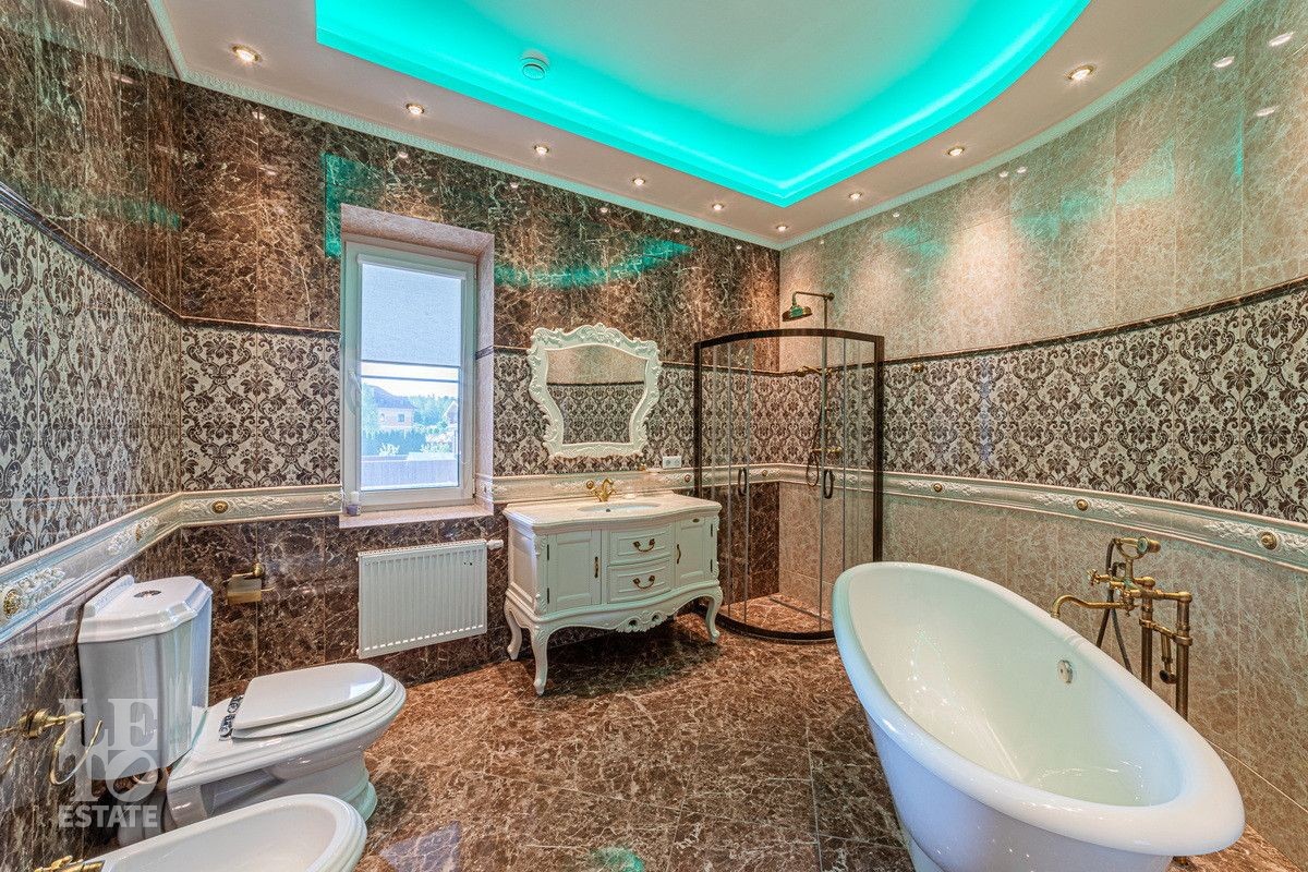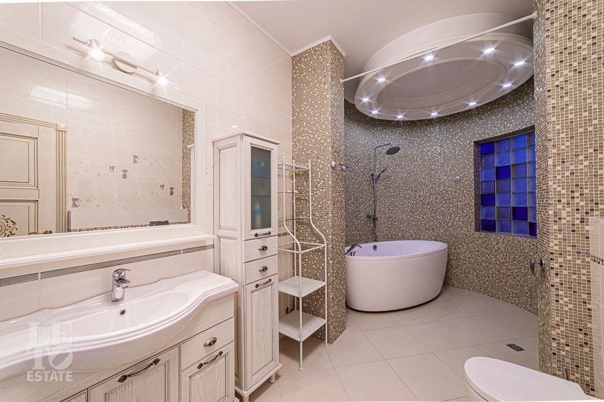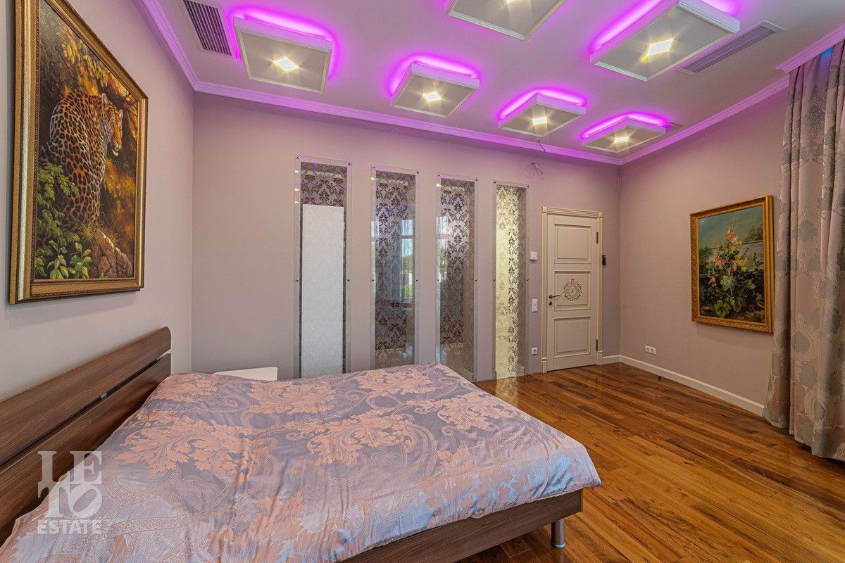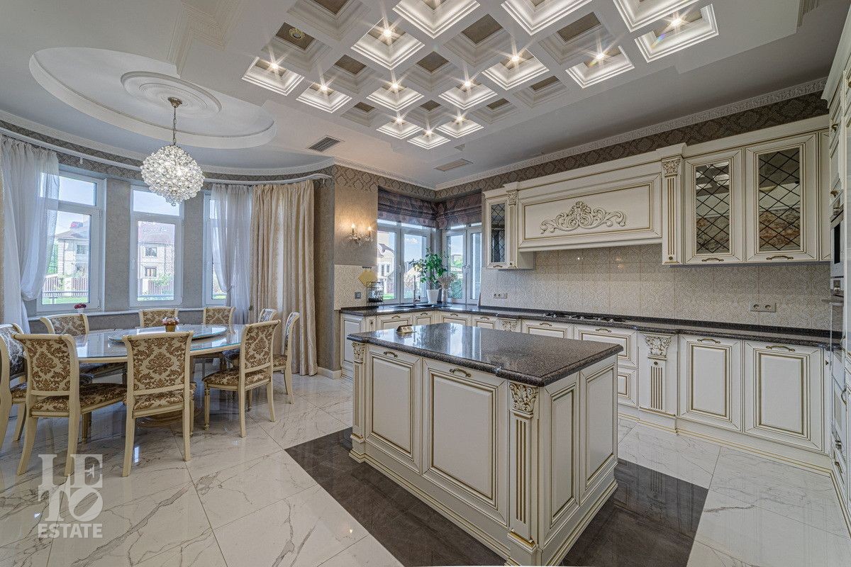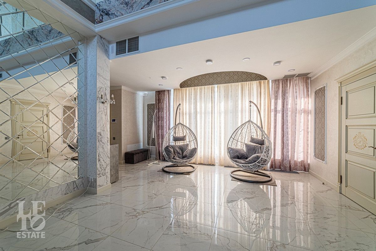 Внутренний интерьер выполнен по авторскому дизайнерскому проекту, с применением современных и дорогостоящих материалов и технологий. Просторные помещения, высокие потолки, большие окна, заполняющие пространство светом и воздухом, дают прекрасную инсоляцию этой загородной резиденции. Натуральные материалы мрамор, камень, дерево умело использованы для создания атмосферы великолепного дома, наполненного жизнью и энергией. В доме 7 спален, 8 санузлов, множество шкафов и гардеробных. Вся мебель и сантехника от лучших производителей Италии и Германии. Премиальная кухня, укомплектована полным набором техники. Центр притяжения дома, - светлая гостиная (со вторым светом, высоким потолком 8 м и панорамными окнами), в которой имеется несколько уютных зон для всех членов семьи.
