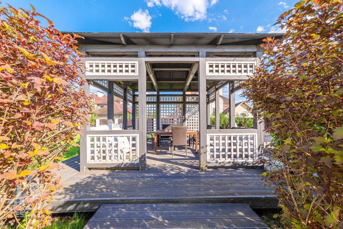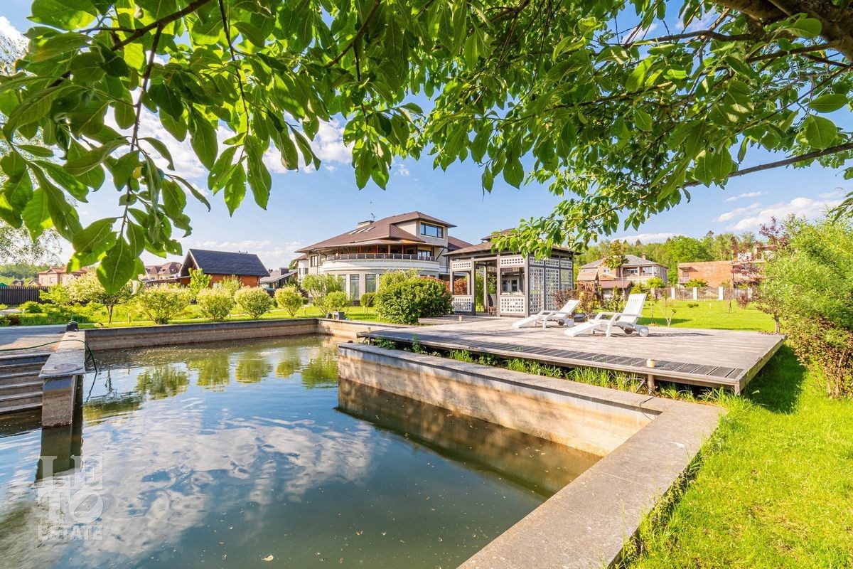 Помимо основного дома, на участке присутствует отдельно стоящий гараж на 2 машиноместа с квартирой для персонала, круглогодичная барбекю зона, зарыбленный пруд с беседкой и зоной отдыха. Ухоженный освещаемый участок с мощеными дорожками, зонами для отдыха, декоративными и плодовыми деревьями, кустарниками.