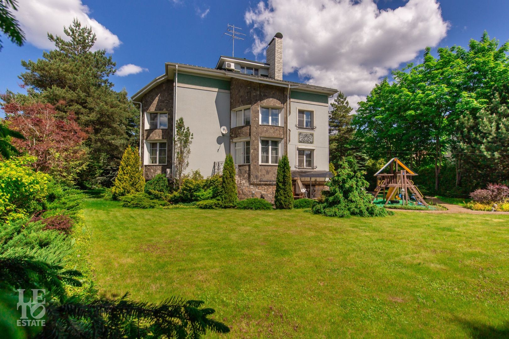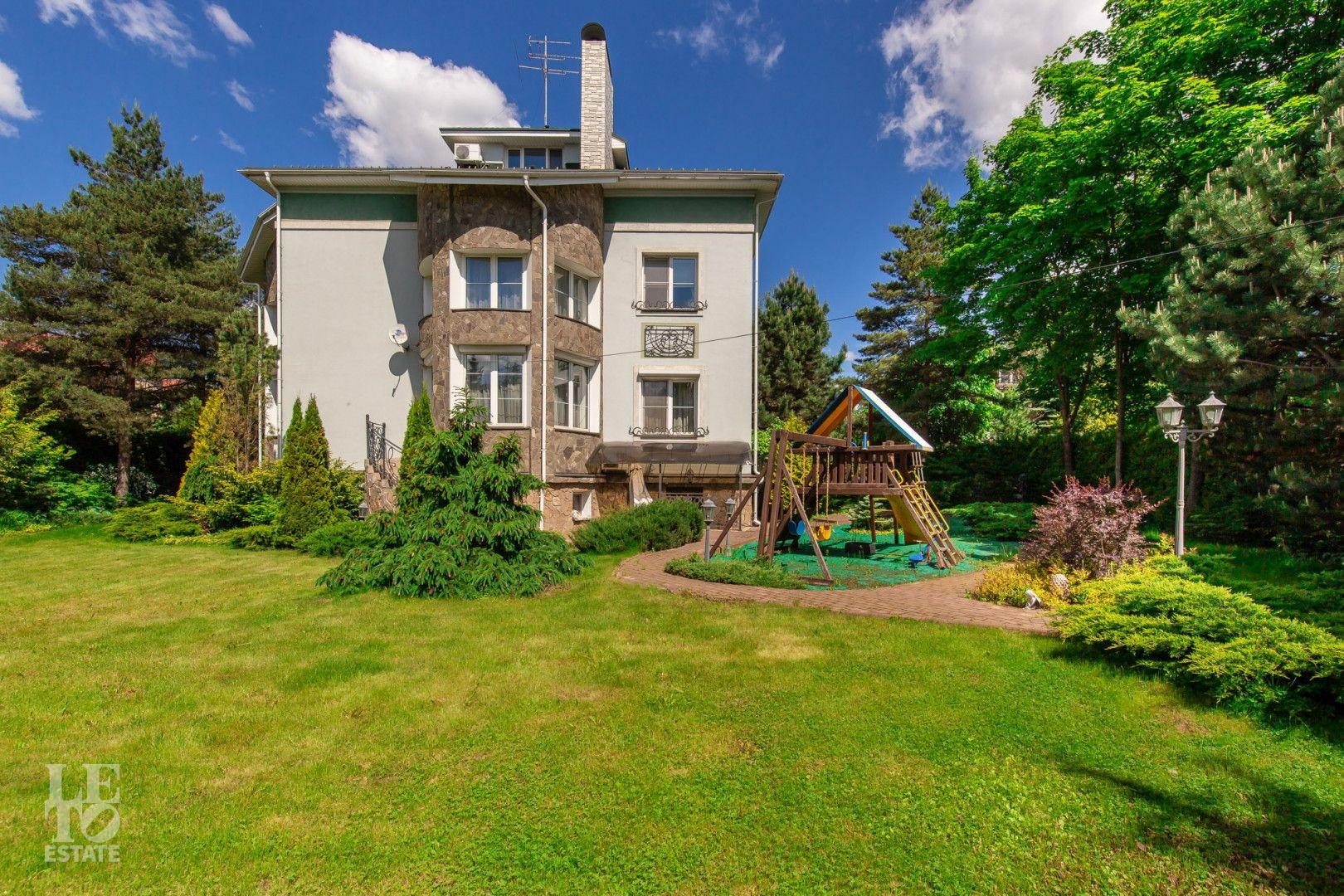 Дом 2008 года постройки, материал стен - кирпич, мягкая кровля Тегола, традиционный классический европейский архитектурный стиль. Четыре уровня, включая цокольный и мансардный этажи.