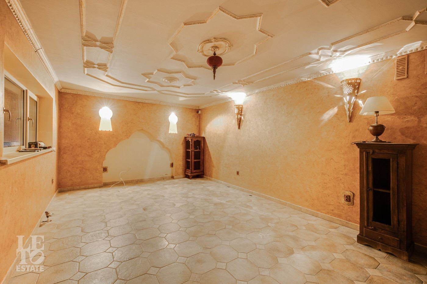В доме выполнена отделка под ключ в классическом стиле с использованием качественных дорогих материалов, дерева ценных пород. Новому владельцу нужно лишь расставить мебель и предметы интерьера по своему вкусу. Просторная гостиная со вторым светом.