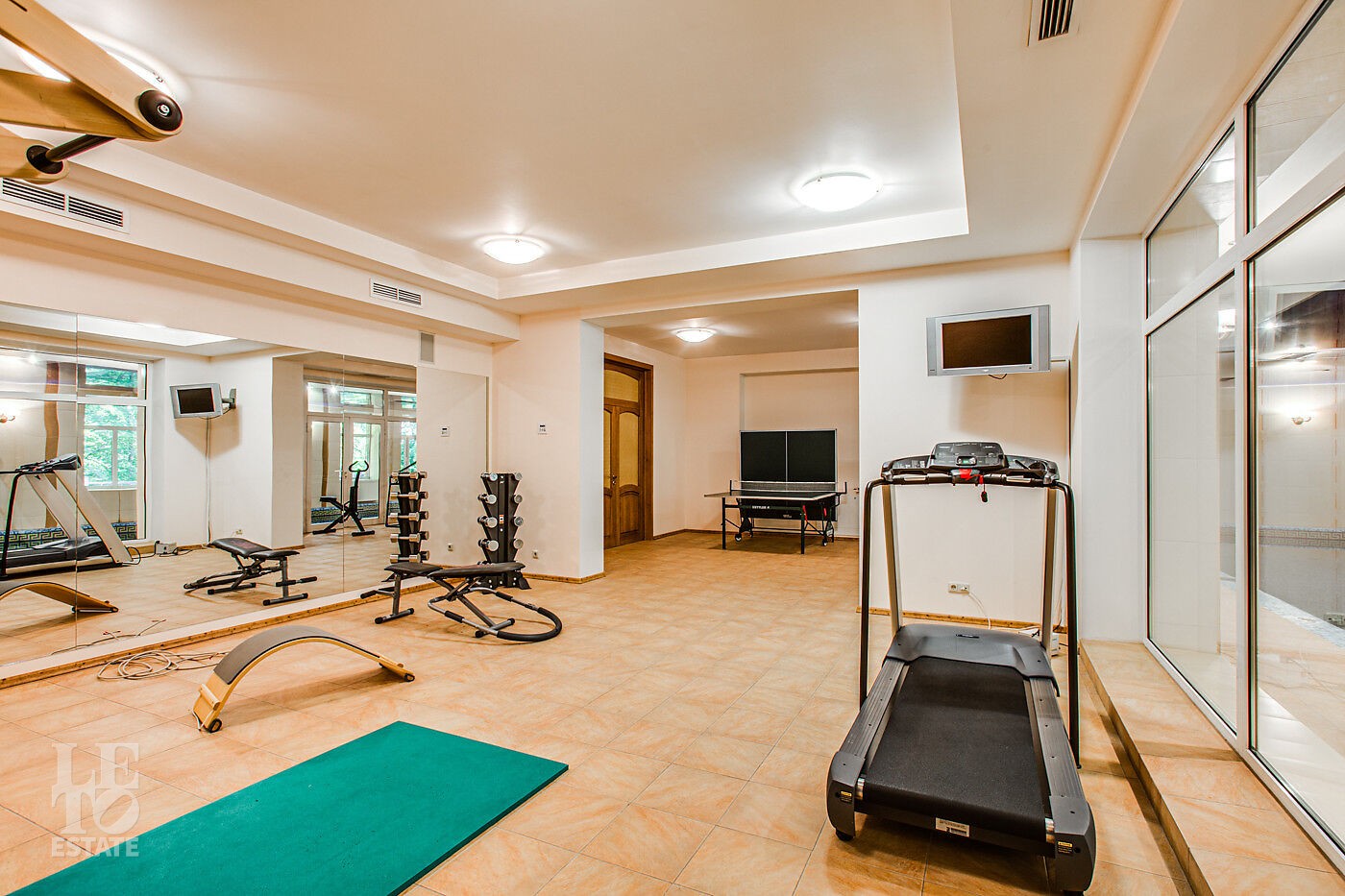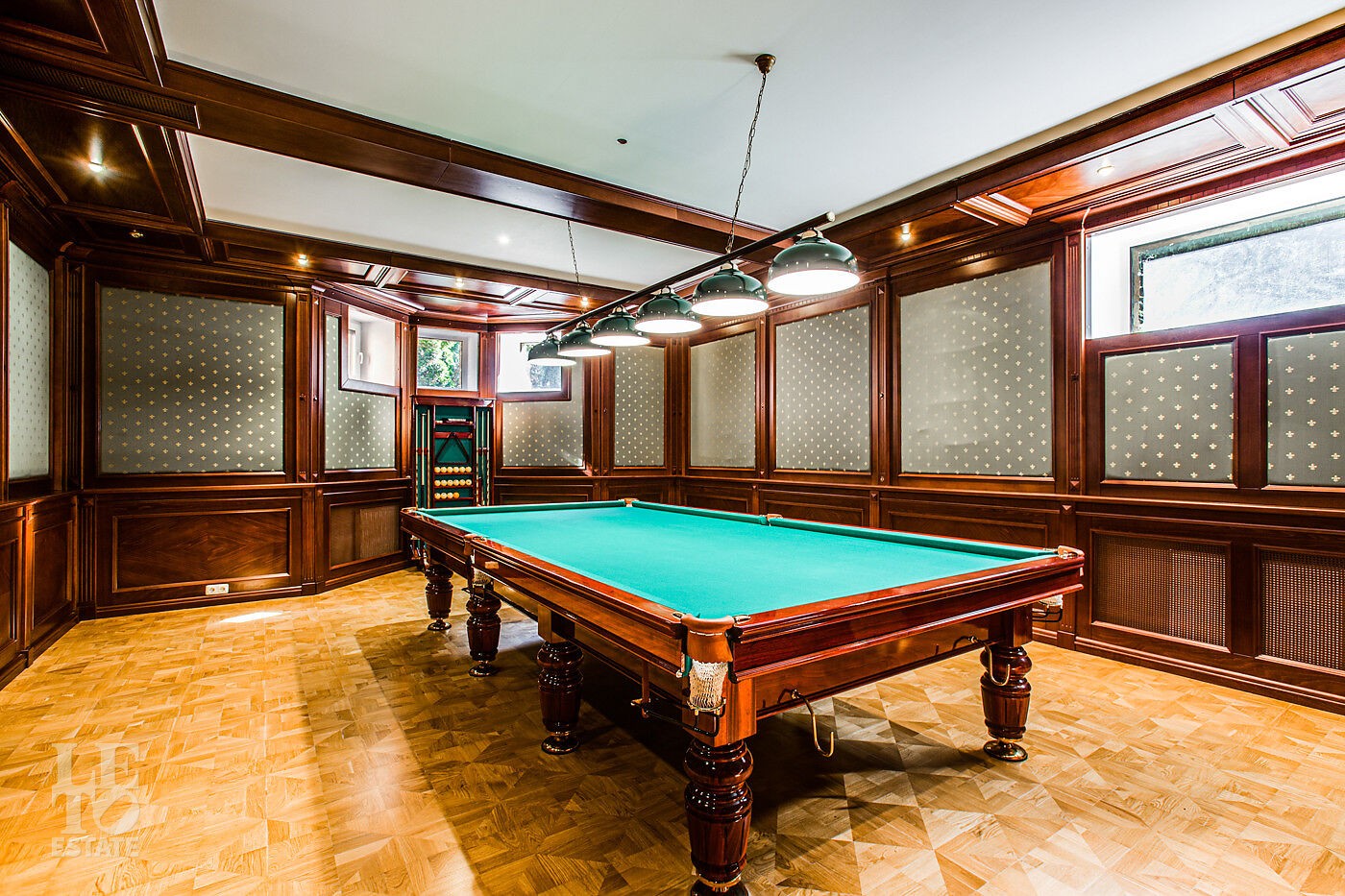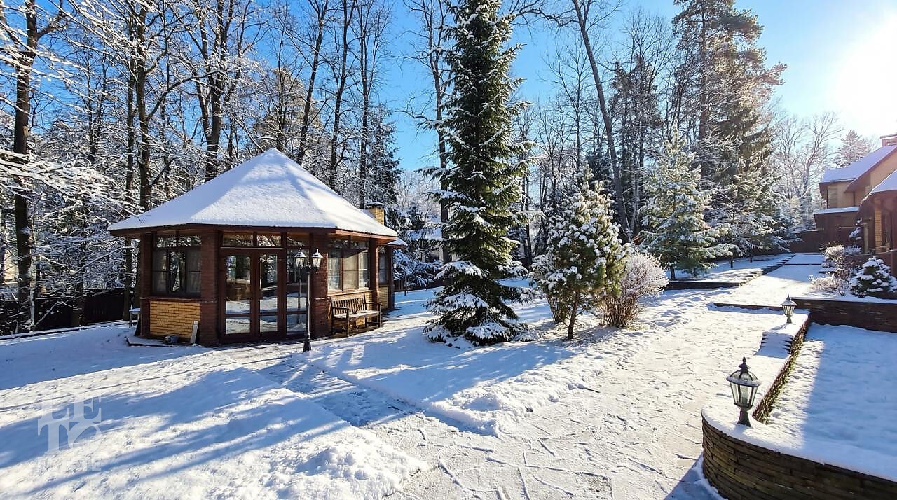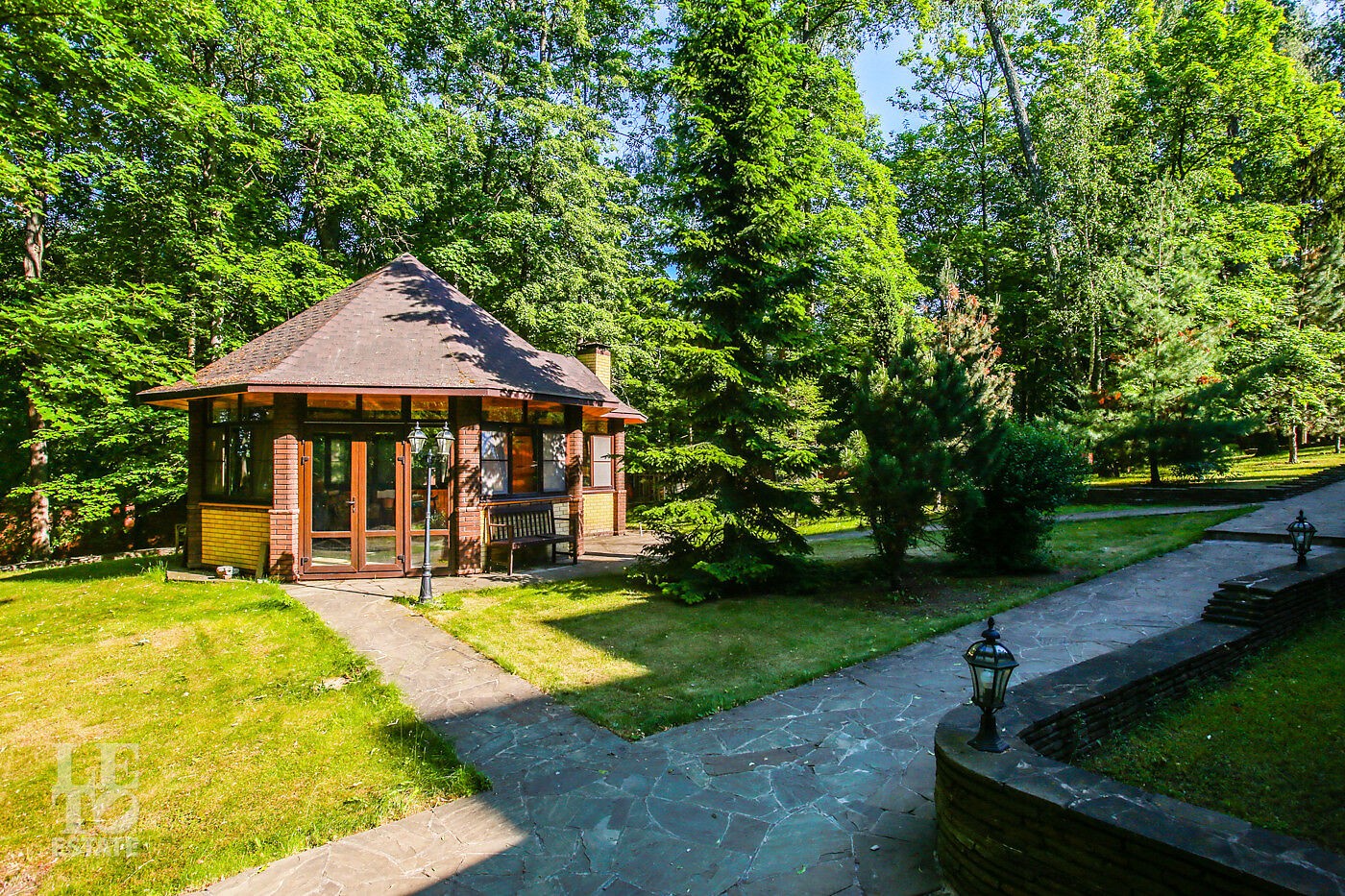 Гостевой дом из бруса с гаражом на 4 машины в цокольном этаже. Беседка BBQ застекленная, круглогодичная. Теннисный корт, который можно так же переоборудовать в баскетбольную площадку или огороженное футбольное поле.