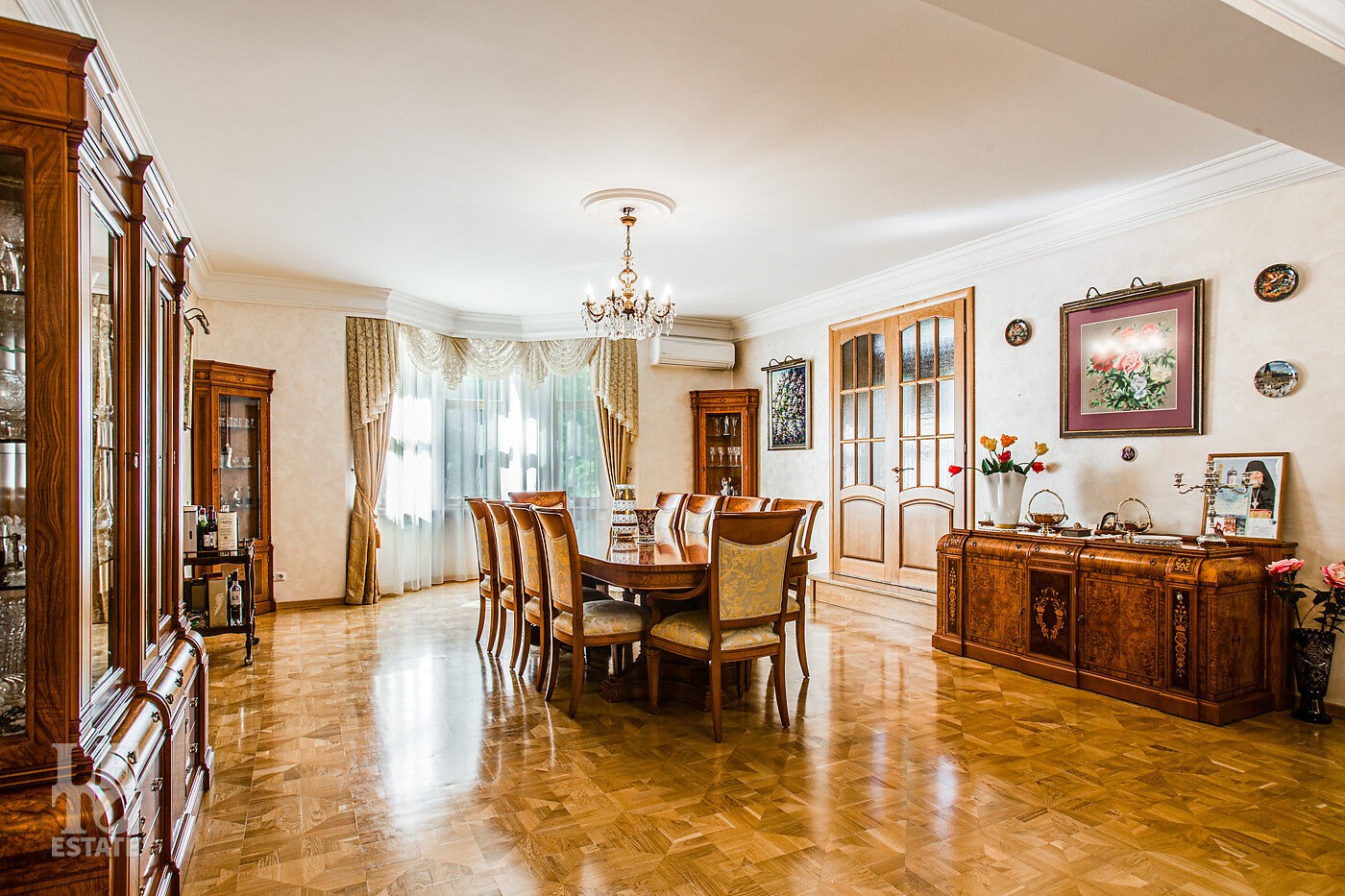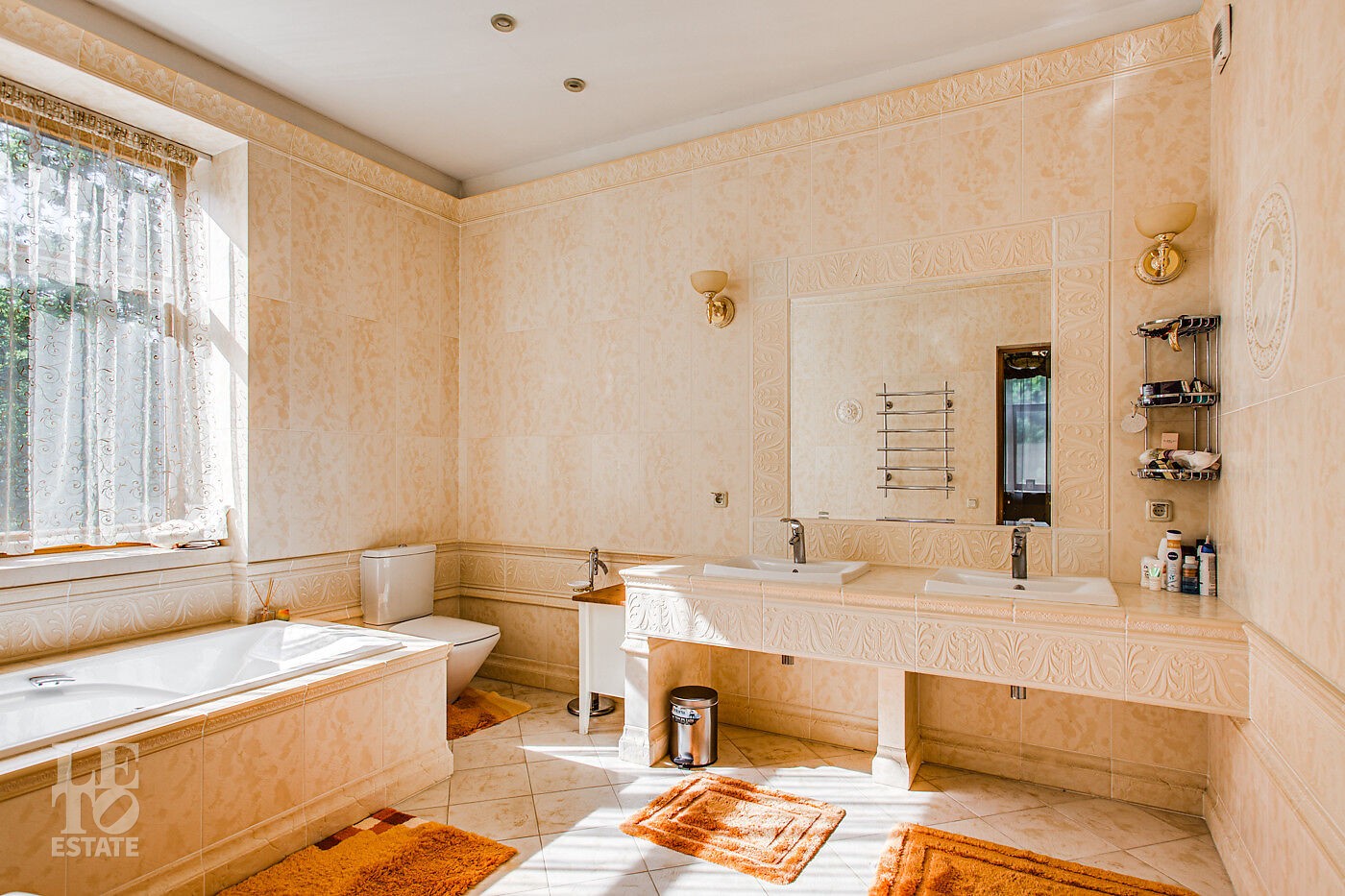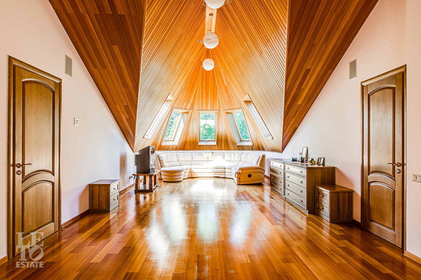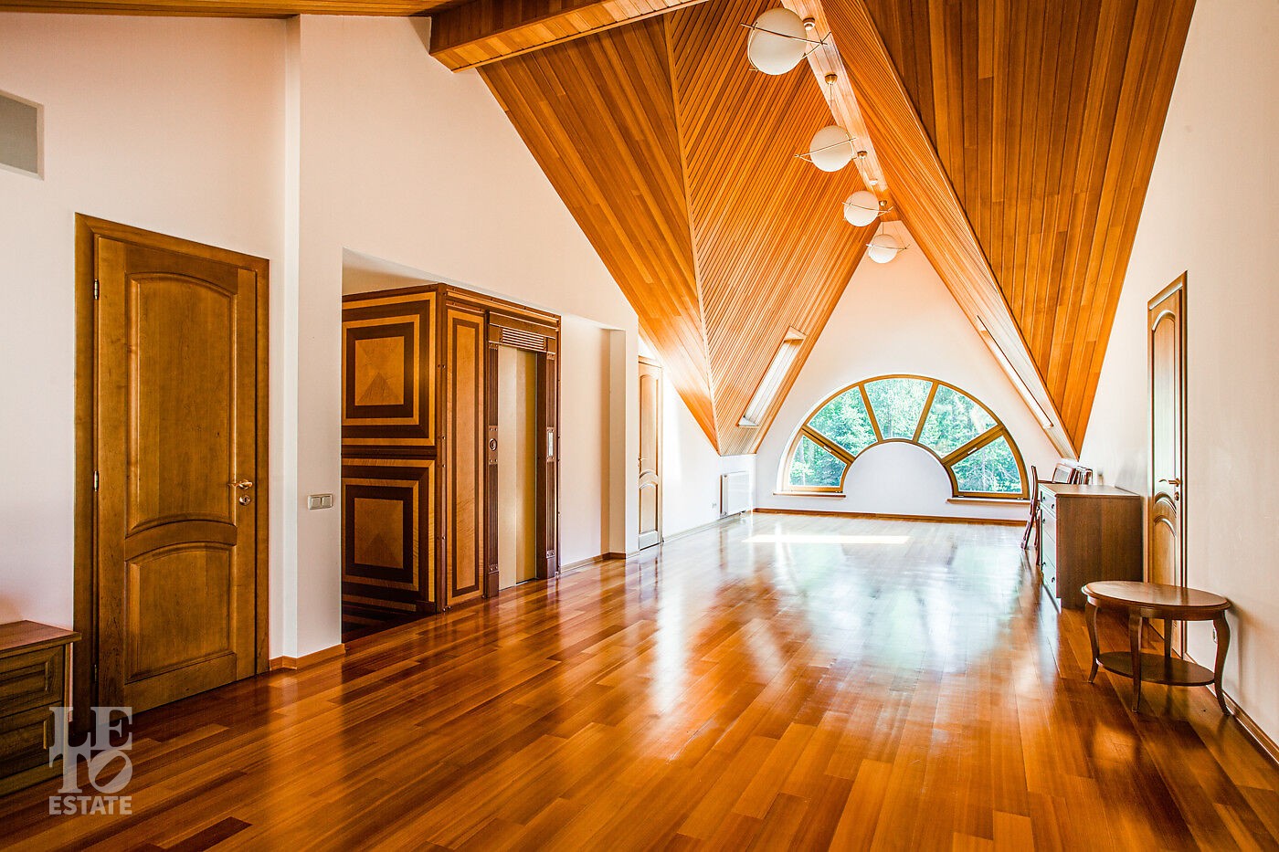 Гостевой дом из бруса с гаражом на 4 машины в цокольном этаже. Беседка BBQ застекленная, круглогодичная. Теннисный корт, который можно так же переоборудовать в баскетбольную площадку или огороженное футбольное поле.