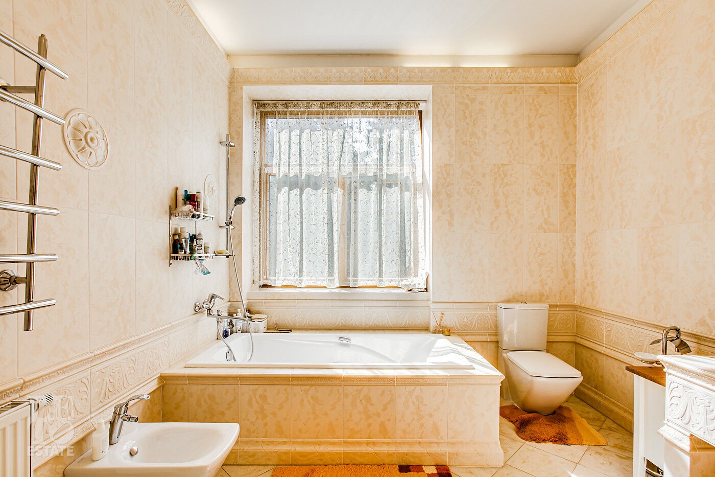Архитектурный стиль дома можно охарактеризовать как классический, с элементами модерна, что придает ему особую элегантность и актуальность. Построенный из кирпича, он отличается надежностью и долговечностью, а панорамное остекление позволяет наслаждаться великолепными видами на окружающий ландшафт.