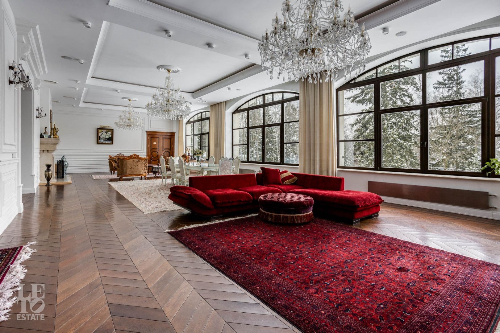 Вашему вниманию представлена загородная резиденция общей площадью 4000 кв. м в охраняемом коттеджном поселке "Большое Сареево", расположенном в 15 км от МКАД по Рублёво-Успенскому шоссе.