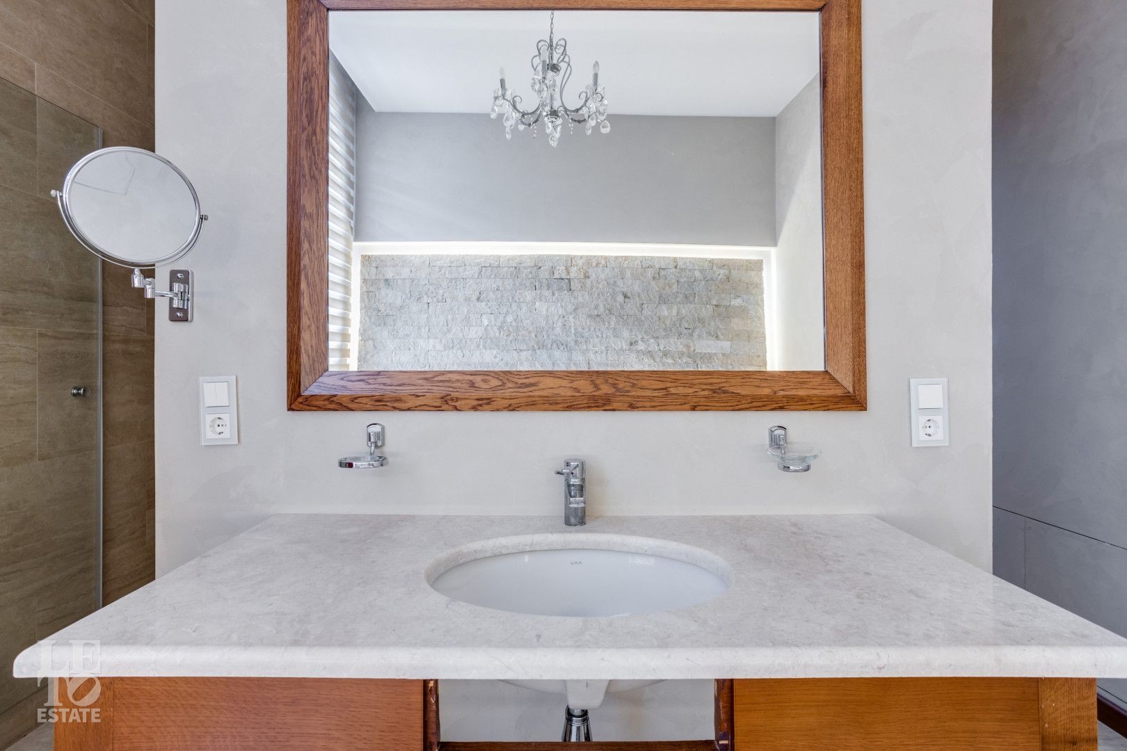 Резиденция включает в себя особняк в английском стиле и несколько строений. Все коммуникации центральные: газоснабжение, электроснабжение, холодное водоснабжение, канализация.