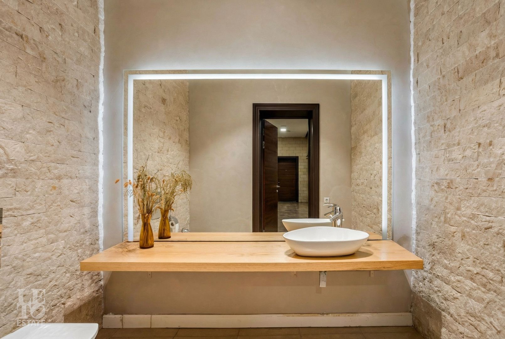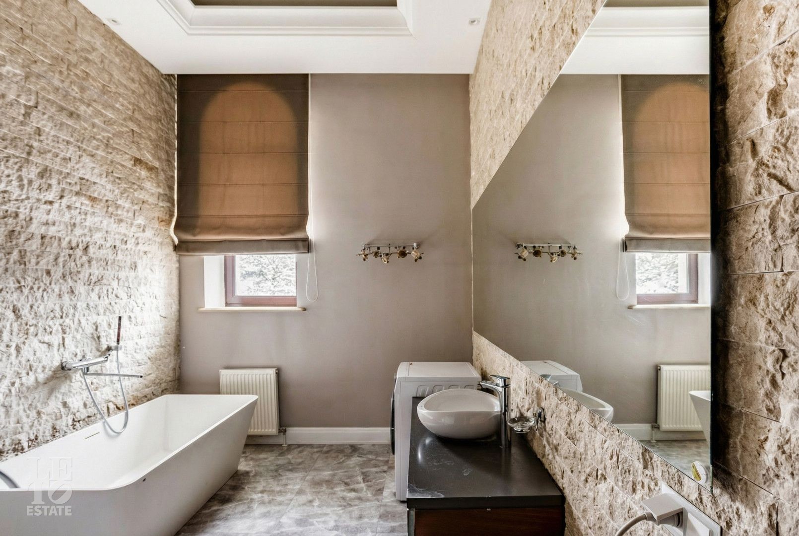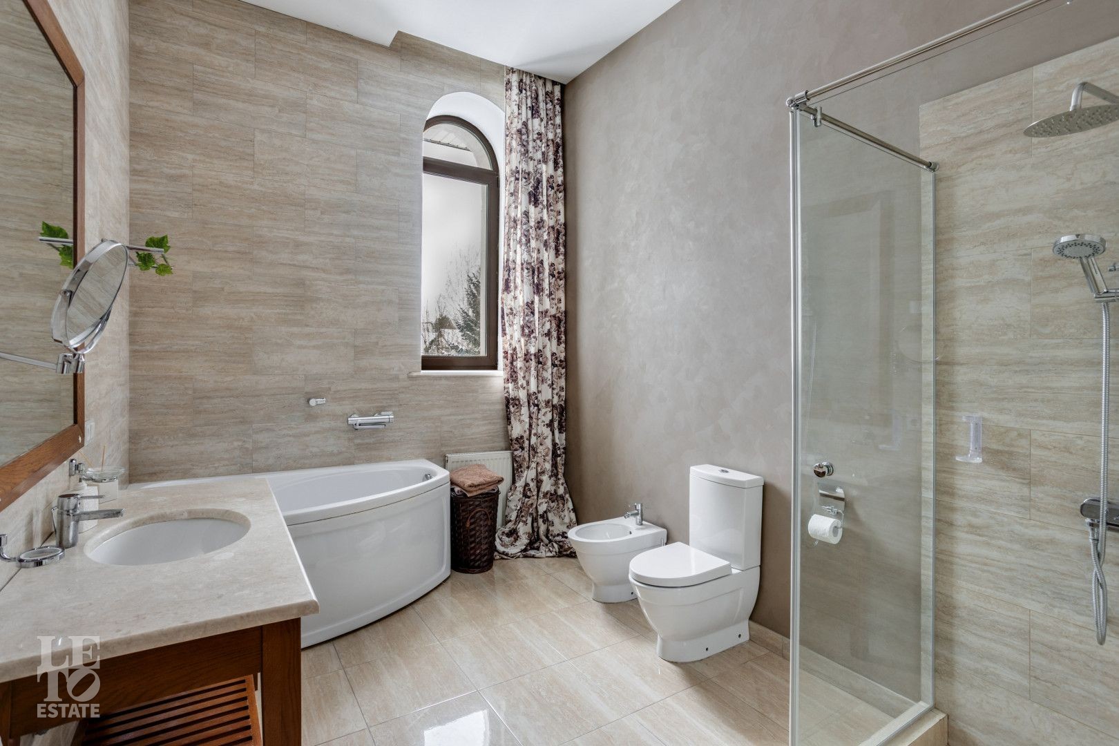 На участке площадью 3 га сделаны дренаж и ландшафтный дизайн, высажены декоративные кустарники и растения. На участке гараж на три автомобиля, гостевой дом, дом для обслуживающего персонала, дом для охраны, летняя веранда, большая беседка, беседка для BBQ, дом со спа-зоной: холл, обеденный зал, криосауна, кедровая бочка, хаммам, парилка, предбанник, спальня, два санузла, душевая, сеновал.