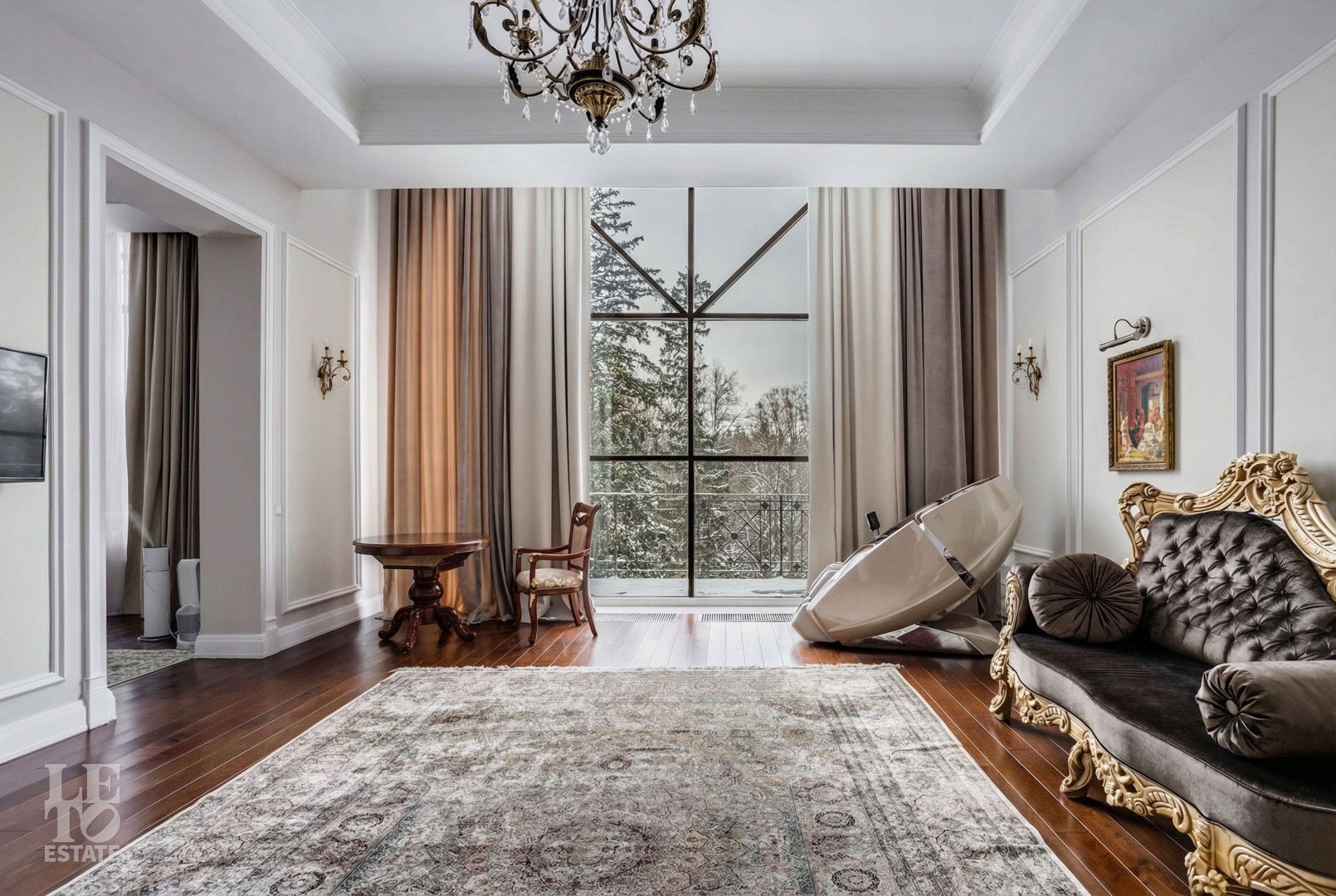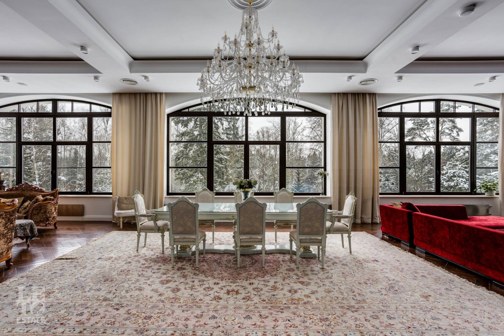 Вашему вниманию представлена загородная резиденция общей площадью 4000 кв. м в охраняемом коттеджном поселке "Большое Сареево", расположенном в 15 км от МКАД по Рублёво-Успенскому шоссе.