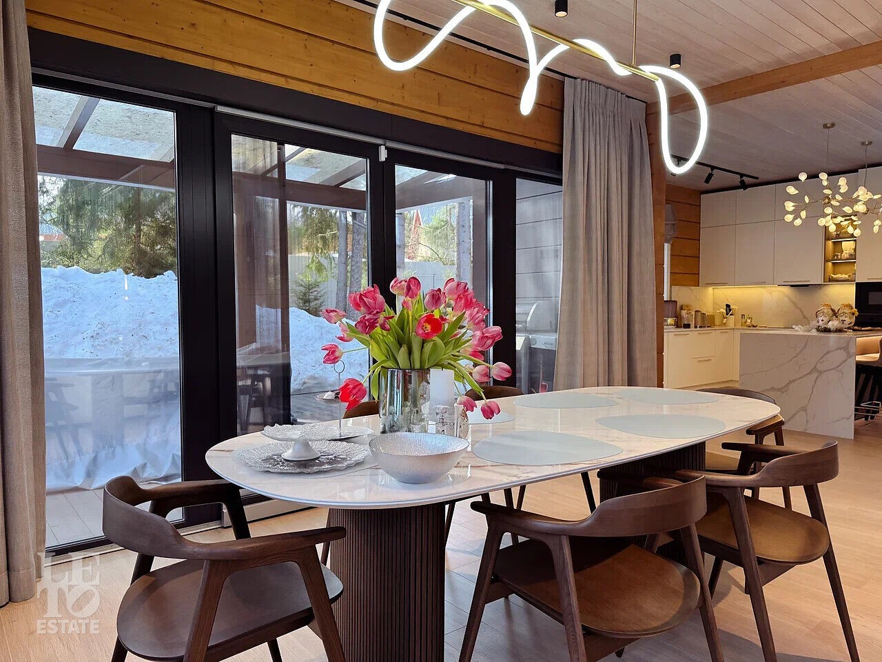 Вашему вниманию представляется дом площадью 306,4 м² построенный из клееного бруса — материала, который сочетает природную красоту, современные технологии и высокий уровень комфорта. Дом располагается в деревне Борисково в 28 км от МКАД по Новорижскому шоссе.