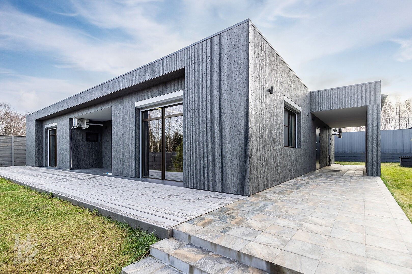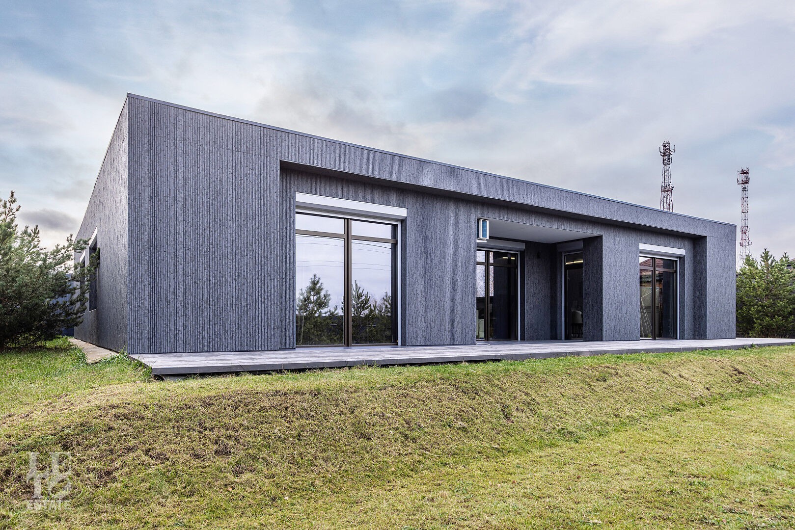 Современный одноэтажный дом в коттеджном поселке Борки.