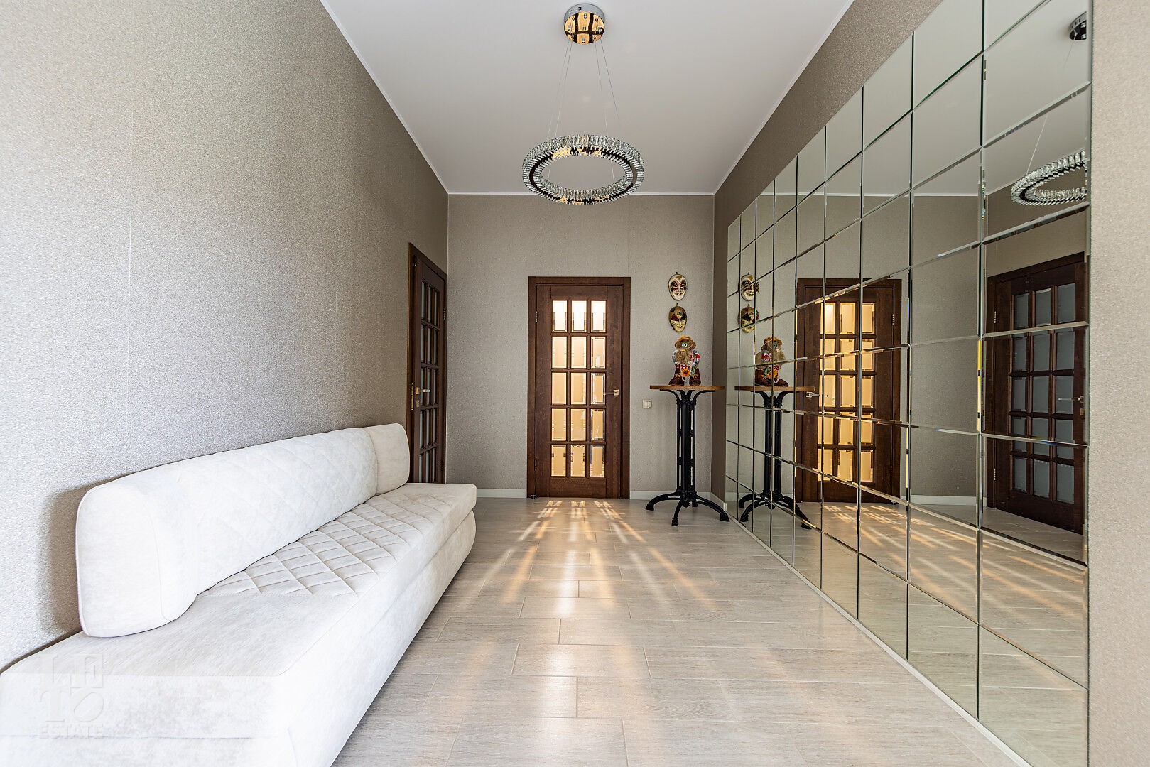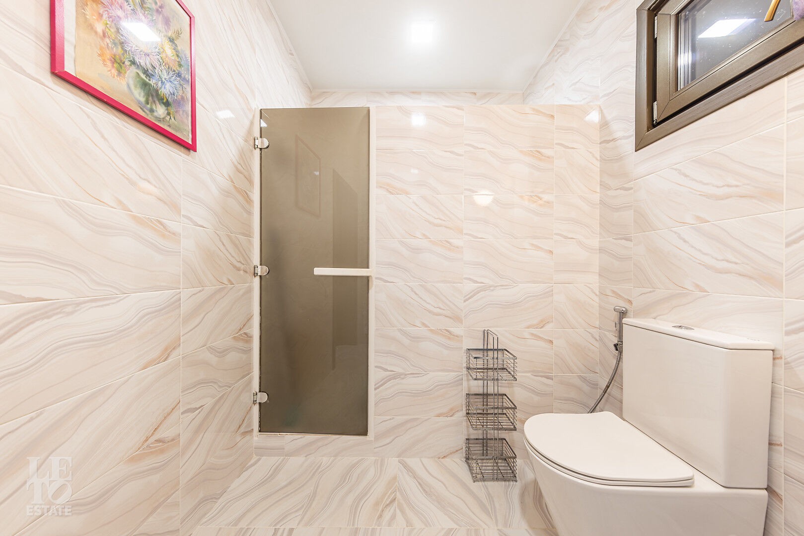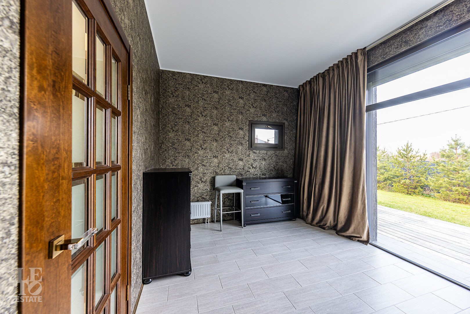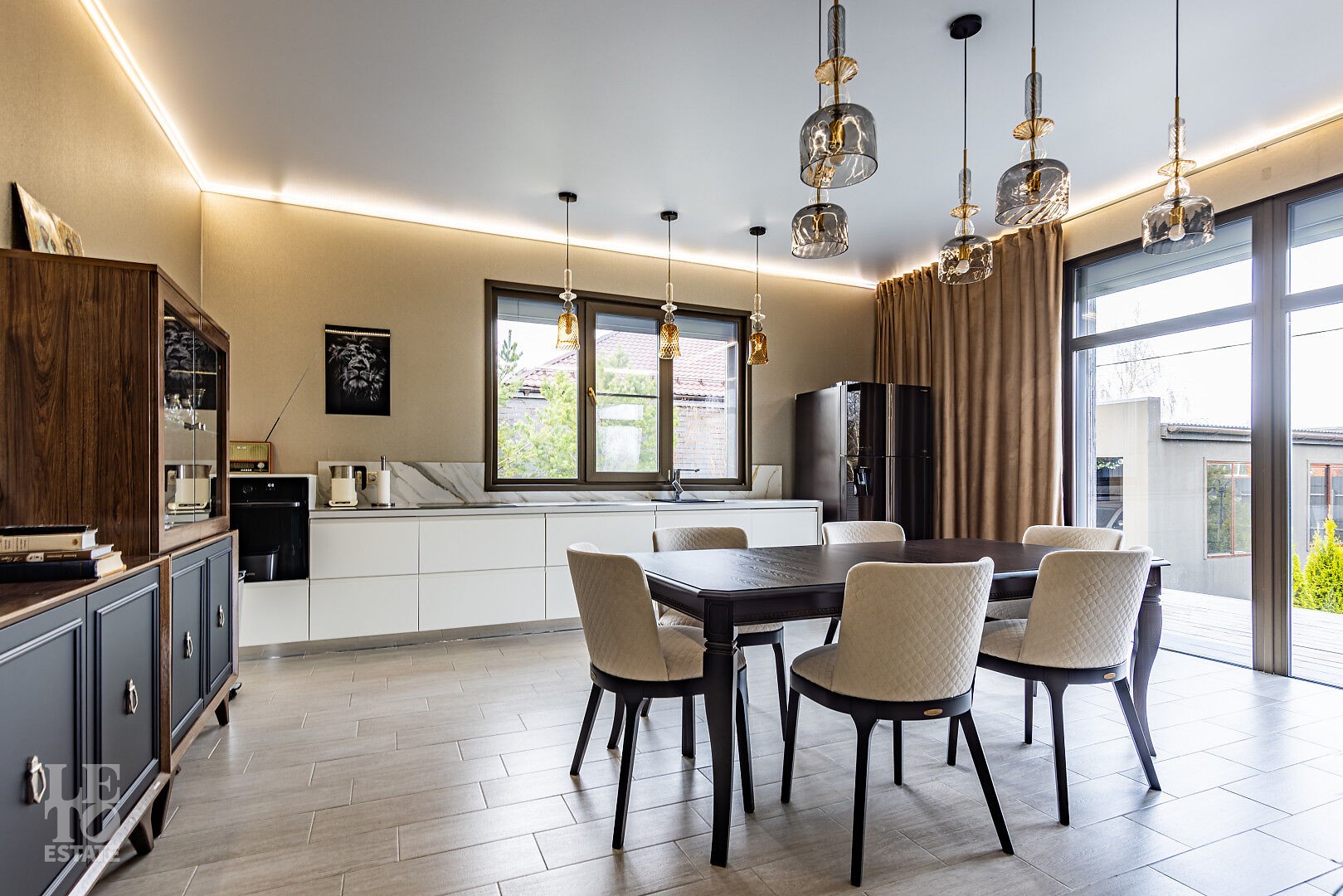 В доме просторная гостиная с выходом на крытую веранду, кухня- столовая с современной бытовой техникой, 4 спальни, 2 санузла, котельная, прихожая.