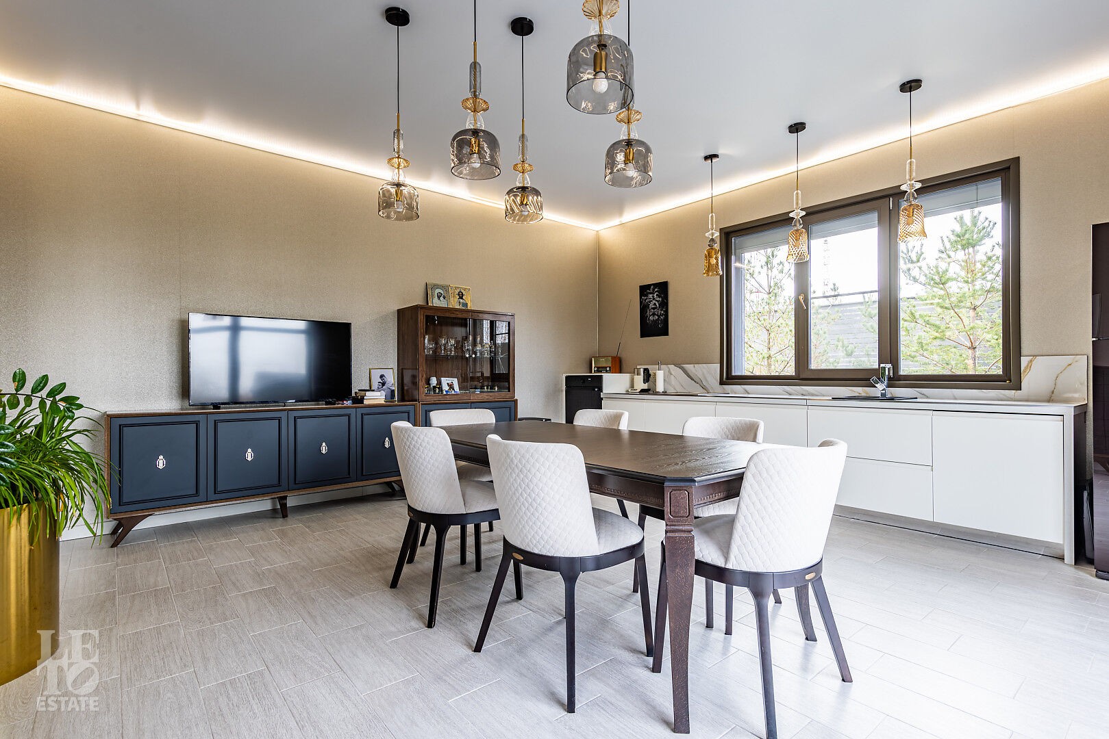 Светлый, просторный дом 233 м2 выполнен по всем самым новым технологиям только качественными материалами. Коммуникации: магистральный газ, скважина, биостанция очистки сточных вод, электричество 15 кВт, интернет по оптоволокну.