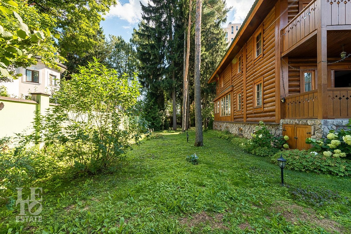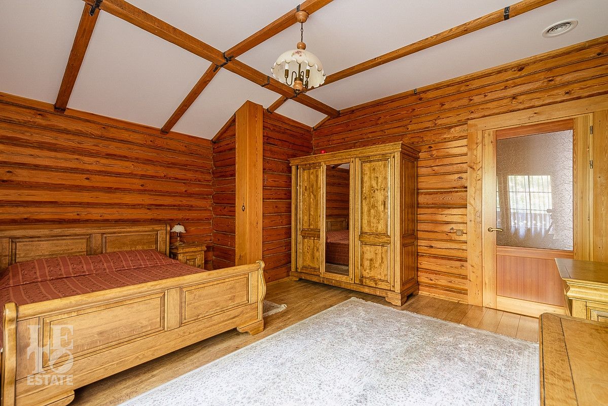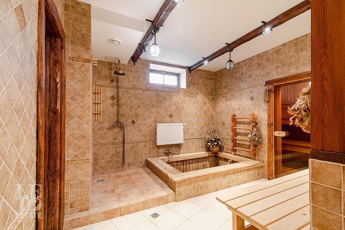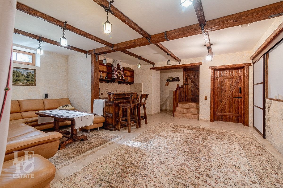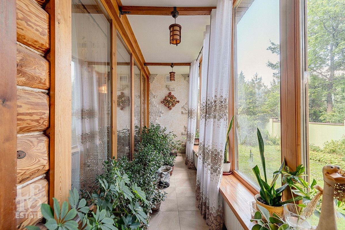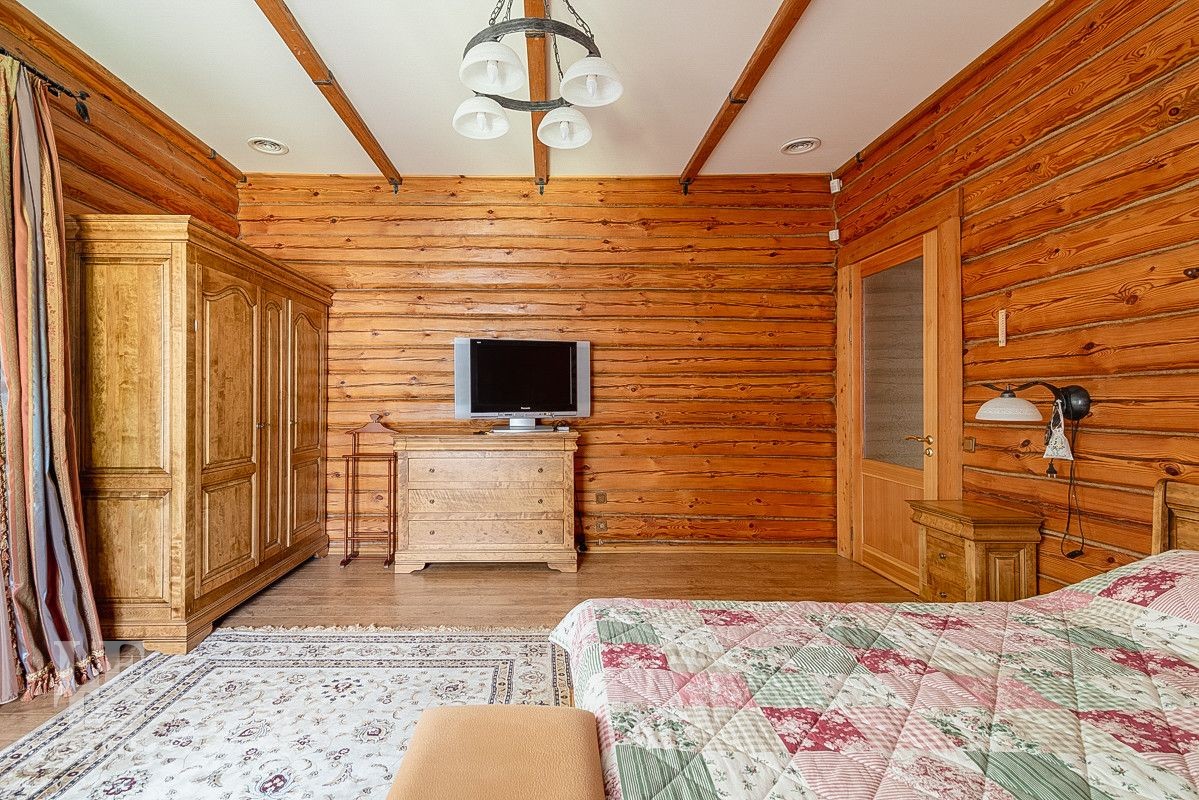 Дом построен из бревна: воплощение комфорта и уюта. Одним из основных достоинств дома является экологичность используемых материалов. Более того, в деревянном доме всегда создается уютная и теплая атмосфера, что благотворно влияет на здоровье и настроение. Брус обладает высокой плотностью и малой теплопроводностью, благодаря чему тепло внутри дома долго задерживается, а воздух не перегревается. Внутри дома используются только натуральные материалы, мебель выполнена на заказ. В доме разведены теплые полы, на цокольном этаже установлено кондиционирование. В доме во всех помещениях выполнена вытяжная вентиляция.