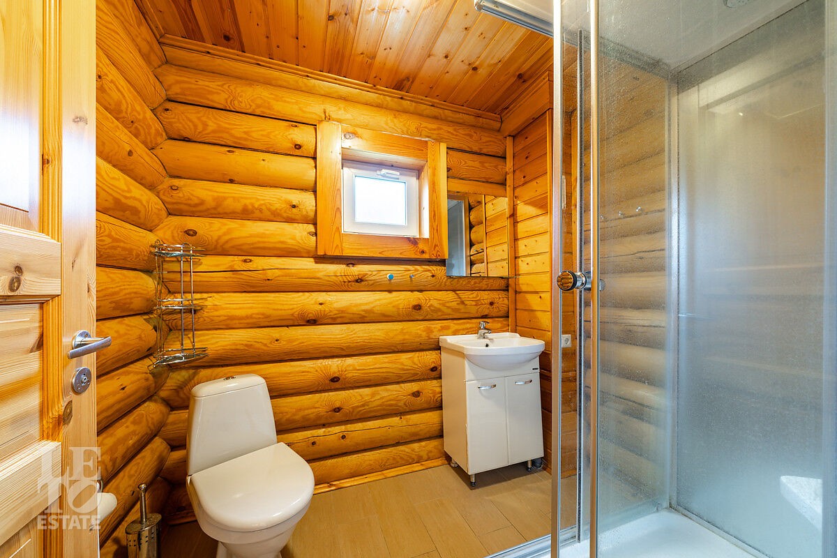 Первый этаж – прихожая, санузел с душем, котельная с водоподготовкой, большая кухня-гостиная;