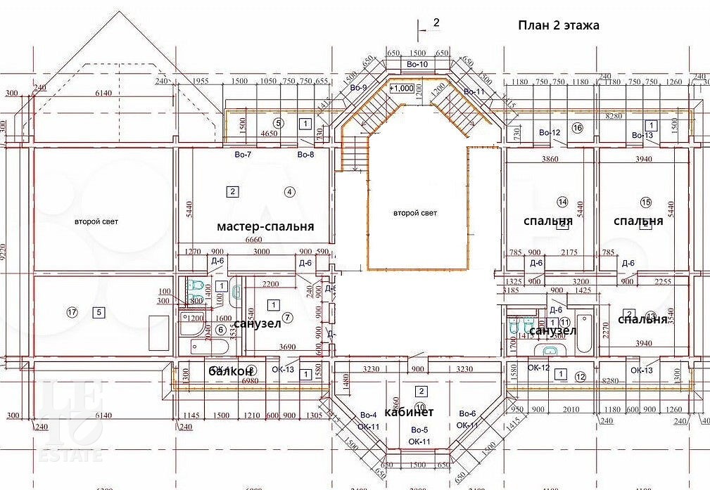 Второй этаж: мастер-спальня, кабинет, три спальни, санузел.