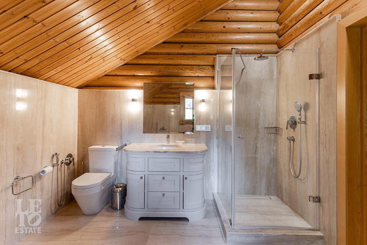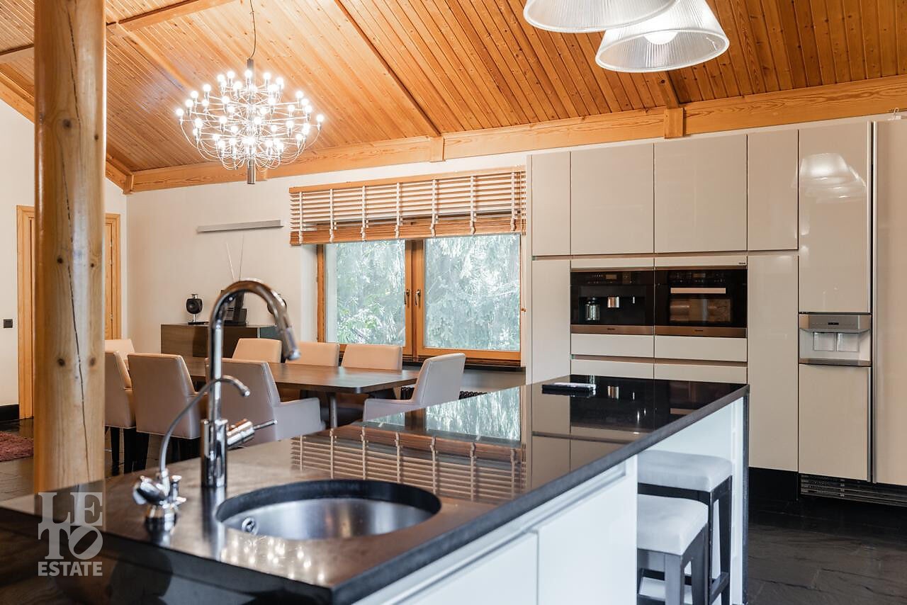 Дом возведен по комбинированной технологии из камня и дерева Honka, выполнен качественный стильный ремонт.