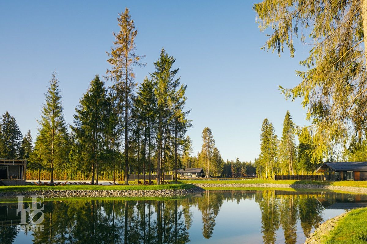 Посёлок окружает хвойный реликтовый лес площадью 4 688 га. Более 2 700 вековых елей на территории поселка создают атмосферу уединения и покоя. Центральным элементом ландшафта стал каскад прудов протяжённостью 400 м (площадь — 1,5 га). Здесь обустроена пляжная зона с лежаками, работает бар, есть костровая площадка.