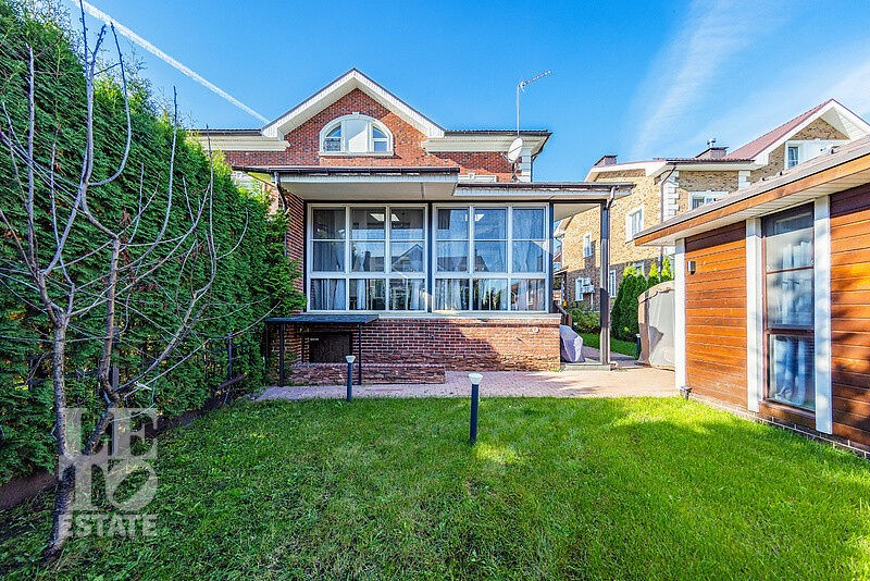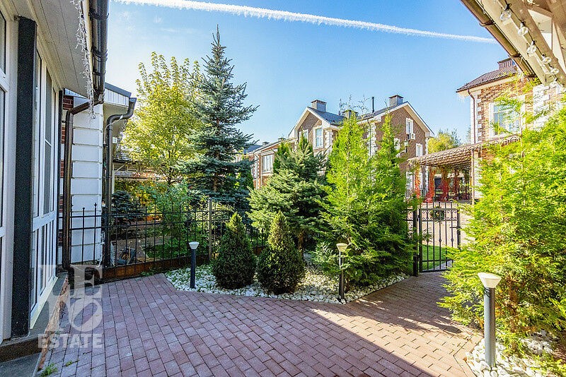 Территория ухожена, по периметру участка высажены туи и кустарники, дорожки вымощены плиткой. Дом расположен на второй линии от леса — тишина и приватность.