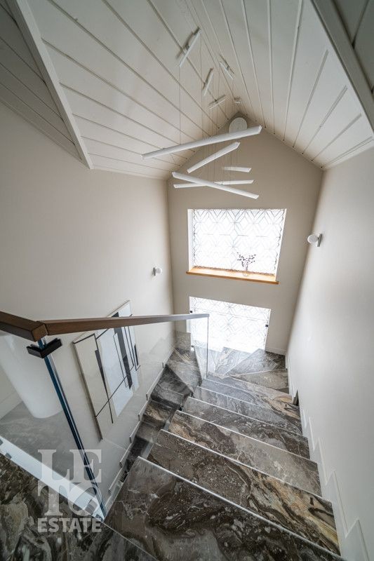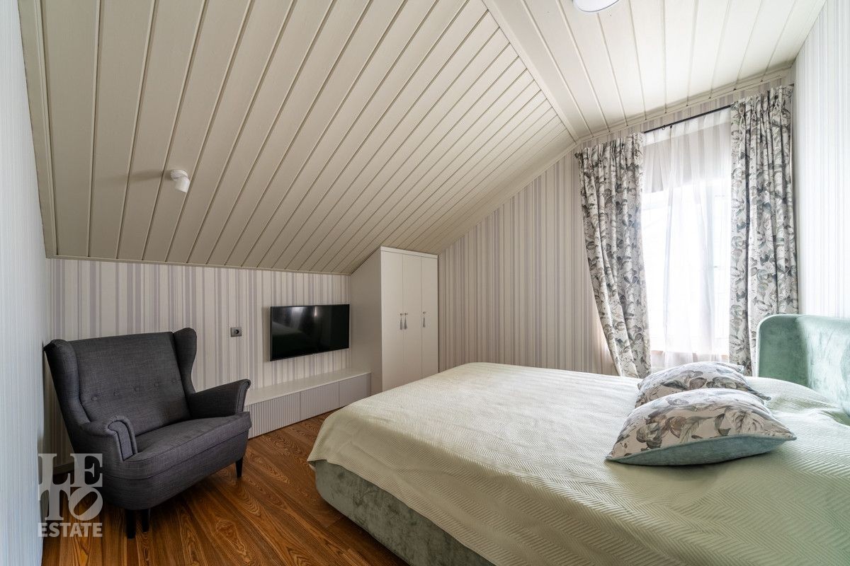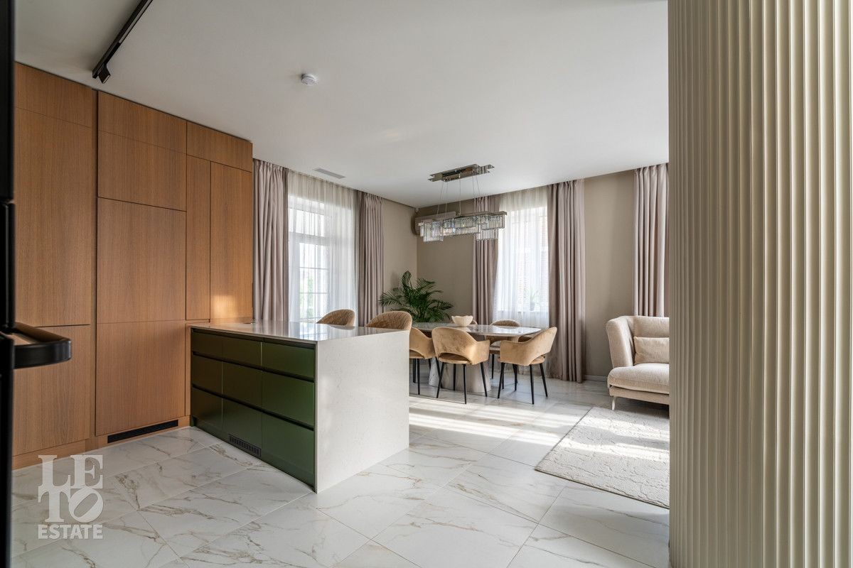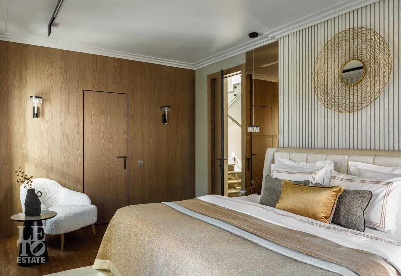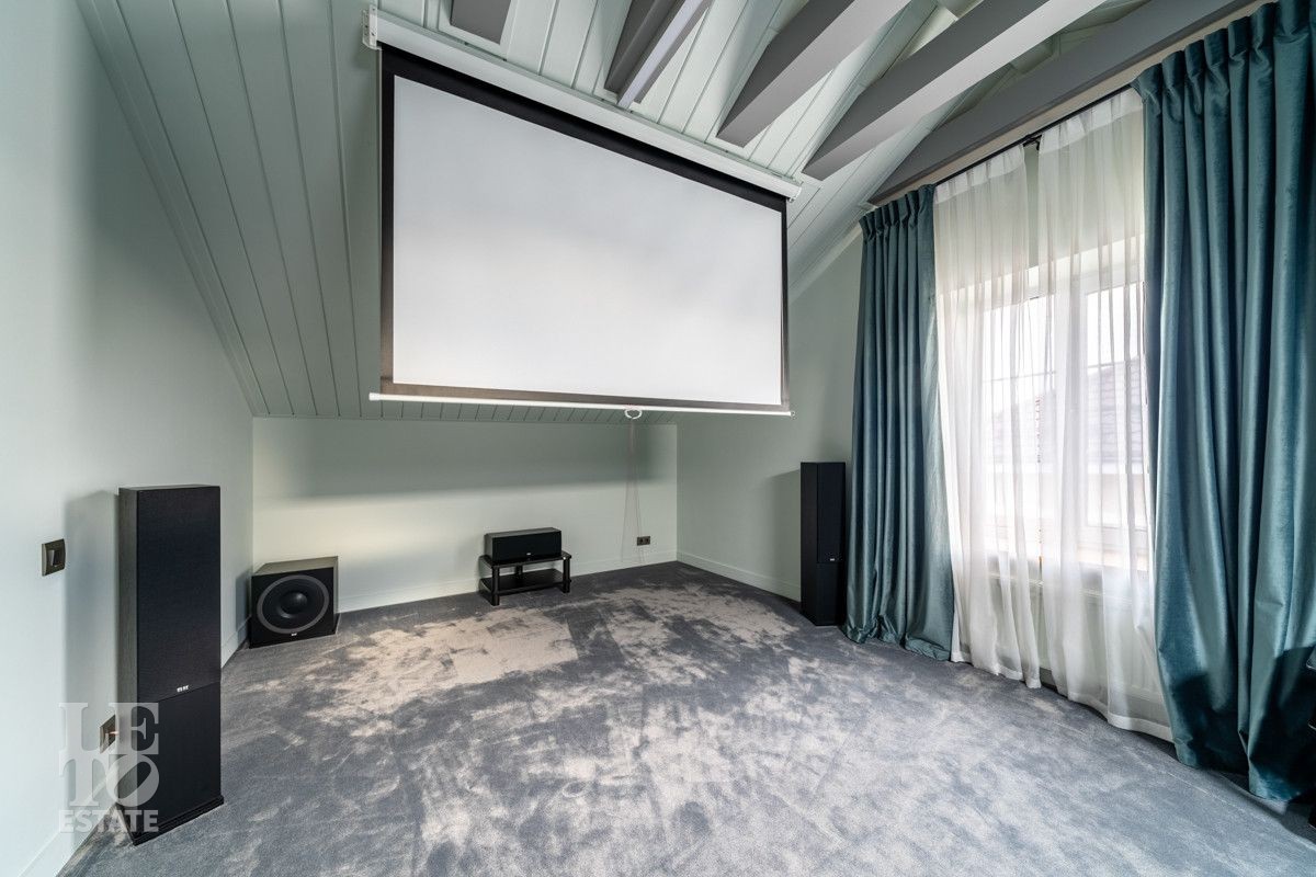 Внутреннее оформление выполнено по уникальному дизайнерскому проекту с использованием исключительно качественных и дорогих материалов. В этом доме продумано всё до мельчайших деталей. На кухне Вас приятно удивит встроенный измельчитель в раковине, а также современная система подготовки и очистки воды. Забота о воздухе здесь также имеет первостепенное значение — грамотно организованная система вентиляции и притока свежего воздуха избавляет от необходимости открывать окна и проветривать дом, здесь всегда царит благоприятная атмосфера. Безопасность дома гарантирует современная система видеонаблюдения, охрана, датчики протечки воды и пожарные датчики.