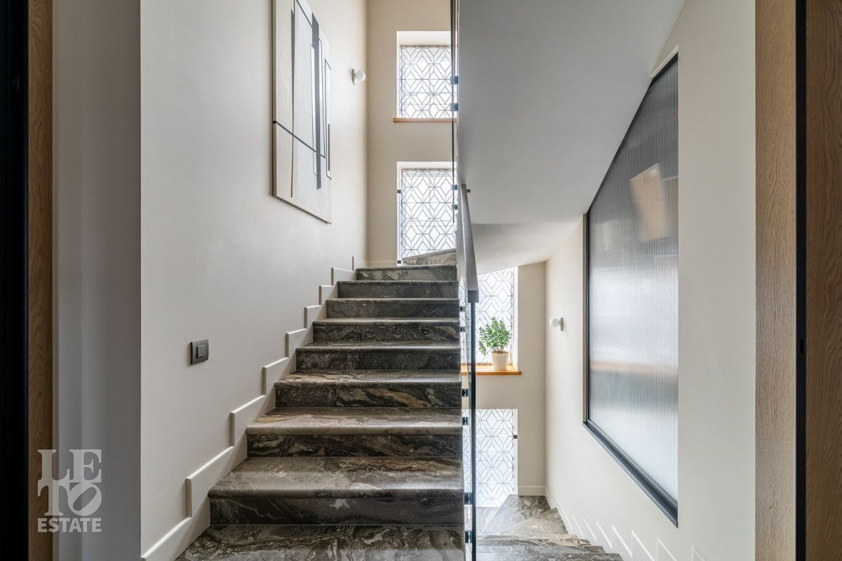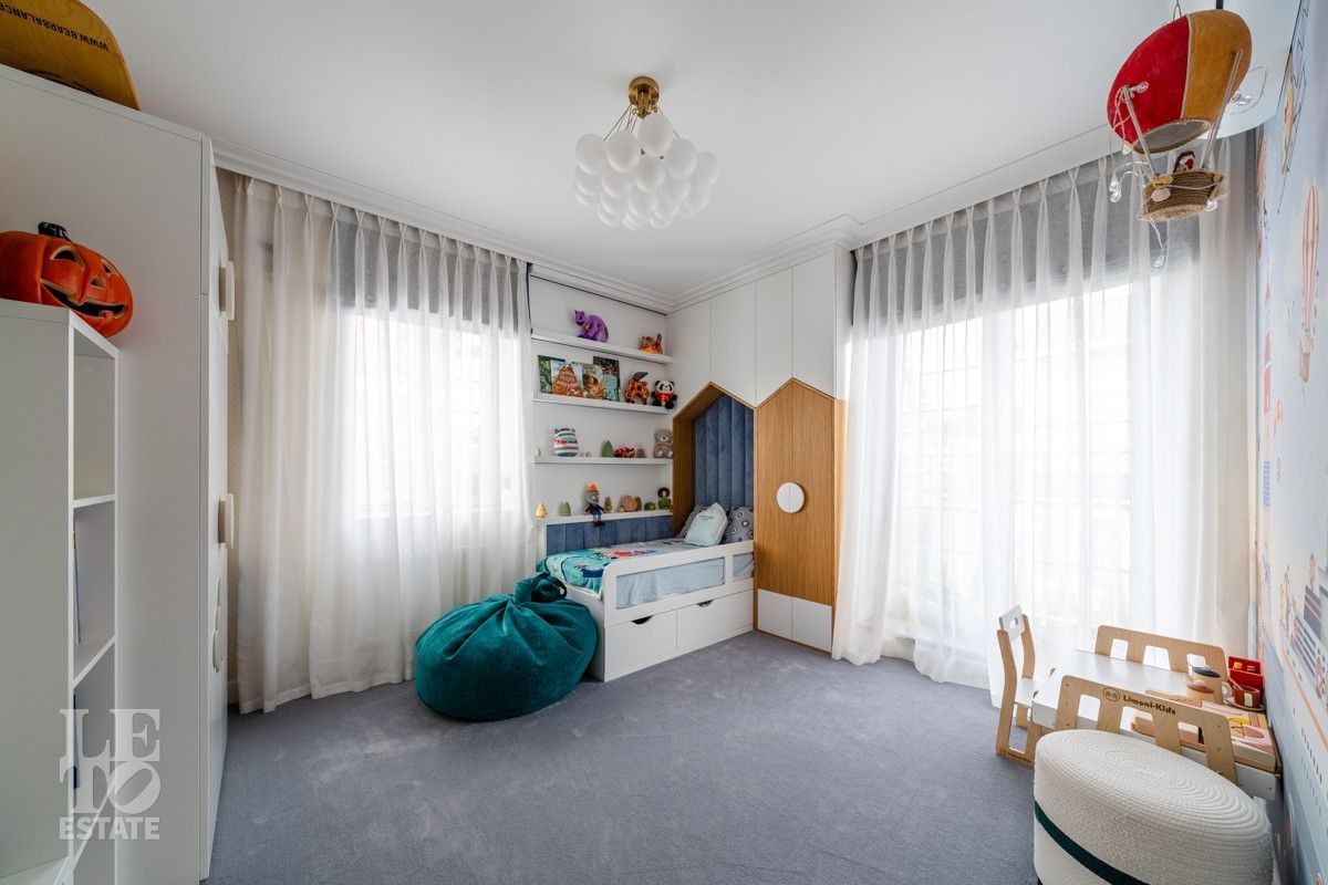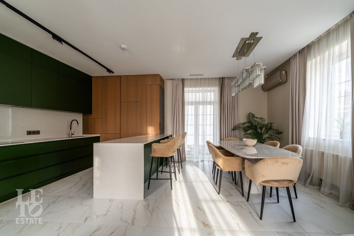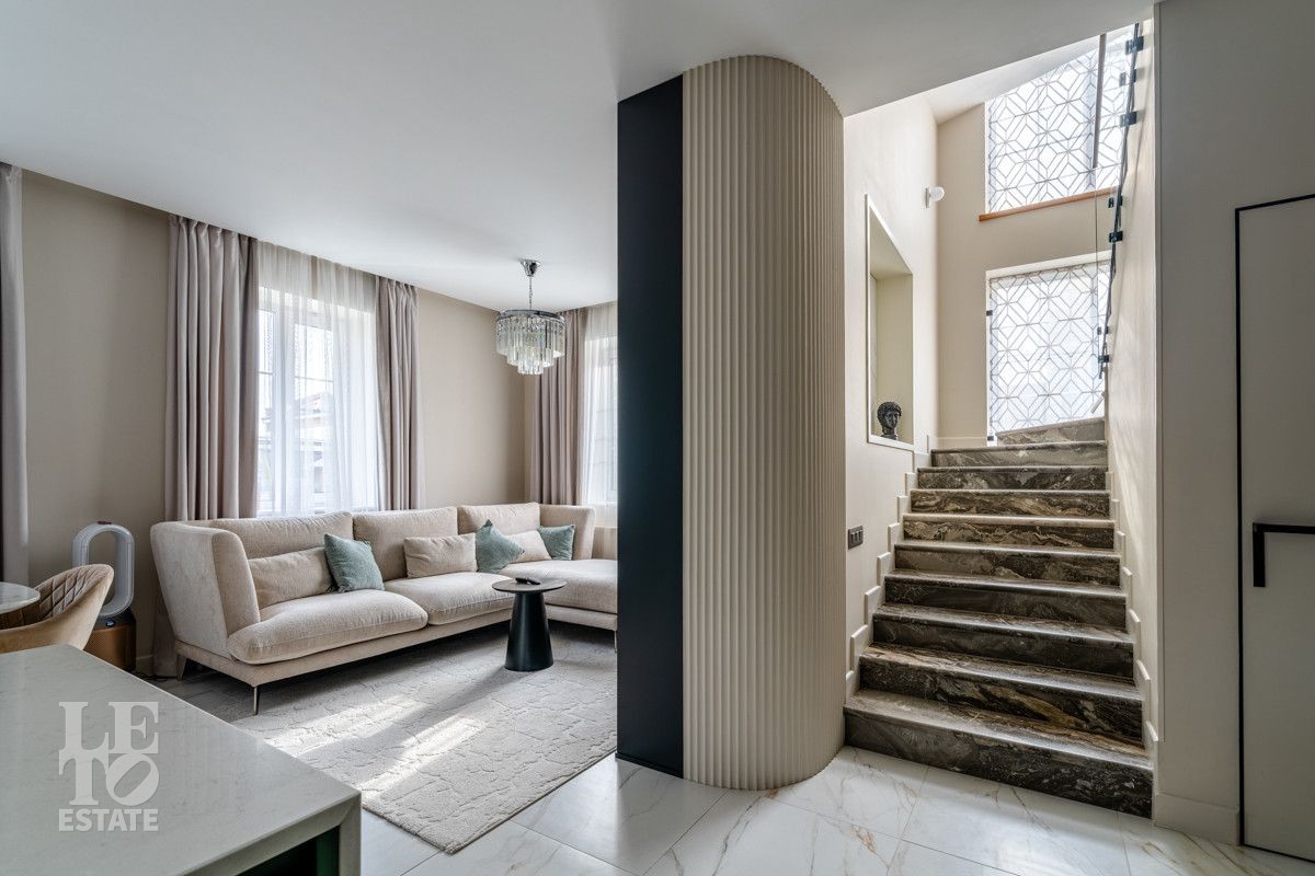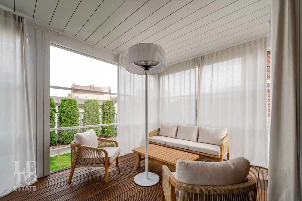 Внутреннее оформление выполнено по уникальному дизайнерскому проекту с использованием исключительно качественных и дорогих материалов. В этом доме продумано всё до мельчайших деталей. На кухне Вас приятно удивит встроенный измельчитель в раковине, а также современная система подготовки и очистки воды. Забота о воздухе здесь также имеет первостепенное значение — грамотно организованная система вентиляции и притока свежего воздуха избавляет от необходимости открывать окна и проветривать дом, здесь всегда царит благоприятная атмосфера. Безопасность дома гарантирует современная система видеонаблюдения, охрана, датчики протечки воды и пожарные датчики.