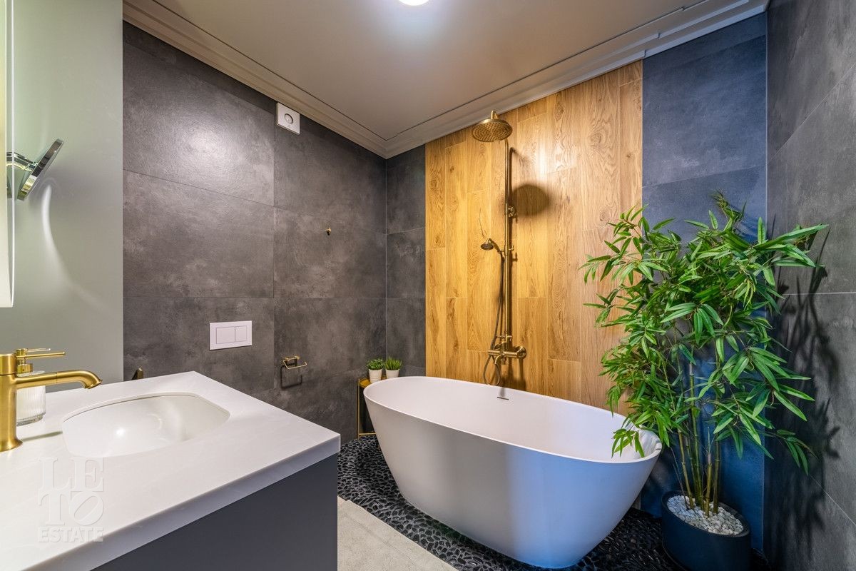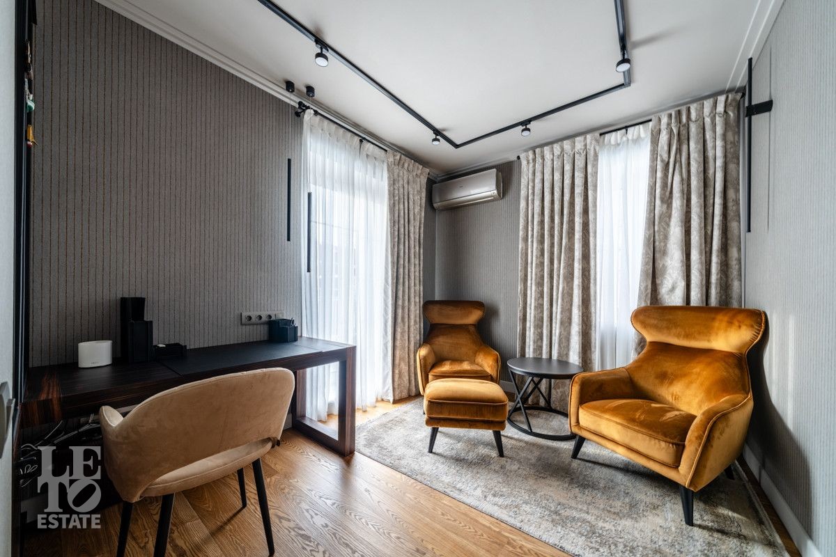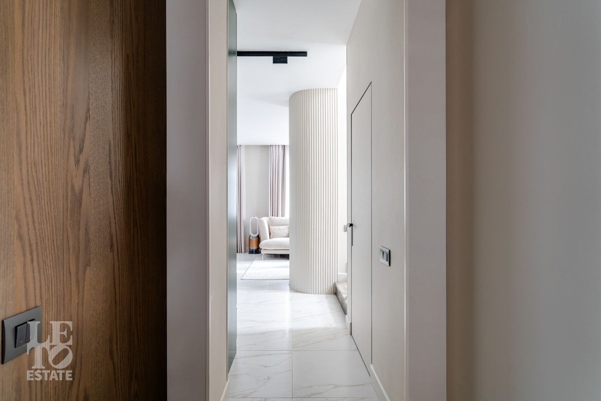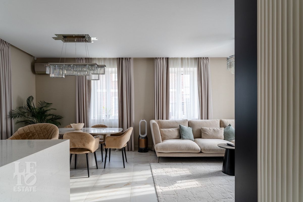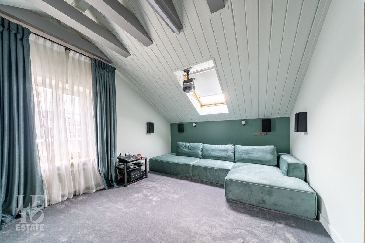 Внутреннее оформление выполнено по уникальному дизайнерскому проекту с использованием исключительно качественных и дорогих материалов. В этом доме продумано всё до мельчайших деталей. На кухне Вас приятно удивит встроенный измельчитель в раковине, а также современная система подготовки и очистки воды. Забота о воздухе здесь также имеет первостепенное значение — грамотно организованная система вентиляции и притока свежего воздуха избавляет от необходимости открывать окна и проветривать дом, здесь всегда царит благоприятная атмосфера. Безопасность дома гарантирует современная система видеонаблюдения, охрана, датчики протечки воды и пожарные датчики.