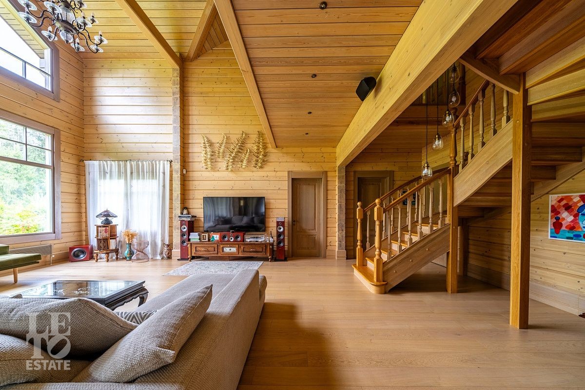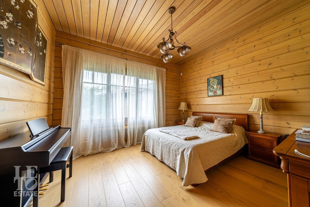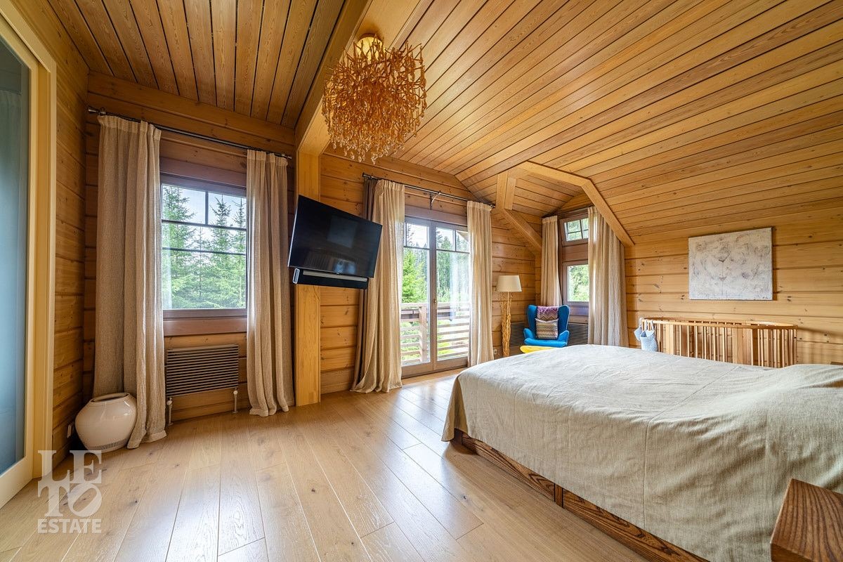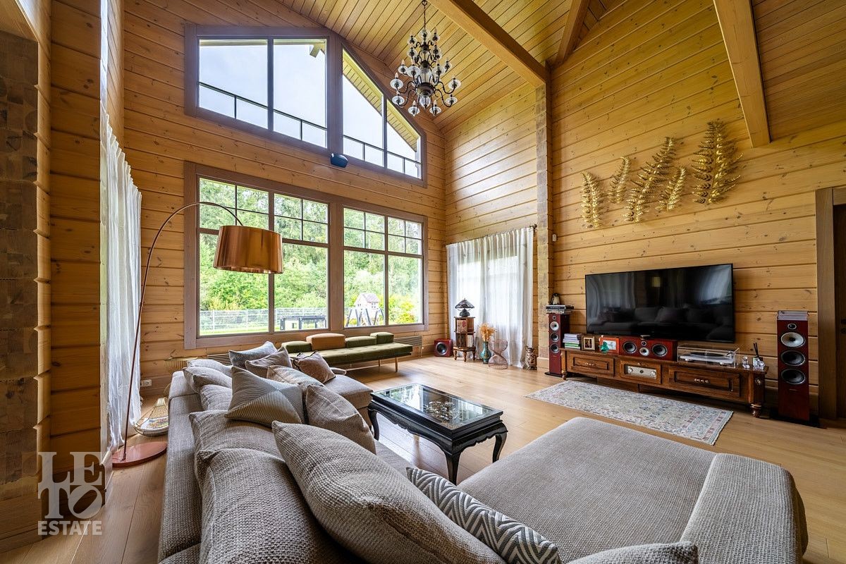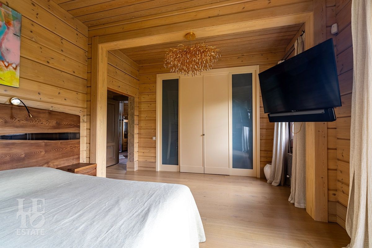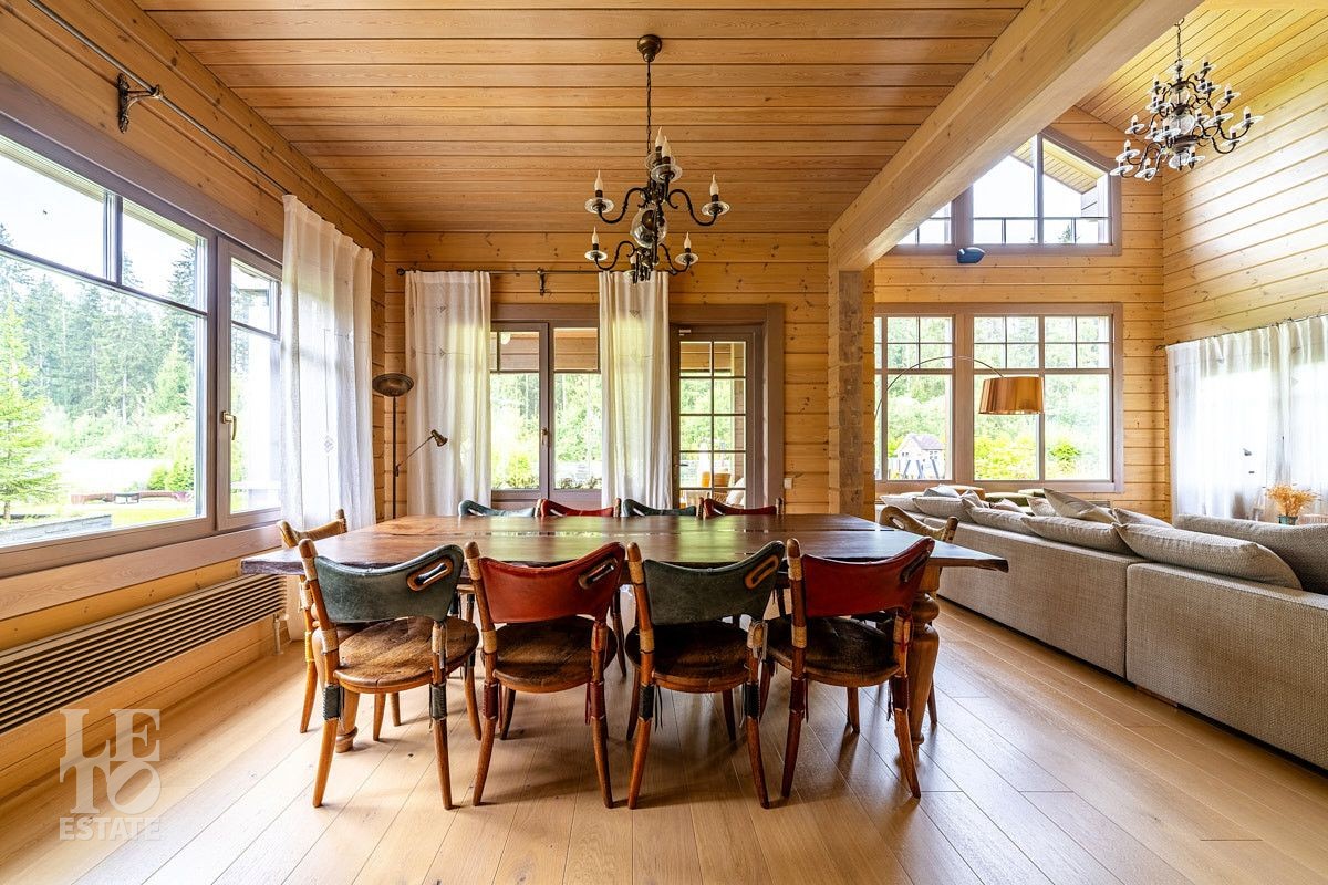 Стильный и продуманный дом "под ключ" построен из клееного бруса по индивидуальному проекту на ленточном основании. Общая площадь 230 кв.м. Внутренняя отделка полностью соответствует внешнему облику. Интерьер дома наполнен атмосферой спокойствия и загородного уюта, благодаря сбалансированности оттенков и предметов декора. Обилие естественного света, экологически чистые материалы, легкость дизайна дарят пространствам свежесть и ощущение комфорта. Дом обставлен всей необходимой мебелью, среди которой эксклюзивные изделия из слэбов карагача (обеденный стол, изголовье кровати). Техническое оснащение также организовано на высоком уровне: аудиосистема Bowers & Wilkins, бытовая техника Liebherr, Bosch и множество других заслуживших доверие брендов.