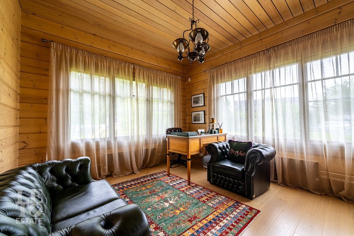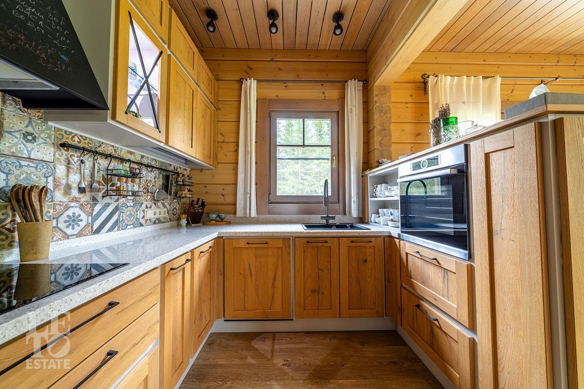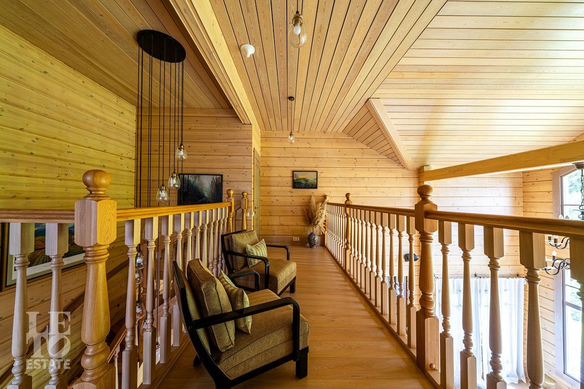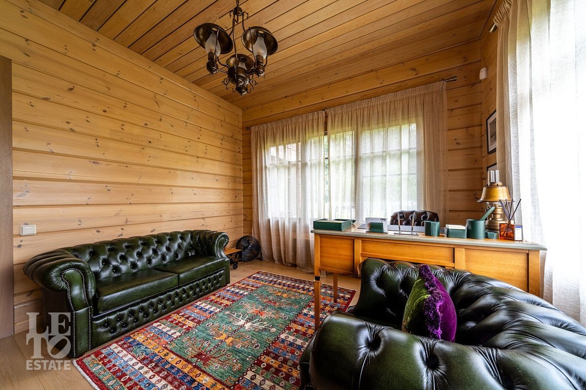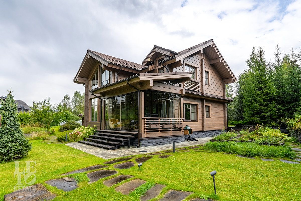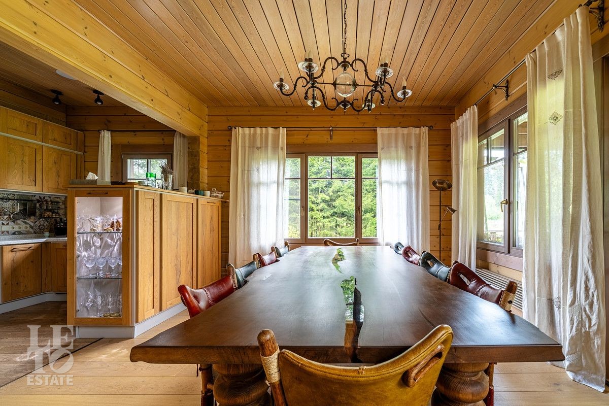 Стильный и продуманный дом "под ключ" построен из клееного бруса по индивидуальному проекту на ленточном основании. Общая площадь 230 кв.м. Внутренняя отделка полностью соответствует внешнему облику. Интерьер дома наполнен атмосферой спокойствия и загородного уюта, благодаря сбалансированности оттенков и предметов декора. Обилие естественного света, экологически чистые материалы, легкость дизайна дарят пространствам свежесть и ощущение комфорта. Дом обставлен всей необходимой мебелью, среди которой эксклюзивные изделия из слэбов карагача (обеденный стол, изголовье кровати). Техническое оснащение также организовано на высоком уровне: аудиосистема Bowers & Wilkins, бытовая техника Liebherr, Bosch и множество других заслуживших доверие брендов.
