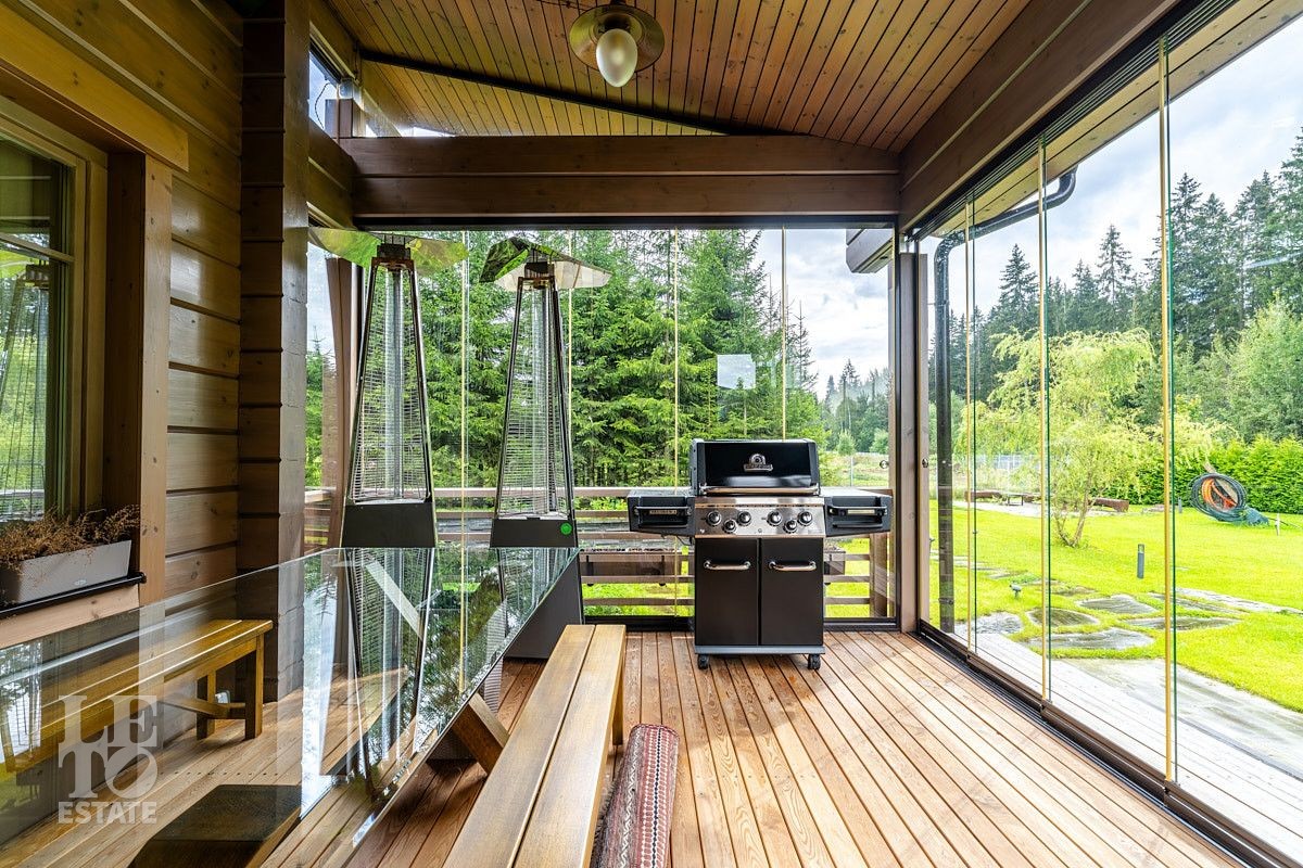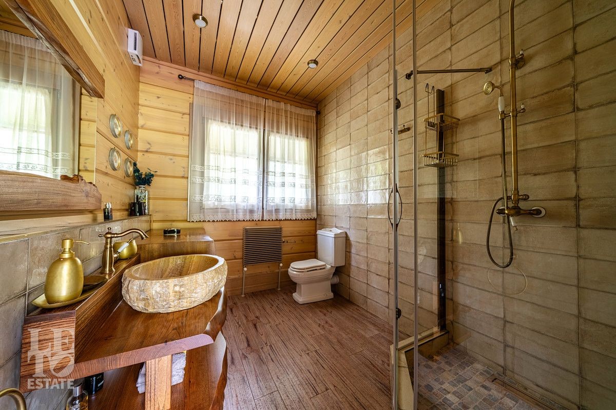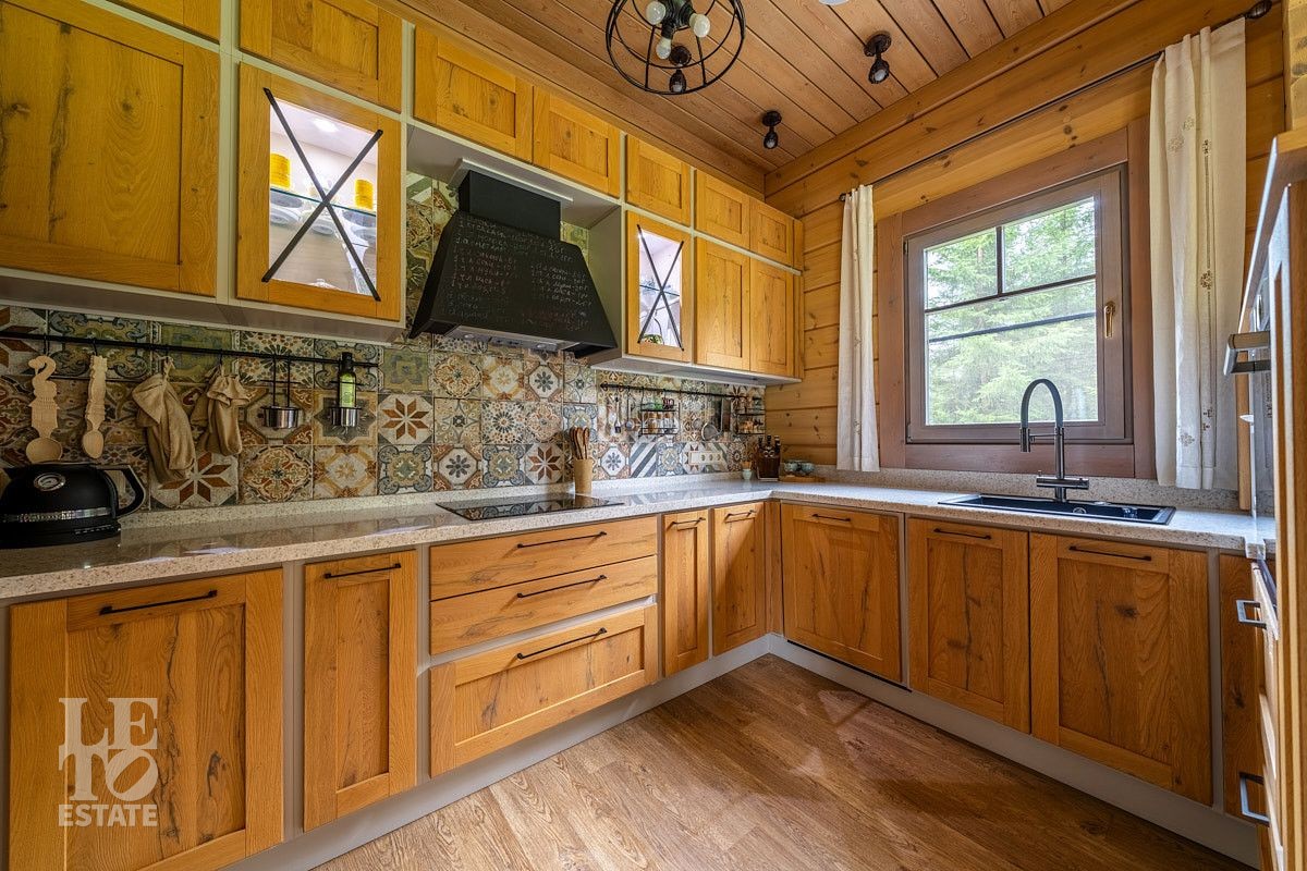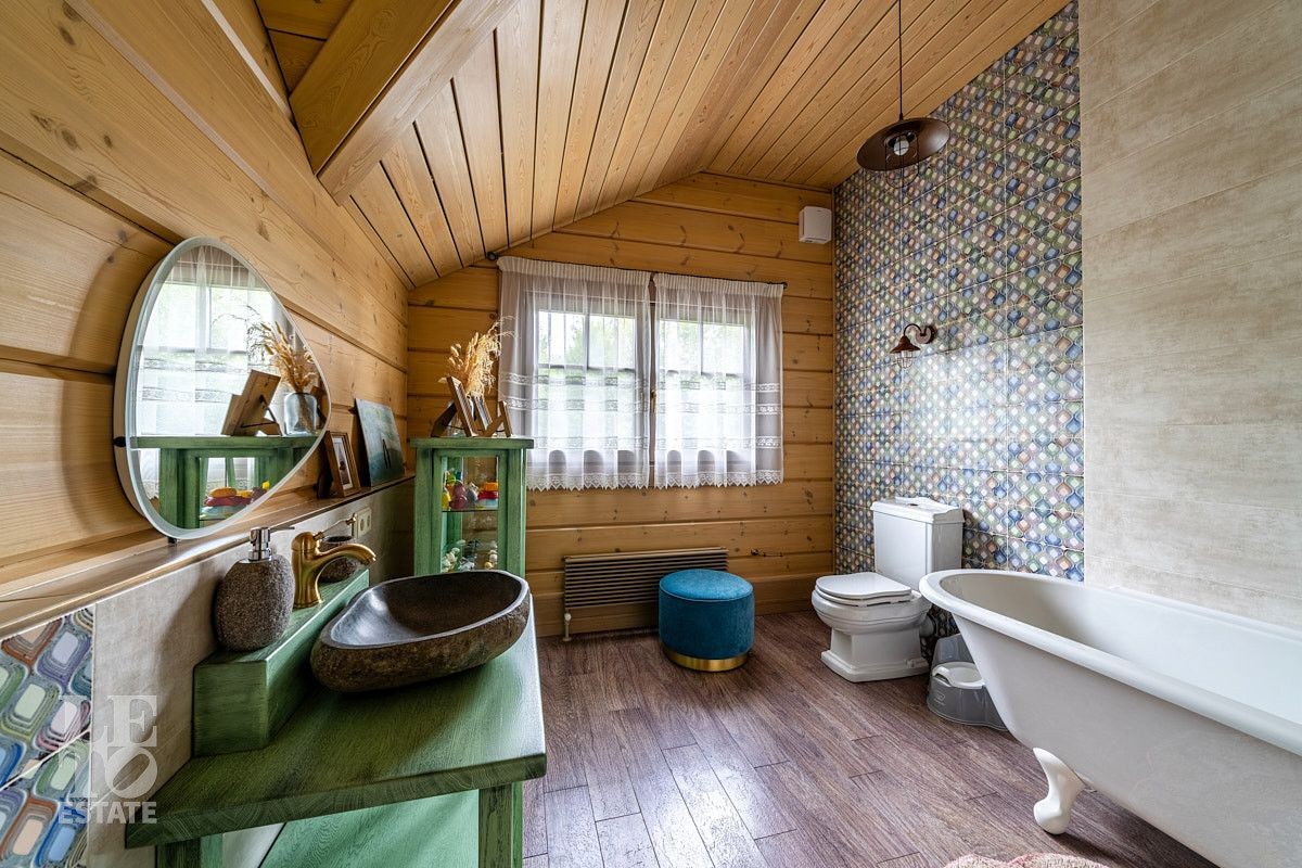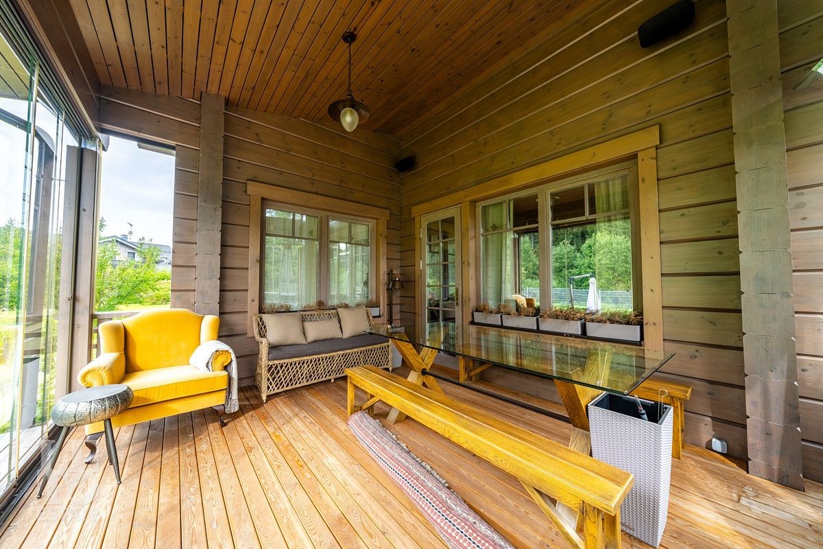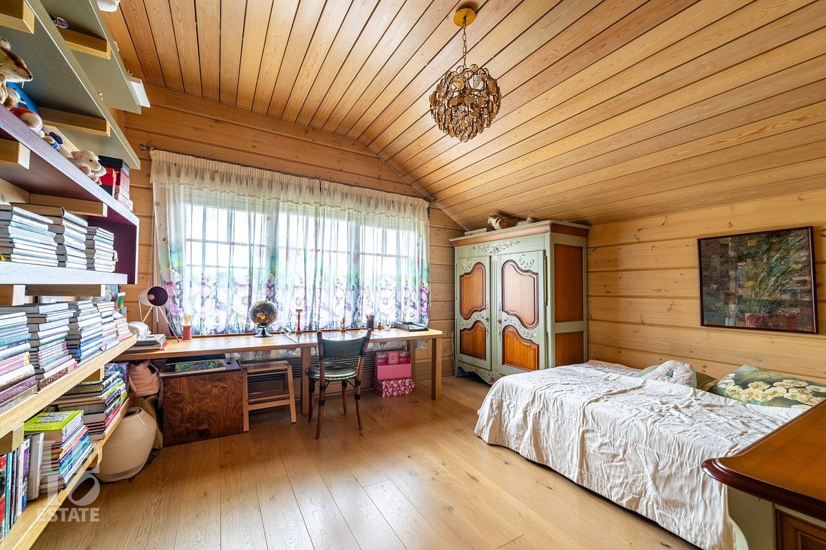 Стильный и продуманный дом "под ключ" построен из клееного бруса по индивидуальному проекту на ленточном основании. Общая площадь 230 кв.м. Внутренняя отделка полностью соответствует внешнему облику. Интерьер дома наполнен атмосферой спокойствия и загородного уюта, благодаря сбалансированности оттенков и предметов декора. Обилие естественного света, экологически чистые материалы, легкость дизайна дарят пространствам свежесть и ощущение комфорта. Дом обставлен всей необходимой мебелью, среди которой эксклюзивные изделия из слэбов карагача (обеденный стол, изголовье кровати). Техническое оснащение также организовано на высоком уровне: аудиосистема Bowers & Wilkins, бытовая техника Liebherr, Bosch и множество других заслуживших доверие брендов.