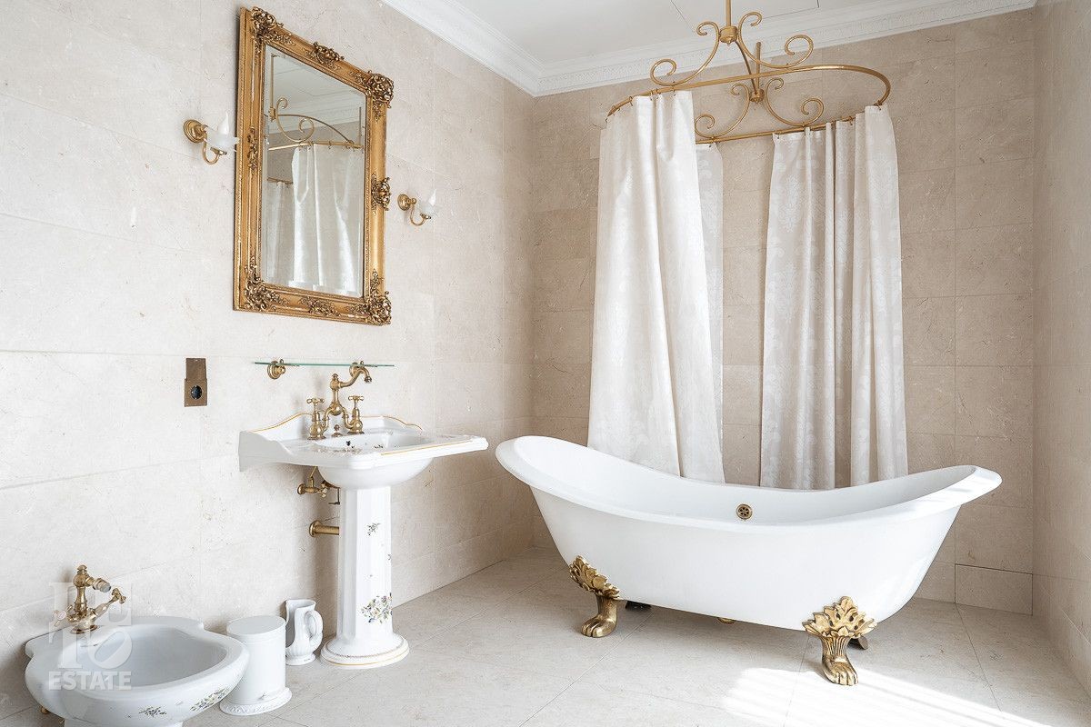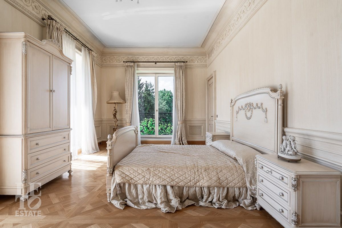 Второй этаж: холл, две спальни, каждая со своей гардеробной и ванной комнатами, три спальни, каждая со своим санузлом;