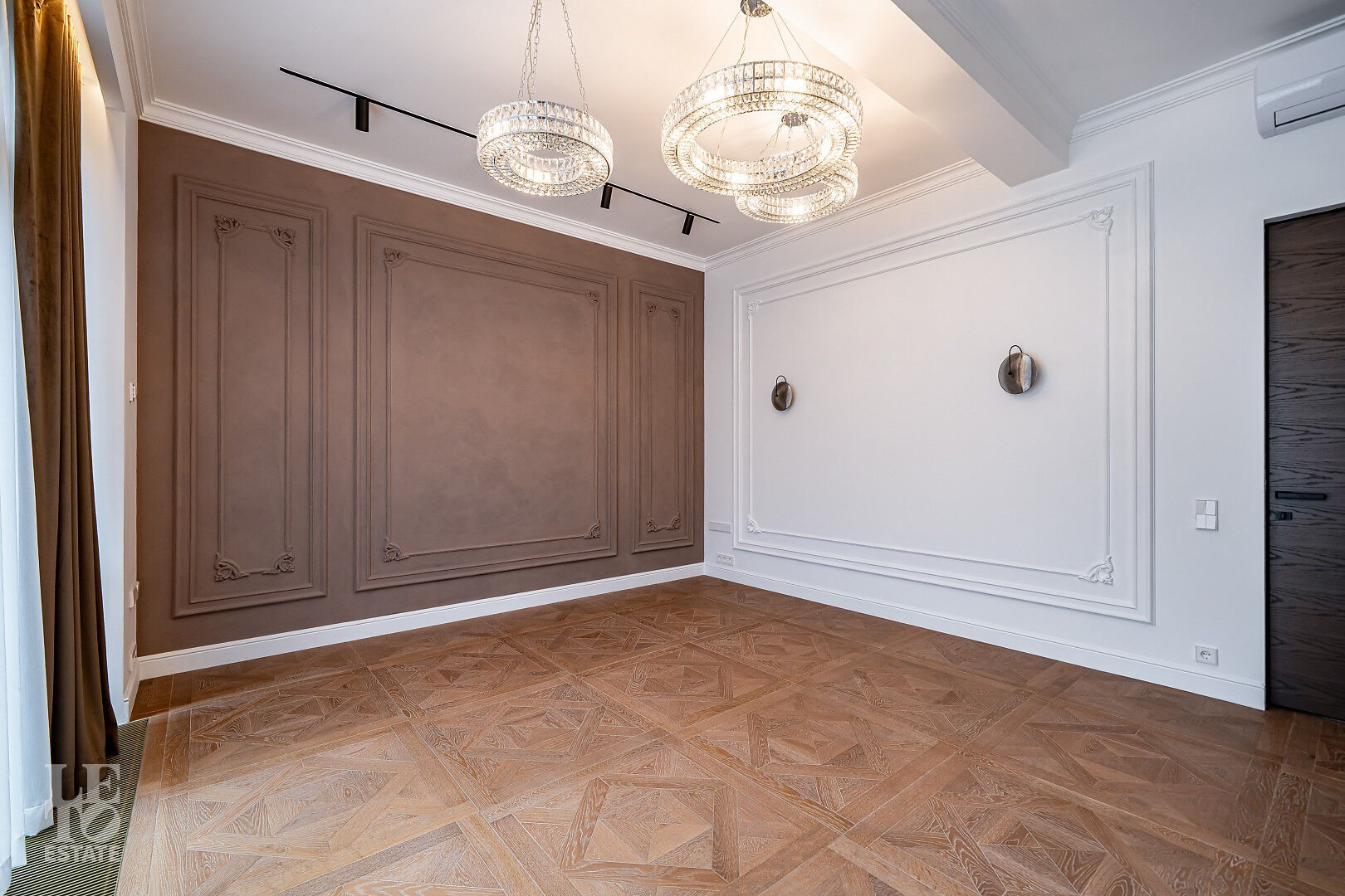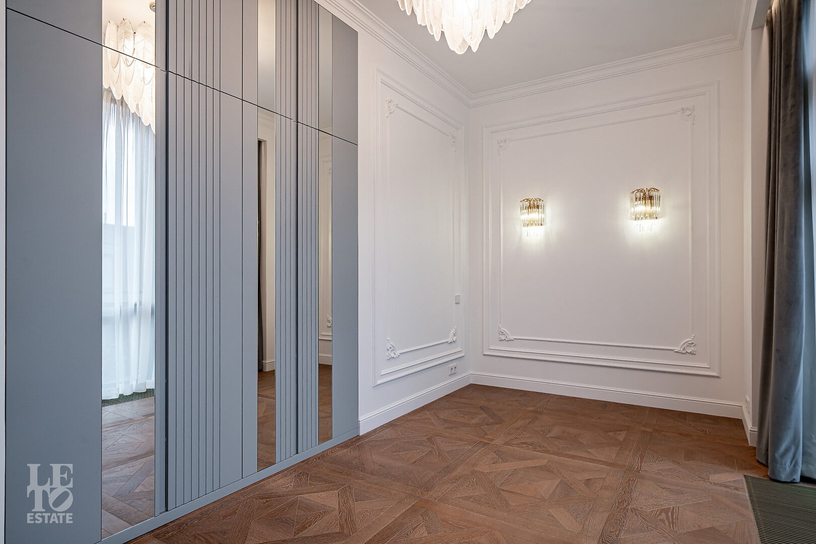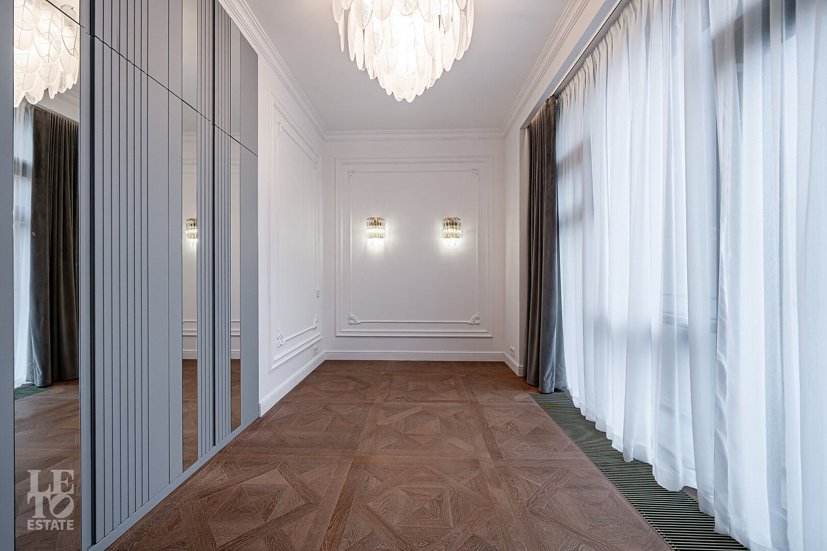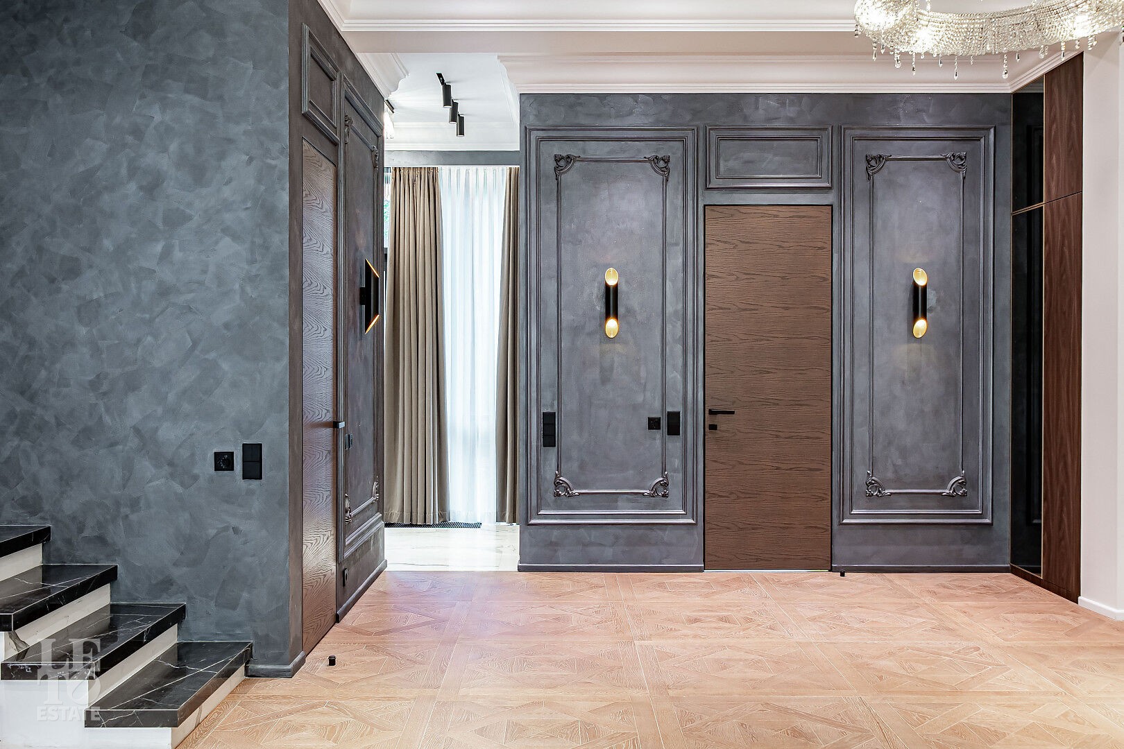 создающий атмосферу уюта. Также здесь уложена паркетная доска, добавляющая тепла и элегантности пространству.