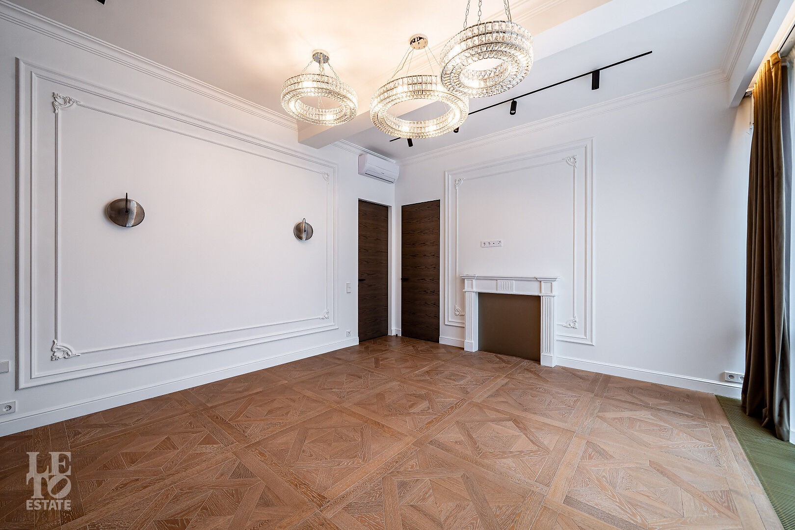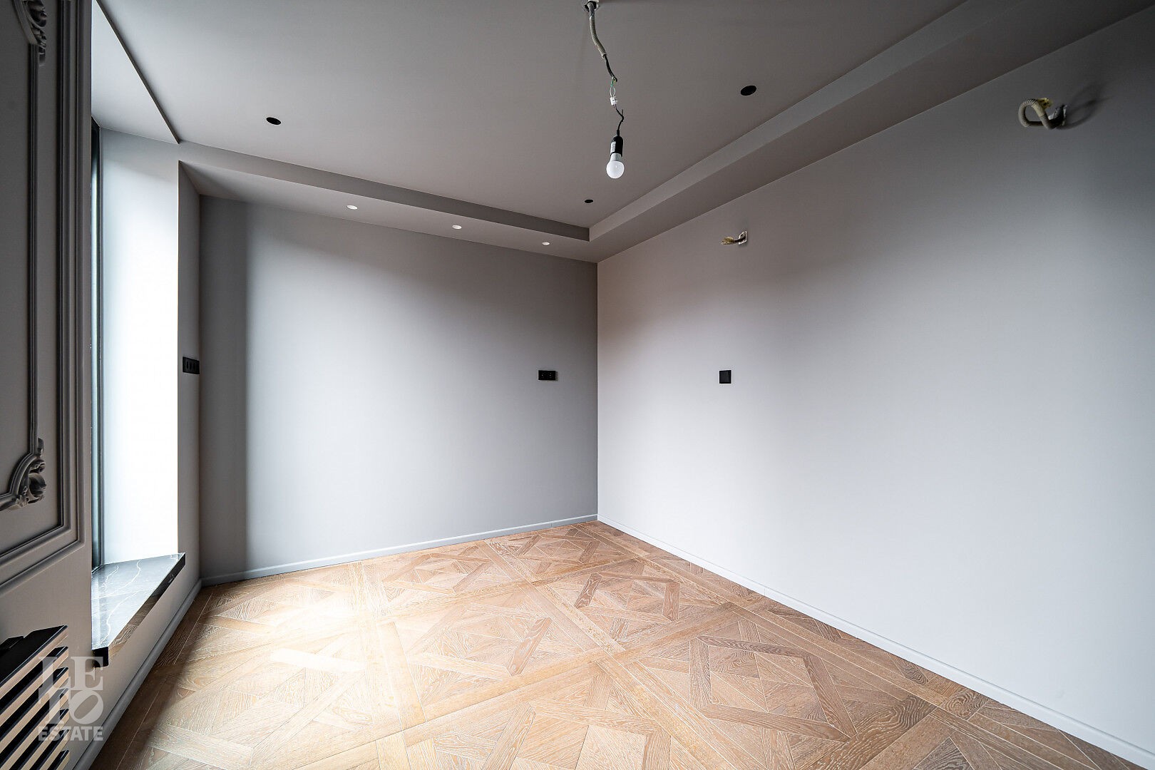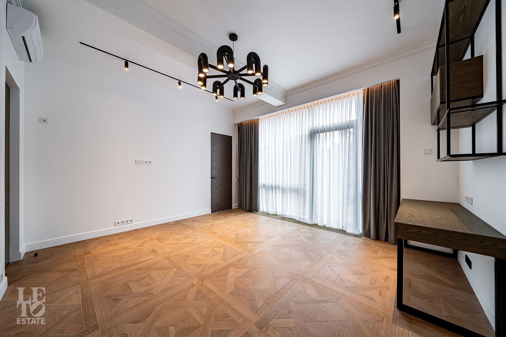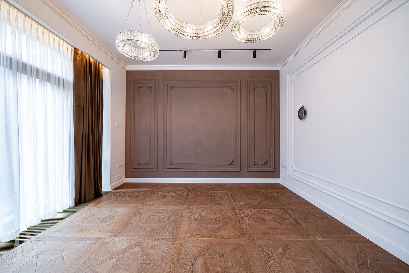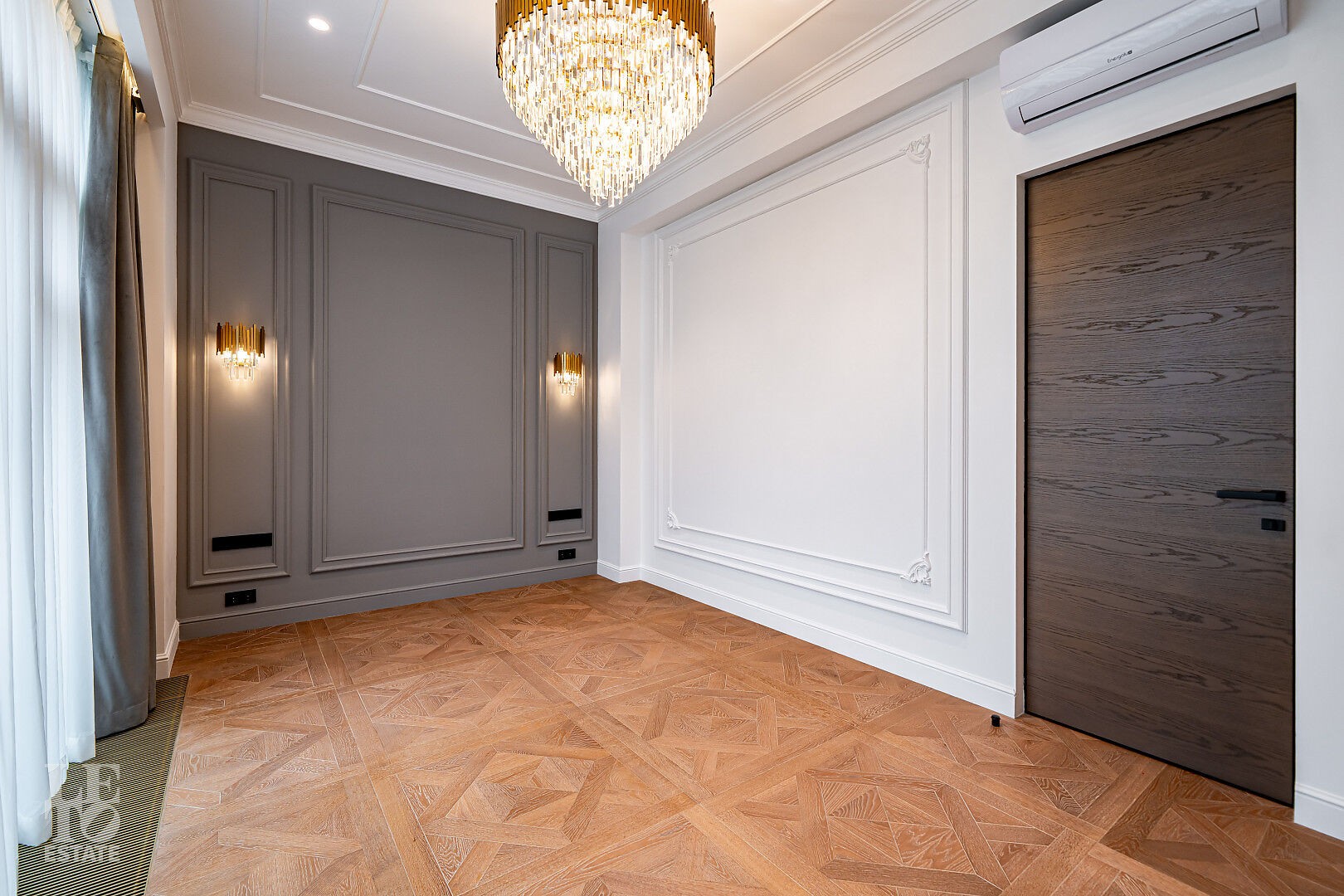 создающий атмосферу уюта. Также здесь уложена паркетная доска, добавляющая тепла и элегантности пространству.